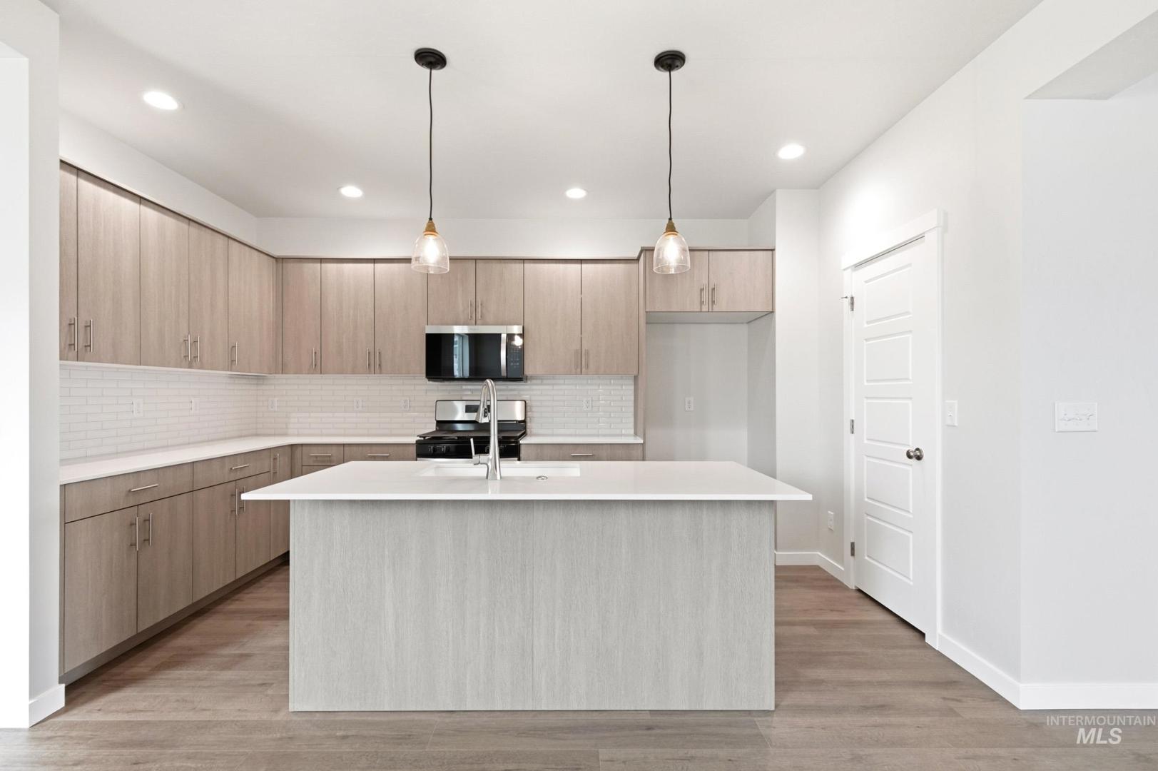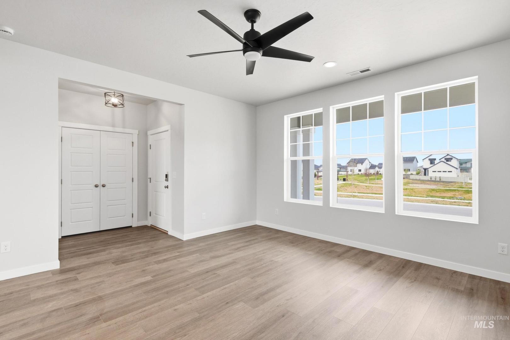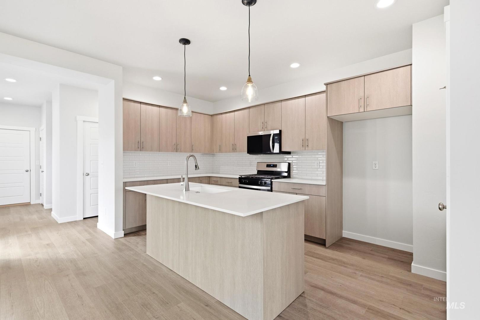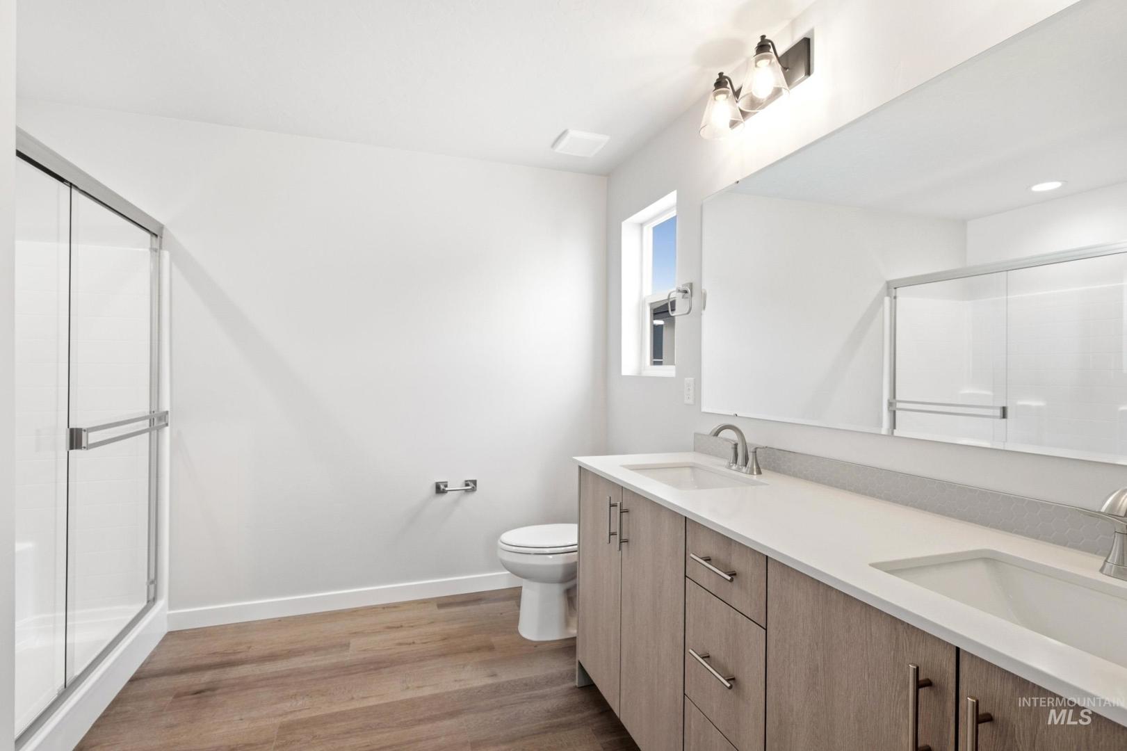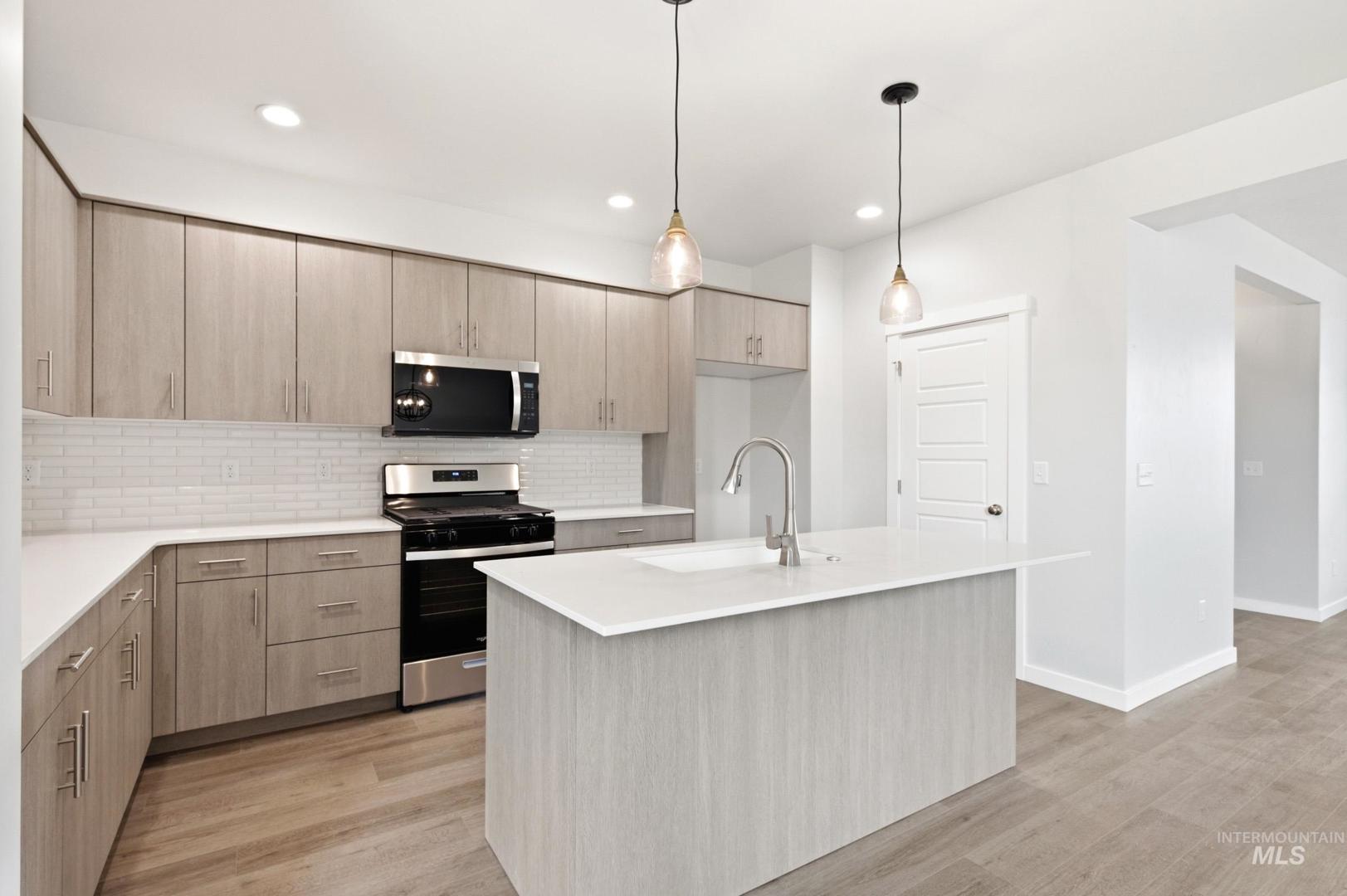 Get $15K YOUR WAY! Ask a Sales Specialist for details. This brand new home located in vibrant Meridian, Idaho welcomes you with open arms. The Regis 2093 blends modern utility with stylish character, beginning with a generous covered front porch that sets a welcoming tone before leading into an open living area filled with natural light from large picture windows and elevated by 9ft ceilings. The kitchen boasts upgraded finishes, including stainless steel appliances, a gas range, and stylish solid surface countertops. The main level flows smoothly from kitchen to dining to living, offering a bright and comfortable environment for everyday living. Upstairs, a sizable loft provides flexibility and serves as a natural buffer between the primary suite and the two additional bedrooms. The primary suite offers a peaceful retreat with its own en suite bath and expansive closet, while the upstairs laundry room adds convenience for all. With its light filled spaces, adaptable layout, and refined details, the Regis 2093 delivers a lifestyle that feels both elevated and inviting. Photos are of the actual home!