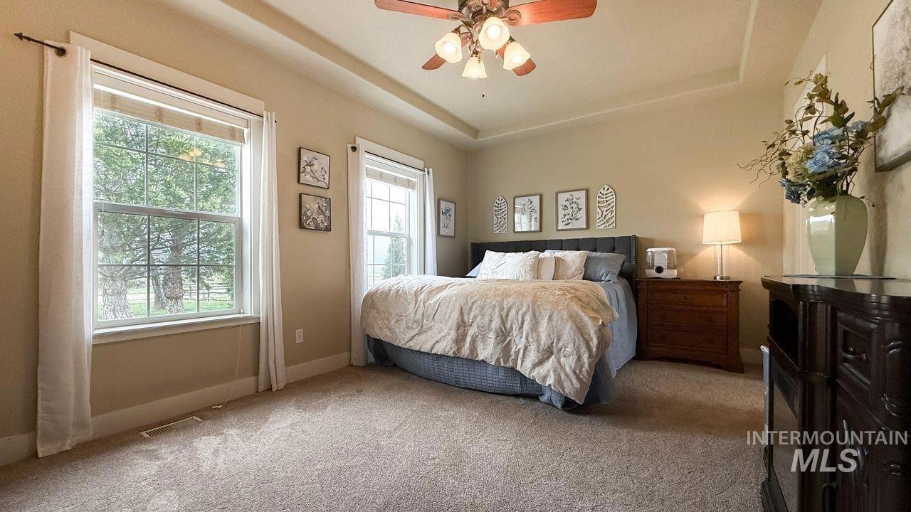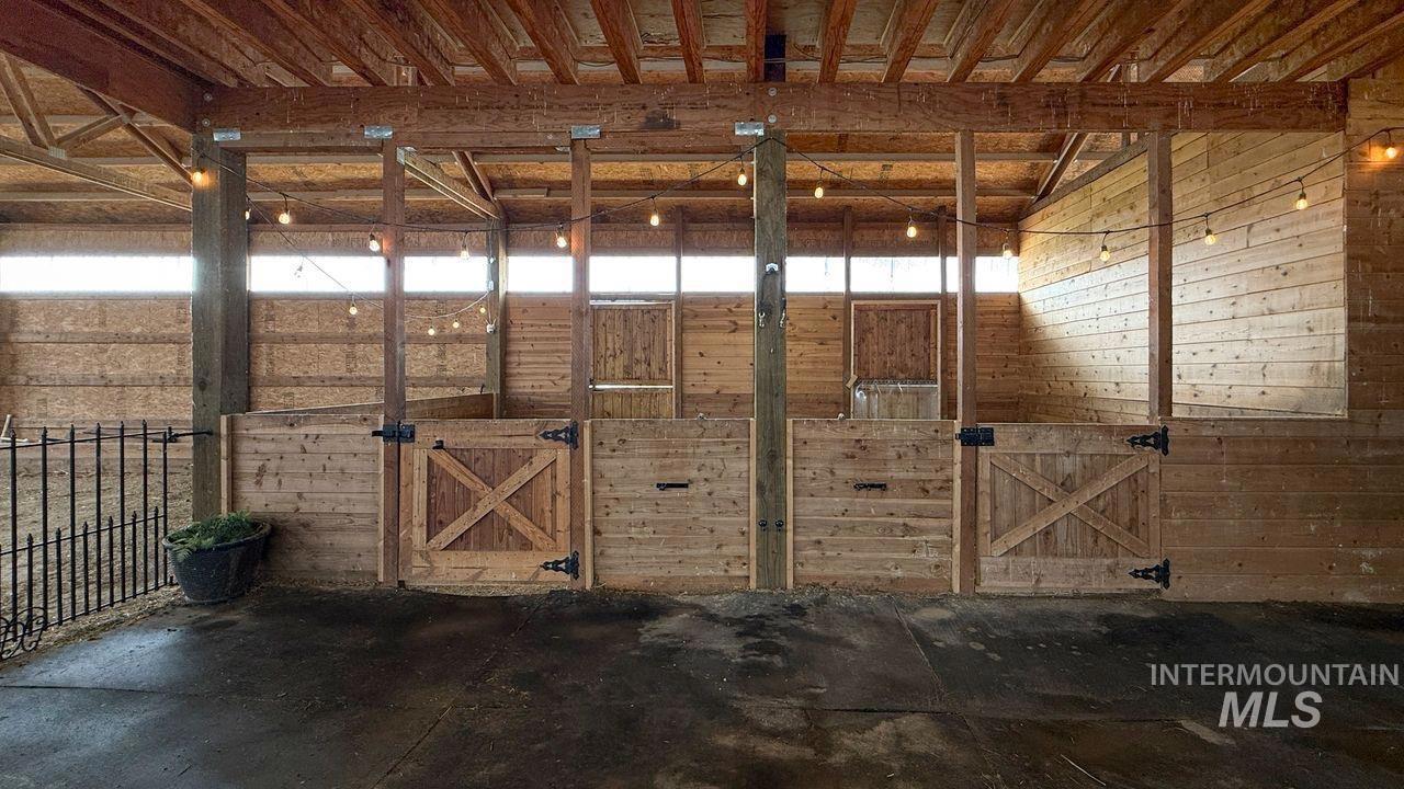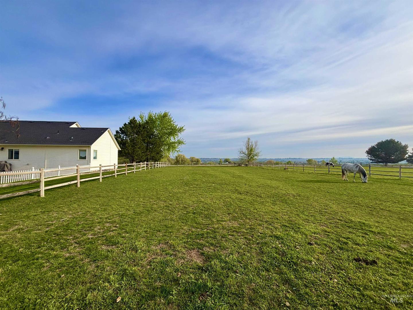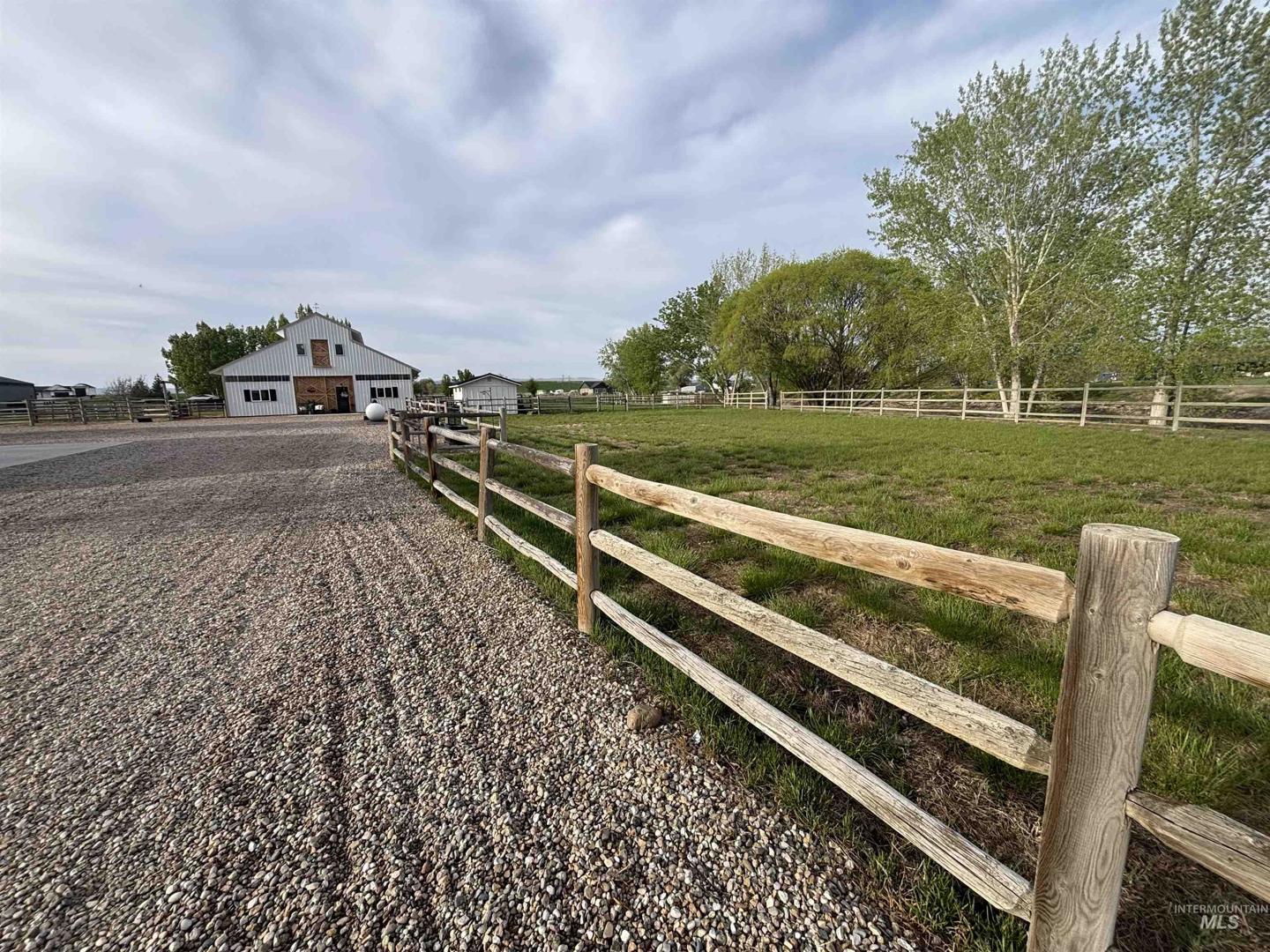INSTANT EQUITY- THIS HOME IS PRICED BELOW DESKTOP APPRAISAL! A perfect property for those seeking space for horses. Beautiful home on 2.3 acres with massive barn featuring electricity and water to the barn which is ideal for horses. The barn offers four matted stalls and an interior riding arena for year-round riding. The concrete floors, located in two barn rooms, are perfect for tack and equipment. Included on the property is a round pen for training. Enjoy a fully-equipped outside riding arena. Pastures are watered by the pressurized irrigation system, managed by the HOA, for easy maintenance. The home welcomes you with a covered front porch - perfect for viewing the Snake River Valley. Step inside the country home and imagine yourself in 3324 square feet. Included are five bedrooms, three full bathrooms w/ essential main-level amenities: Included is a main-level master bedroom with ensuite bathroom. The kitchen laundry room and two full baths are on the main level, as well. Work-from-home with an oversized office. The spacious lower level features a large rec. room with tall ceilings, storage, three additional bedrooms and a room that could easily become a second office or homeschool room. The property offers its own well, for adequate water supply. Home owners may access the private Community fishing pond, also used for irrigation with catch and release fishing privileges.