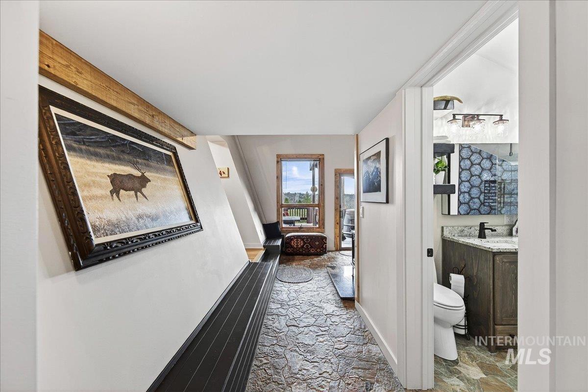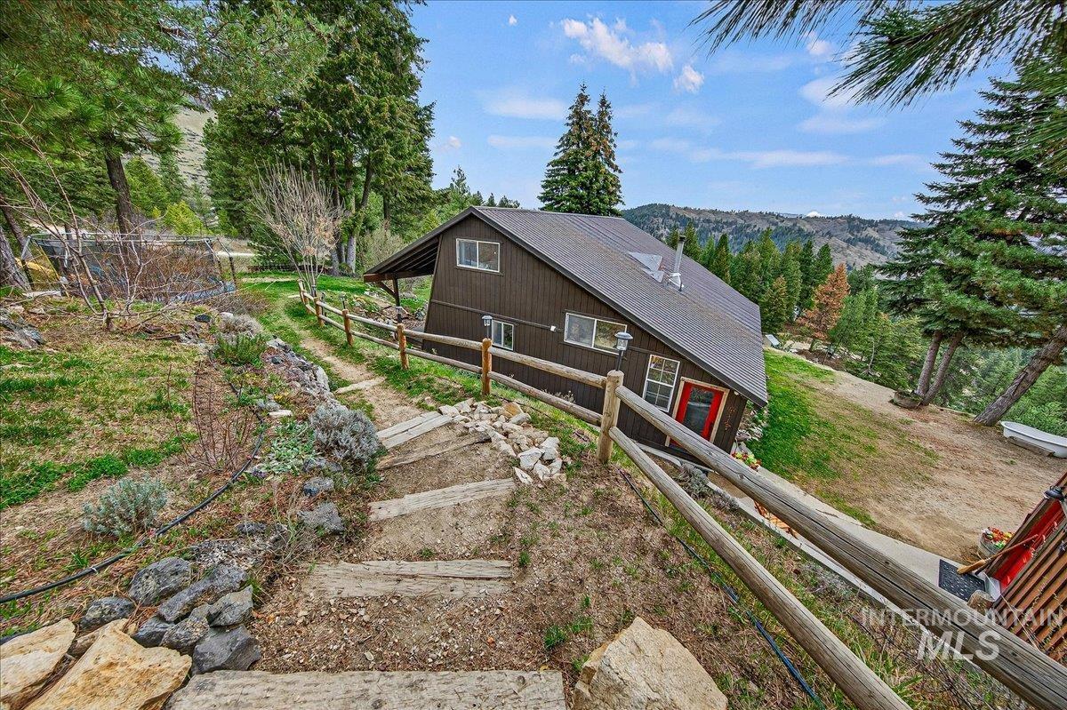 Set against the breathtaking backdrop of the Boise Mountains, this private view chalet offers a rare blend of serenity, inspiration, and opportunity just 45 minutes from Boise. Set on 7.6 acres with expansive views and open space, the property invites creativity, connection, and year-round outdoor living. The home exudes warmth and character, with thoughtful updates and a wraparound deck designed to take in the natural beauty. Ideal for artists, outdoor enthusiasts, or those seeking a peaceful escape, the setting offers both privacy and accessibility. A whole-house generator ensures uninterrupted comfort, with additional potential to expand to a 3 bed, 2 bath layout and incorporate solar for enhanced self-sufficiency. Beyond a full-time residence, this property shines as a charming, tastefully renovated mountain retreat, second home, or destination for intimate events and gatherings. Multiple structures, a 30x40 shop, and generous parking create opportunities for hosting, creative work, or a home-based business. An upper pond area with gated access offers additional potential for a private campsite or expanded use, while the greenhouse and fenced garden area—also gated—provide added income or rental potential. With no CCRs or HOA, the possibilities are as expansive as the setting—an opportunity to create a life that feels both grounded, inspired, and truly your own.