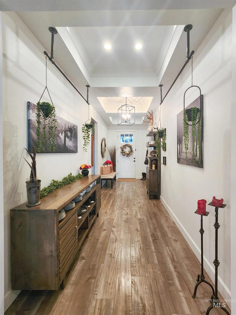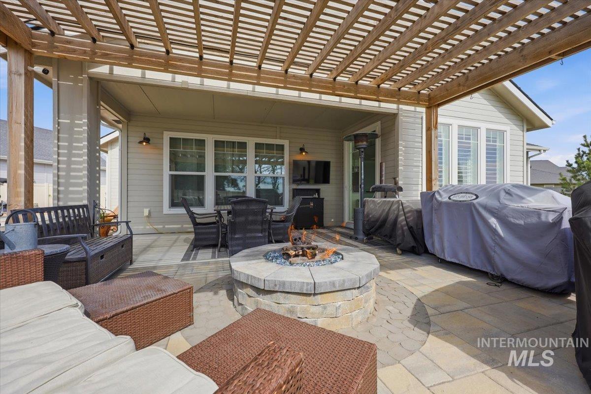Perfectly situated on a spacious .28-acre lot, you will find everything you’re looking for! Expansive RV parking beautifully laid out w/concrete pad, gravel & stepping stones. Flawlessly landscaped front & back lawns w/curbing, mature landscaping, raised garden/flower beds, 5 producing grape vines, auto exterior lighting, full vinyl fence & full U/G timed sprinklers. Elevated outdoor living w/ extended stone paver patio, built-in stone gas firepit, partially cov`d plus pergola w/lights & drip lines for hanging plants. Custom craftsman detail extends inside w/a grand foyer, trayed 9’ ceilings continuing into great room. A modern elegance showcasing LVP & tile flooring, white brick fireplace with mantle, and loads of windows showcasing 4.5” shutter blinds w/split-tilt functionality for addt’l privacy. Chef’s kitchen w/quartz countertops, KitchenAid appliances including gas range, island w/breakfast bar, deep farm sink, premium light fixtures & crown molding. Extra large butler’s pantry with room for appliances/coffee bar, separate laundry room & mud room w/custom built-ins & storage throughout. The primary suite features more extraordinary windows onto back yard, a private ensuite w/soaking tub & separate walk-in shower w/custom glass door. Dual vanities including makeup counter. Two spacious spare bedrooms w/room for king beds/office/gym. Every detail has been meticulously executed!