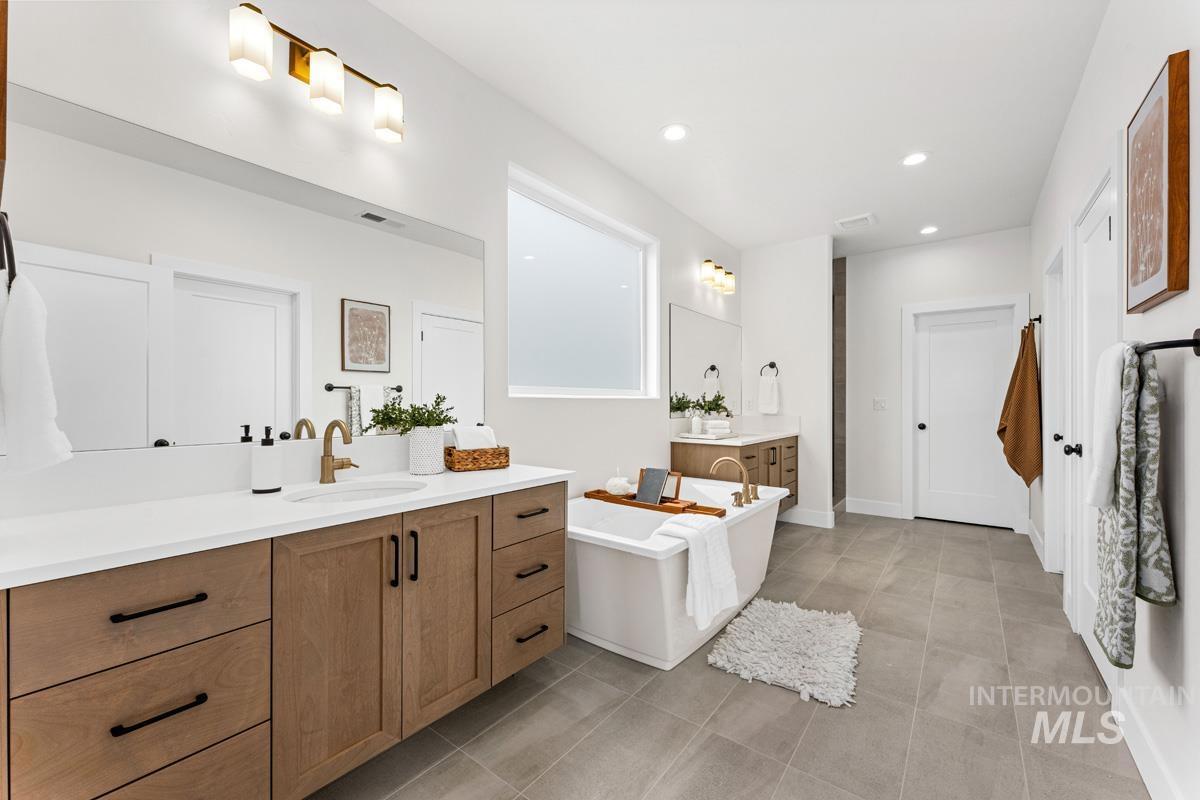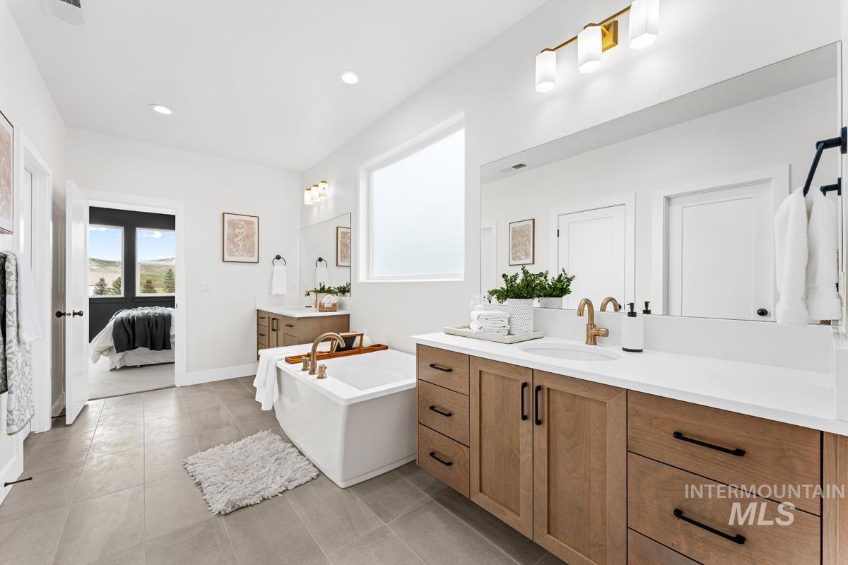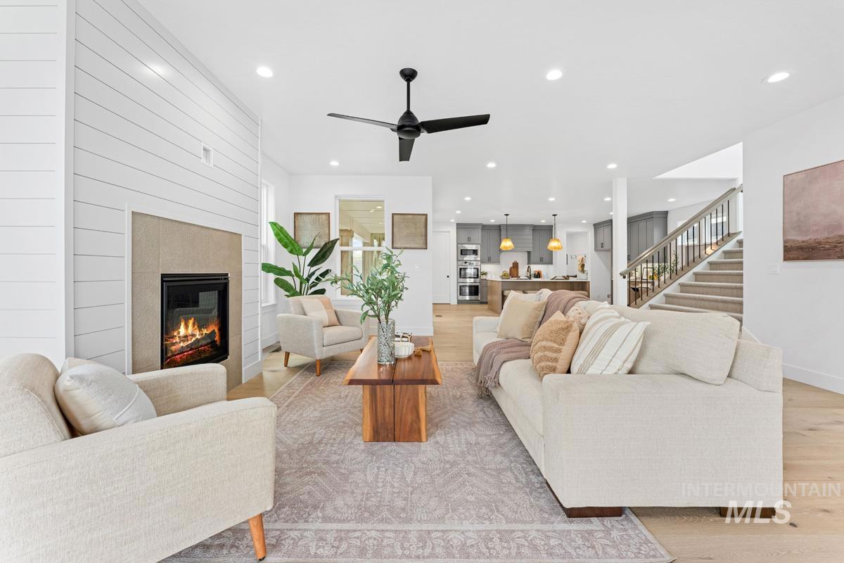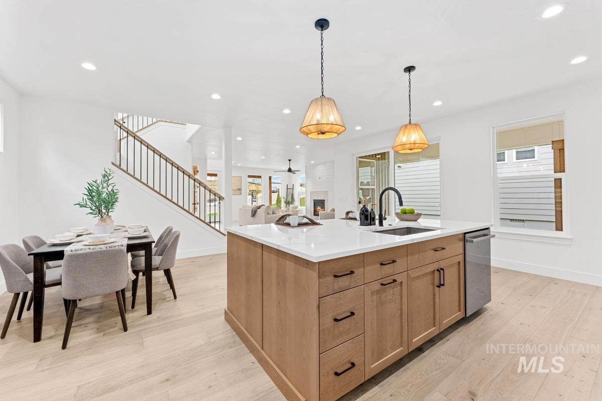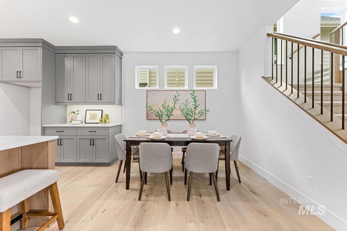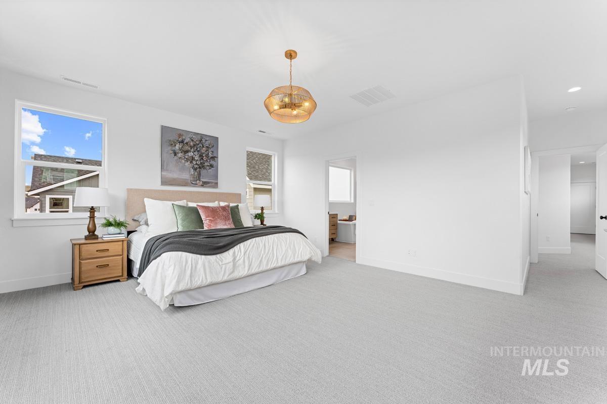 Enjoy exclusive lock and leave living at one of the most affordable price points in Dry Creek Ranch. This low maintenance home INCLUDES LANDSCAPE MAINTENANCE and is conveniently located near the 5-acre community center which has a pool, gym, clubhouse, and sport courts. Embark on adventure with hiking/biking trails minutes from your doorstep or take a swing at one of the nearby golf courses. Downtown Eagle`s shops and restaurants are waiting to be explored just a quick drive away. This two-story Palouse home welcomes you into a dramatic great room with an open-to-below layout, soaring ceilings, a platform fireplace, and a covered patio. Just off the main living space, the chef’s kitchen features a spacious island, handsome cabinetry, and an oversized pantry with appliance shelving. A dedicated main-floor office adds quiet, flexible space for work or study. Upstairs, a generous loft offers additional living space alongside several large bedrooms. The primary suite is tucked away featuring wall-to-wall windows, a luxurious bath, and dual walk-in closets. The 3-car garage offers plenty of space to store your vehicles and toys. Peaceful low maintenance living means you can explore the best of what Idaho has to offer. Proximity to highway 55 allows for short day trips or longer vacations to hot springs, ski resorts, lakes, mountains, and more.