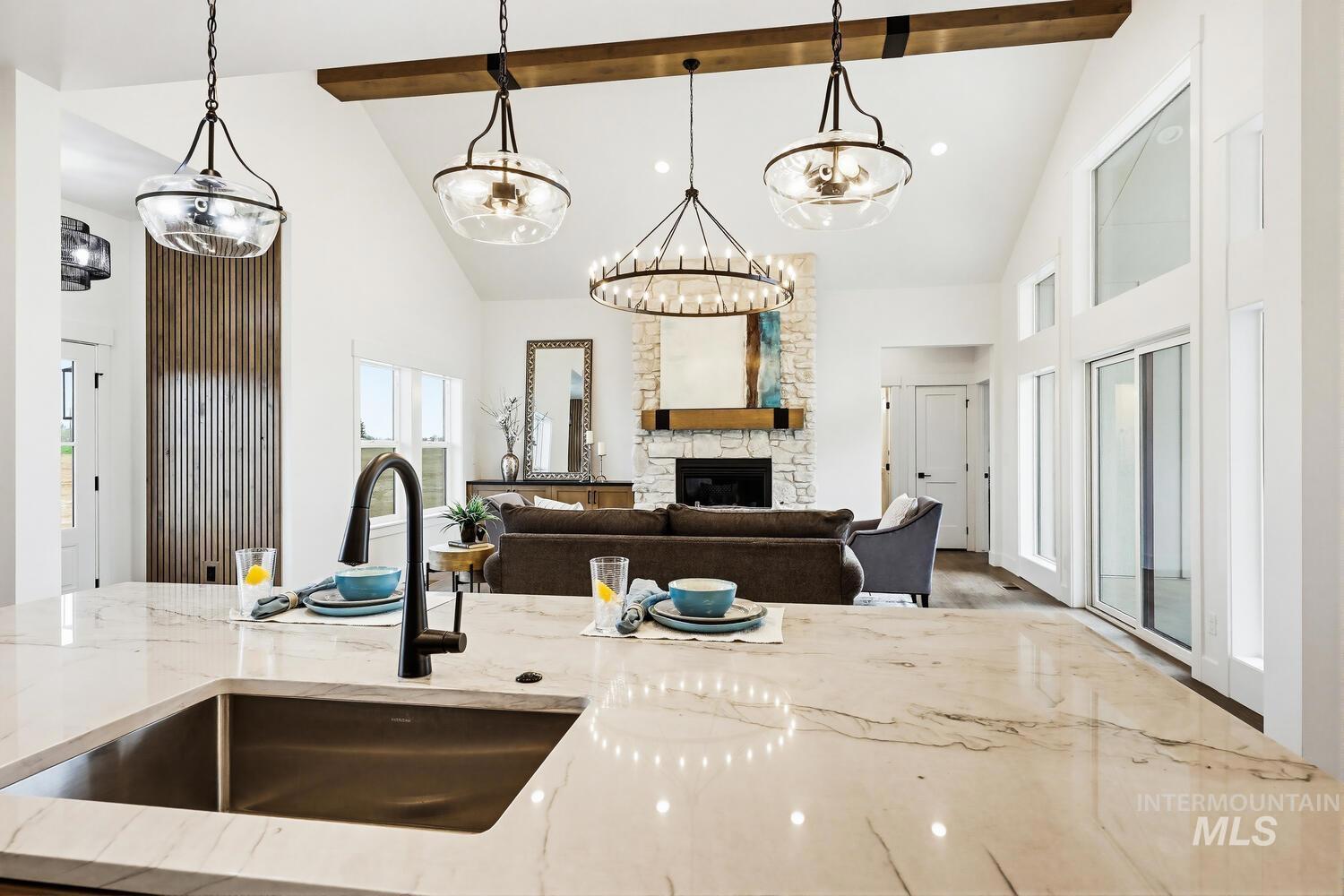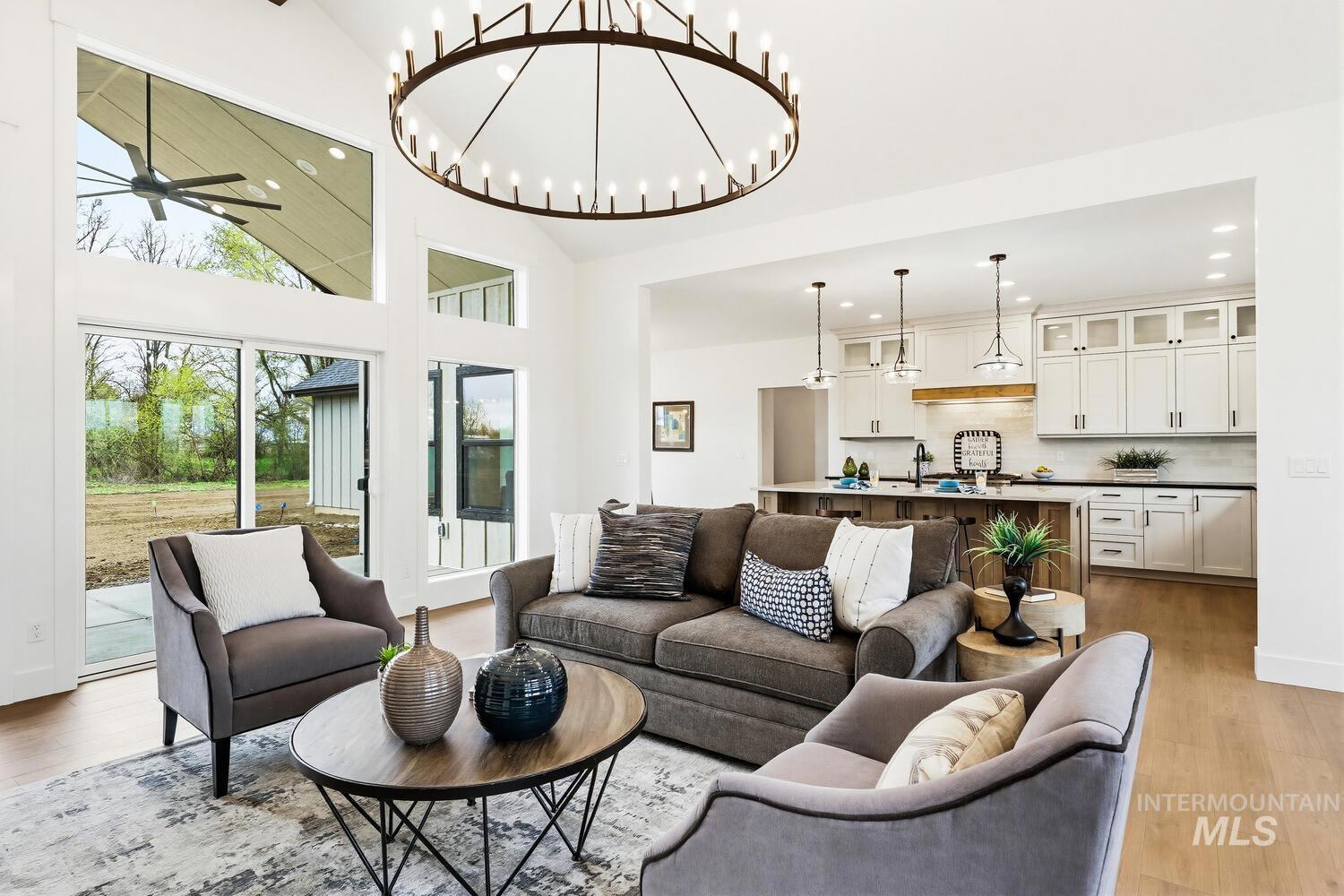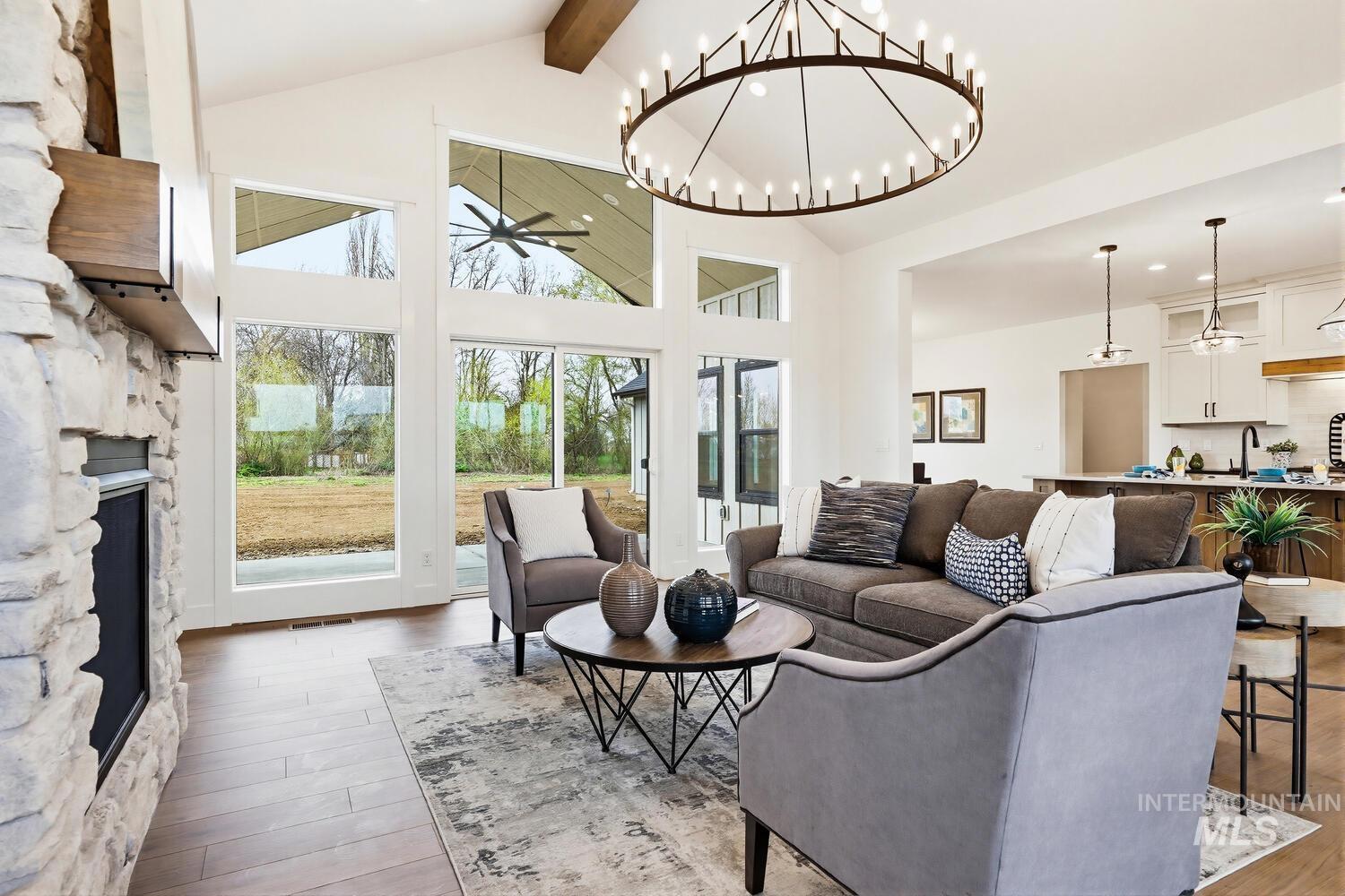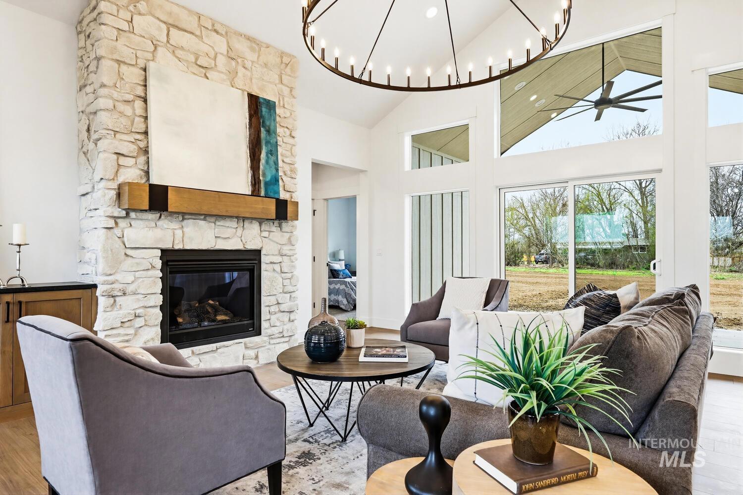 Luxury meets country living on 8.6?acres in this exceptional new custom home—designed for comfort, style, and everyday ease. A graceful open plan with soaring vaulted ceilings and a stained beam showcases fine craftsmanship throughout. The inviting great room centers on a beautiful fireplace with custom built-ins and large windows that fill the space with natural light. The chef’s kitchen features custom cabinetry, beautiful counters, premium finishes, and an impressive island ideal for entertaining. The split floor plan offers privacy, with the vaulted primary suite serving as a restful retreat—spa-inspired ensuite with dual vanities, freestanding tub, tiled shower, and an expansive walk-in closet conveniently connected to the laundry room. Secondary bedrooms are generous and well-appointed. Expansive covered front and back porches extend the living space outdoors, perfect for morning coffee or evening gatherings. A spacious 3-car garage plus 30`x40`?shop provide room for vehicles, equipment, or creative projects. Water rights, quality trim detailing, and abundant natural light complete this beautifully built property. Builder offering landscape allowance—close to town yet perfectly set in peaceful country surroundings. GPS 4650 E Idaho to locate.