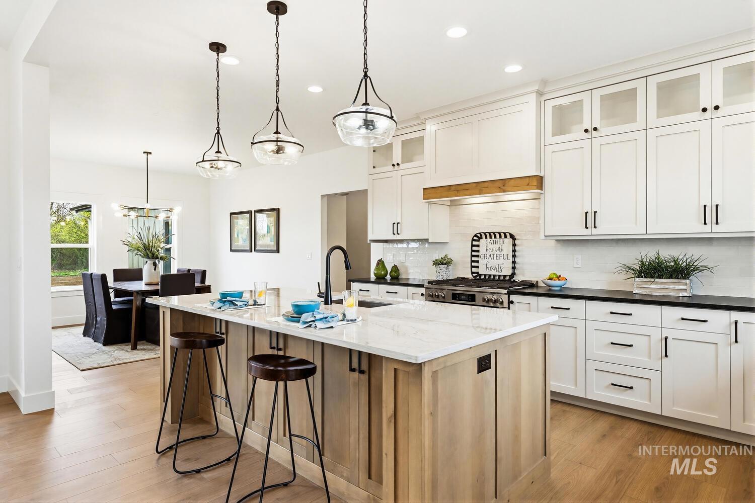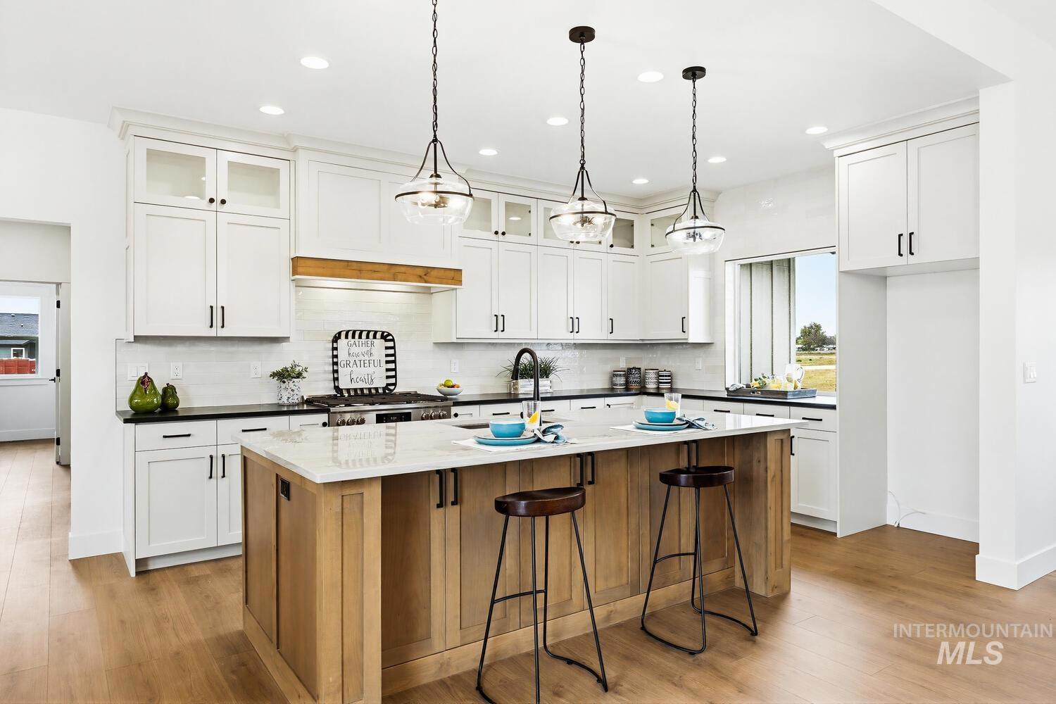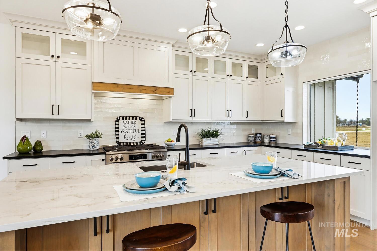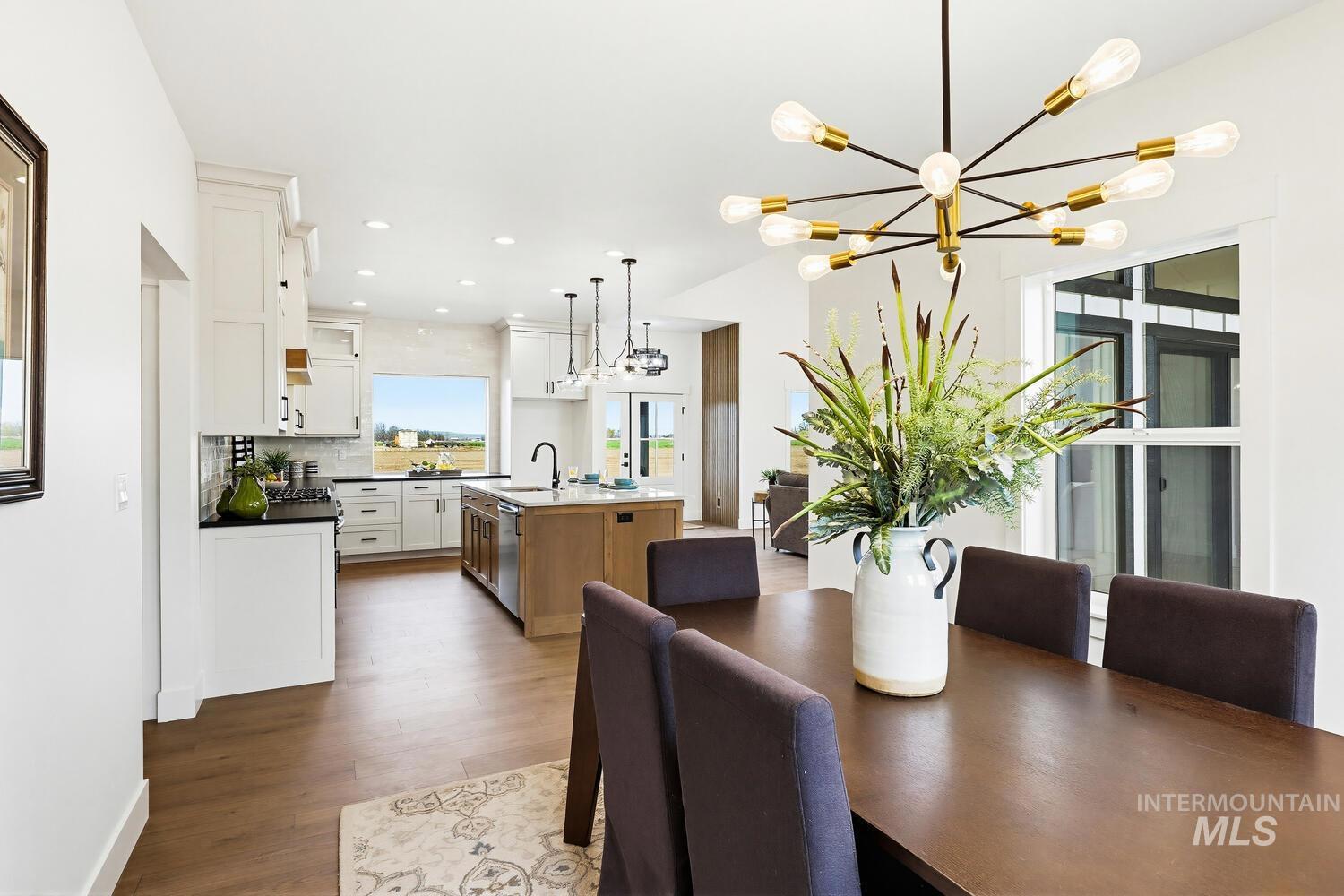 Luxury meets country living on 8.6?acres in this exceptional new custom home—designed for comfort, style, and everyday ease. A graceful open plan with soaring vaulted ceilings and a stained beam showcases fine craftsmanship throughout. The inviting great room centers on a beautiful fireplace with custom built-ins and large windows that fill the space with natural light. The chef’s kitchen features custom cabinetry, beautiful counters, premium finishes, and an impressive island ideal for entertaining. The split floor plan offers privacy, with the vaulted primary suite serving as a restful retreat—spa-inspired ensuite with dual vanities, freestanding tub, tiled shower, and an expansive walk-in closet conveniently connected to the laundry room. Secondary bedrooms are generous and well-appointed. Expansive covered front and back porches extend the living space outdoors, perfect for morning coffee or evening gatherings. A spacious 3-car garage plus 30`x40`?shop provide room for vehicles, equipment, or creative projects. Water rights, quality trim detailing, and abundant natural light complete this beautifully built property. Builder offering landscape allowance—close to town yet perfectly set in peaceful country surroundings. GPS 4650 E Idaho to locate.