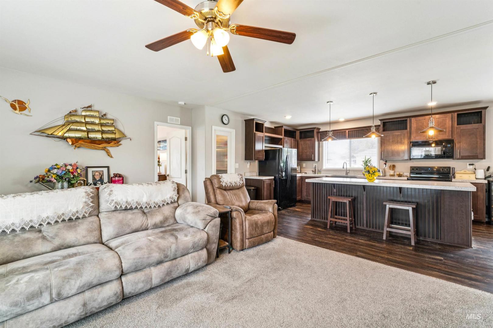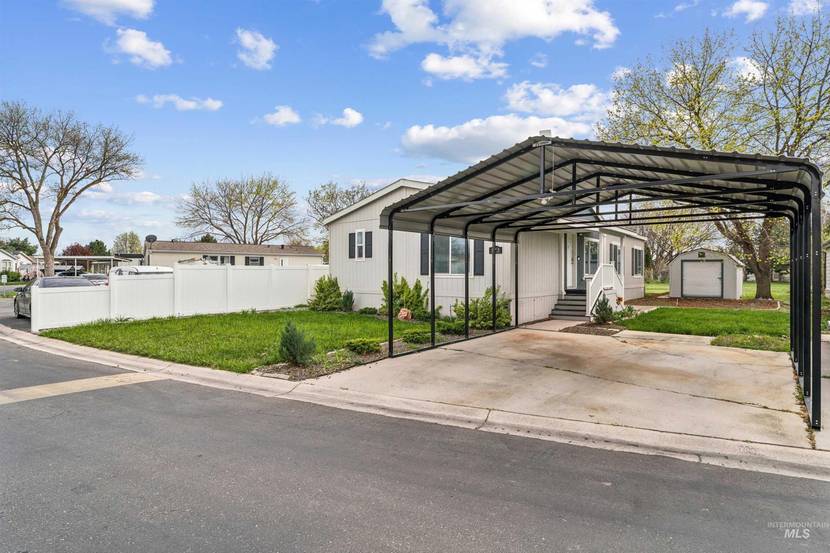 Welcome to low-maintenance living in the heart of Meridian! This meticulously maintained 2020 Fleetwood Homes home offers modern comfort and an unbeatable location just steps from shopping, dining, and Downtown Meridian. Inside, you’ll find a bright, open-concept layout filled with natural light, creating a warm and inviting atmosphere perfect for everyday living and entertaining. The kitchen is both functional and stylish, featuring a newer refrigerator and range, ample cabinetry, and generous counter space. The seamless flow into the dining and living areas makes the space feel open and connected. The home offers comfortable bedrooms, including a private primary suite, along with well-designed bathrooms and flexible space for guests or a home office. Pride of ownership shines throughout, with every detail carefully maintained, making this home truly move-in ready. Recent upgrades include a newly built two-car carport, covered walkway all the to the front door so no need to shovel on those snowy days. As well the master bath has handicap accessablity upgrades for added saftey and ease of mind! Located minutes from Boise, this home combines affordability, condition, and location—an exceptional opportunity in today’s market.