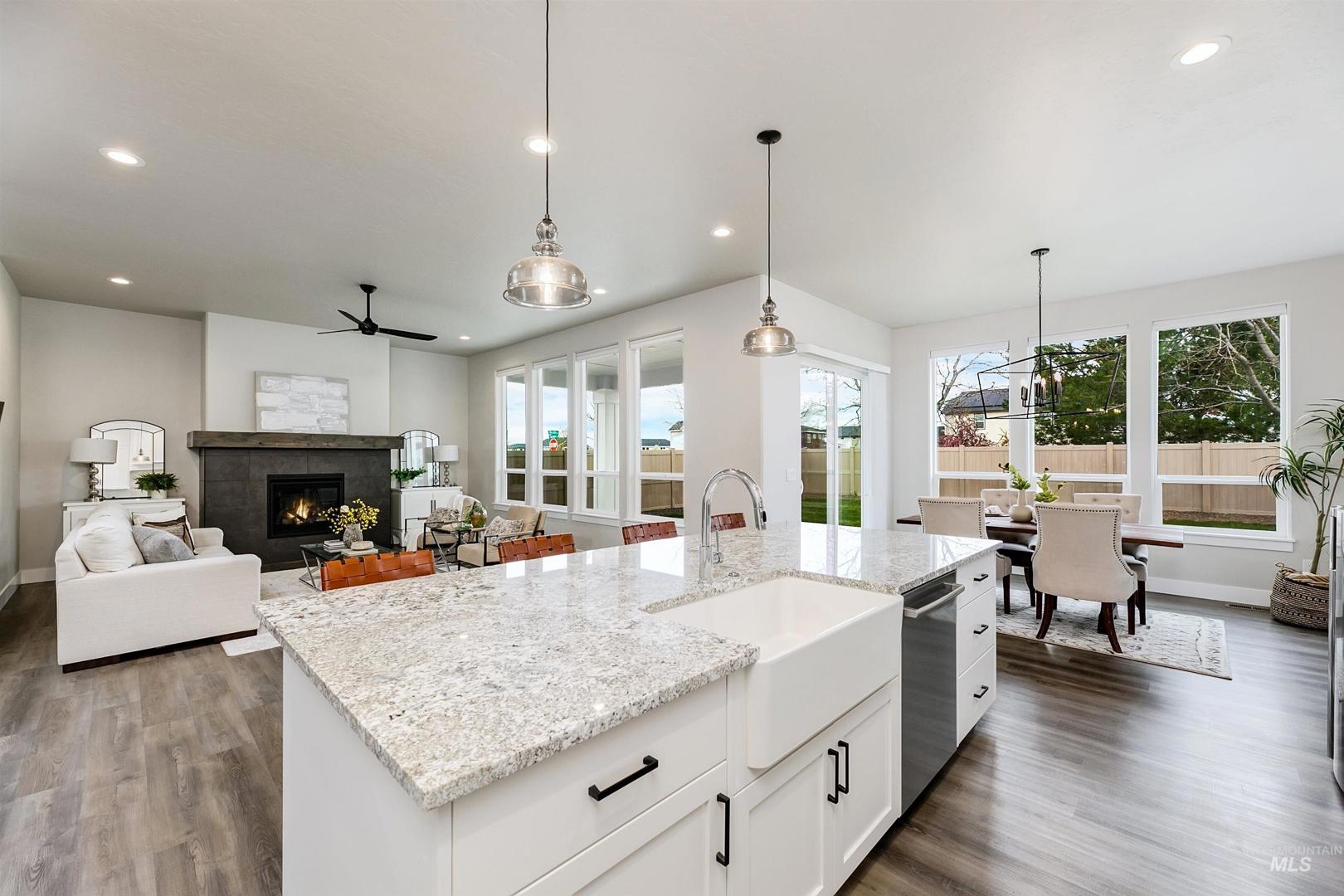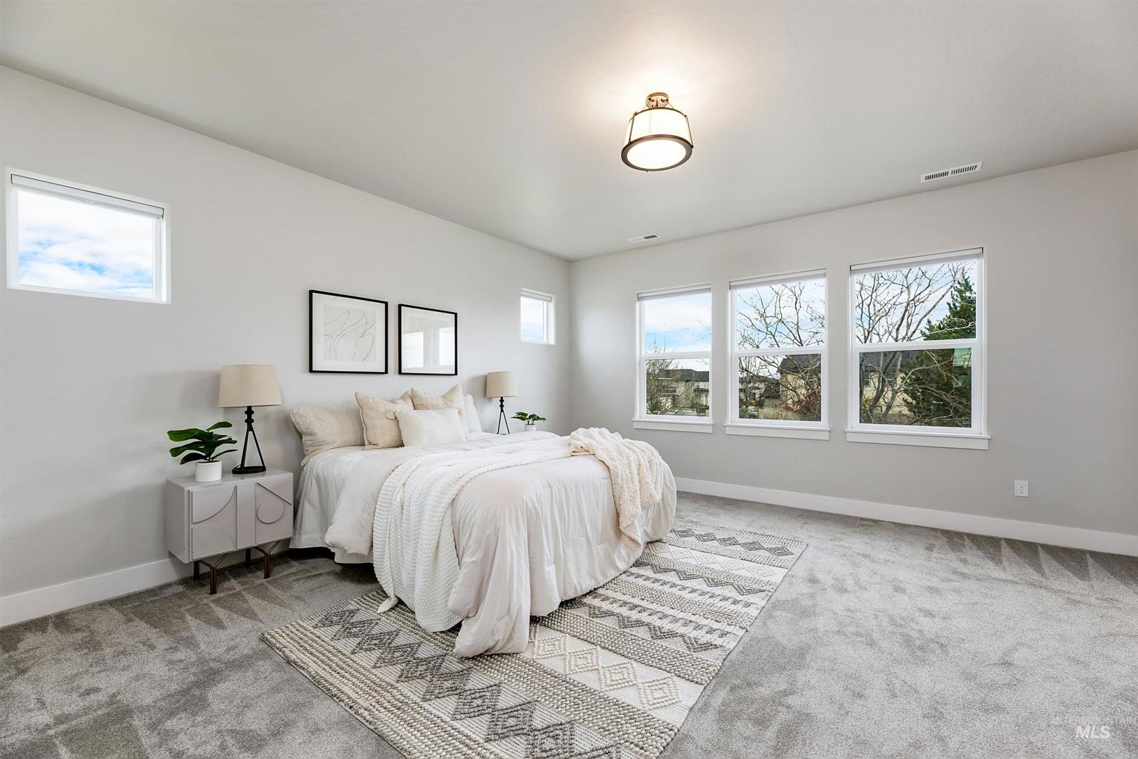 This Boise Hunter Homes "Cascade" model in Sky Mesa perfectly blends suburban convenience with modern luxury, featuring a functional open layout highlighted by a quartz kitchen island and a bright living area equipped with premium motorized blinds. The versatile floorplan includes a dedicated main-level office, an upstairs loft, and four spacious bedrooms, while the oversized three-car garage boasts professional epoxy-coated flooring for a pristine finish. Ideally located for commuters near I-84 and Eagle Road, the home is just minutes from The Village at Meridian and Discovery Park, offering residents exclusive access to community infinity pools, walking trails, and a fully fenced yard with a covered patio for effortless entertaining.