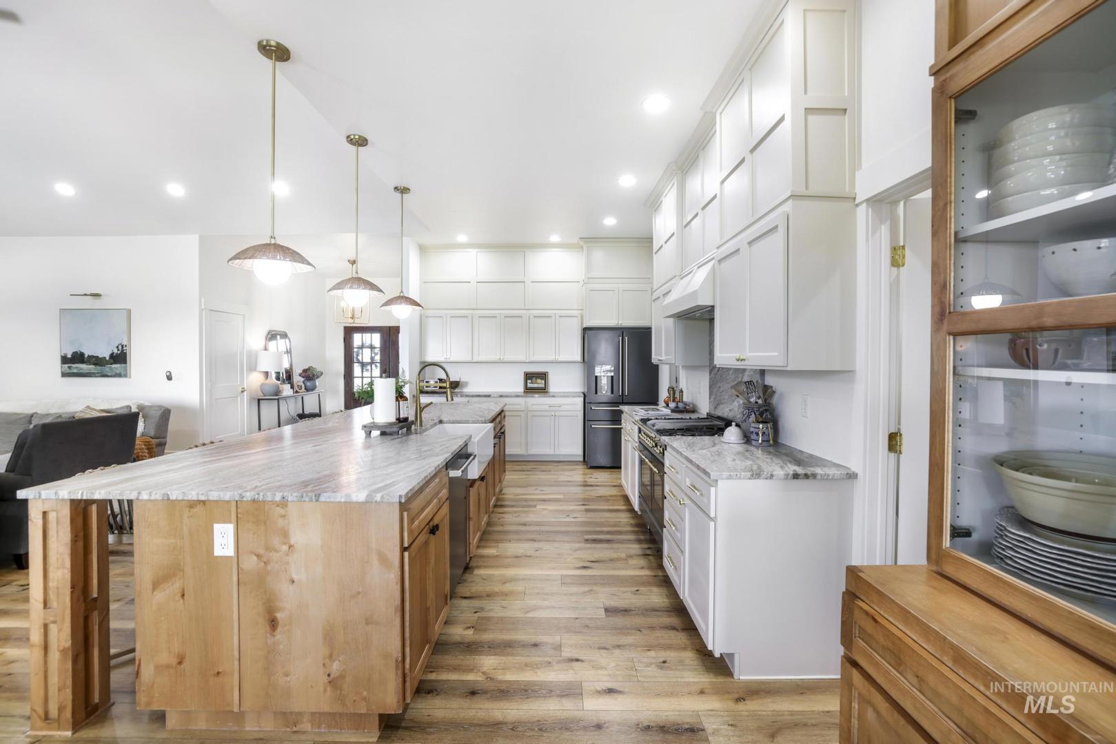 Nestled on 4 acres in between Wendell and Jerome, this beautifully maintained one-owner home offers space, comfort, and entertaining areas both inside and out. The open living room welcomes you with vaulted ceilings, abundant natural light and propane fireplace as the focal center statement. Kitchen has large expansive granite island and upgraded appliances. Primary suite with large expansive marble walk-in shower with easy access to your laundry room included with a dog wash. All 4 bedrooms are situated on main level away from master, 2 featuring a Jack and Jill bathroom. Besides the 5 bedrooms you will find an office at the front of the home. Upstairs features a large game room and hangout area. Solar Panels to help with electric costs, having some months with no bill. Plenty of parking for all of your cars or toys. Acreage to west can be included at higher price if buyer wants more land.