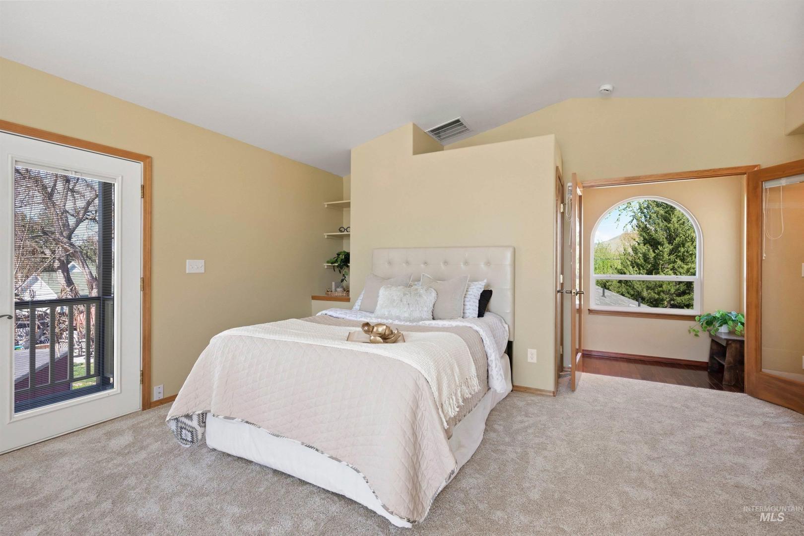 In one of SE Boise’s most sought-after pockets, this thoughtfully designed home places you moments from BSU, downtown’s cultural and sporting venues, fine dining, boutique shopping, and the Boise River lifestyle. It’s a rare blend of convenience, versatility, and quiet residential comfort. Two primary suites create exceptional flexibility for multigenerational living, guests, or a private work-from-home retreat. The upstairs primary suite lives like its own getaway, complete with a private balcony, kitchenette, linen and walk-in closet, and full bath—an ideal space for extended stays or a peaceful retreat. Downstairs, rich cherry hardwood floors flow throughout the main level, adding warmth and sophistication. Multiple patio doors invite natural light and provide seamless access to the home’s shaded outdoor spaces, perfect for morning coffee, gardening, or unwinding in privacy. An extra-long garage offers room for vehicles, gear, and storage, while the mature gardens and generous lot create a serene, leafy backdrop rarely found this close to the city’s core. From here, the best of Boise is truly at your doorstep. Bike to the Boise River Greenbelt, Bown Crossing’s popular eateries and shops, the river float launch, or Maryann Williams Park. Spend evenings at the nearby Shakespeare Festival, weekends boating at Lucky Peak, or cast a line in the river just minutes away. No HOA dues.