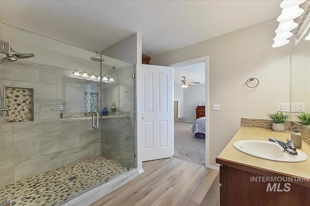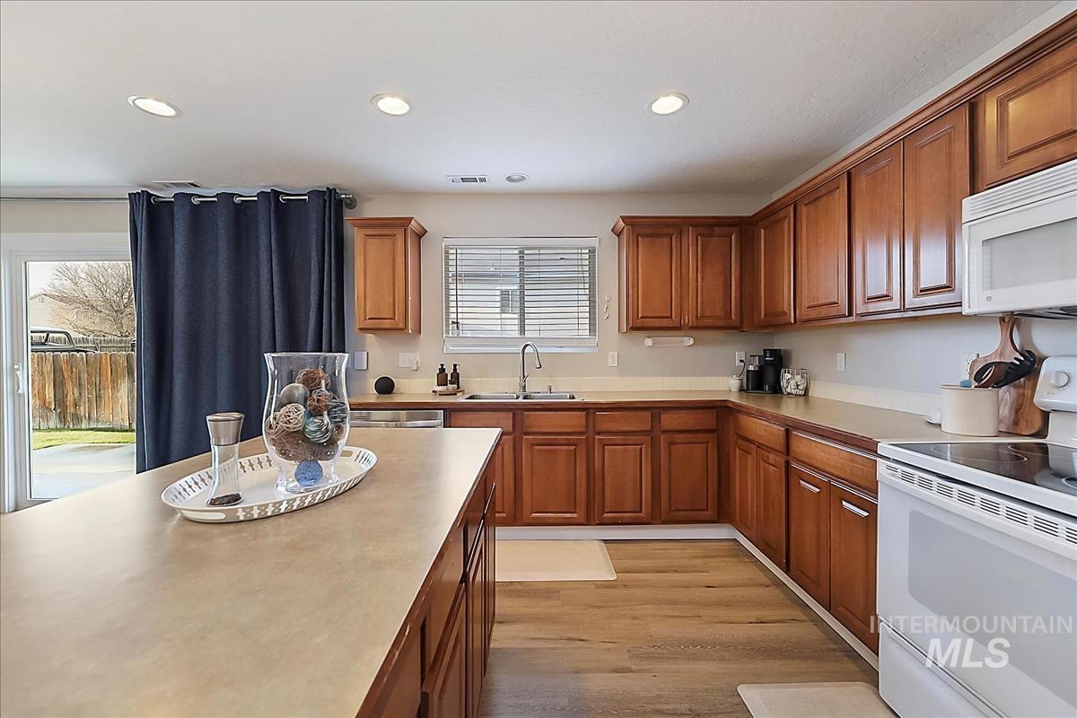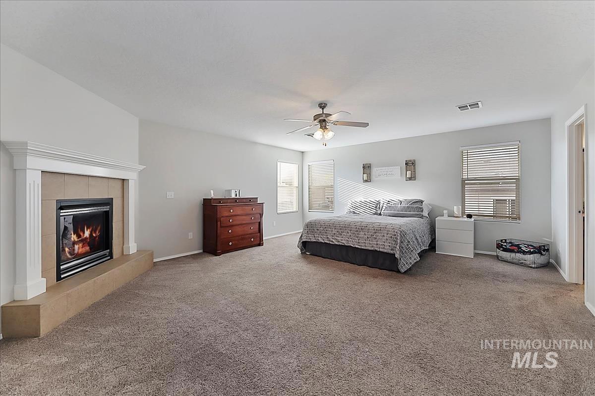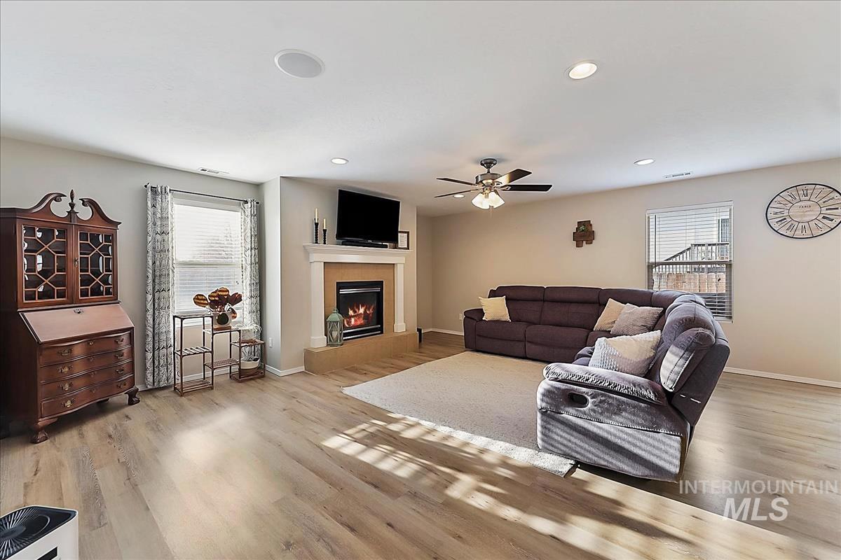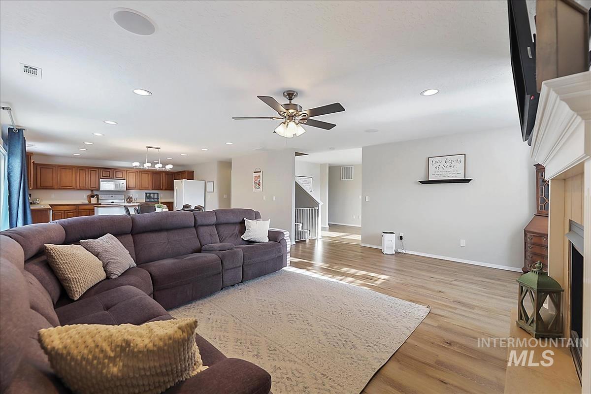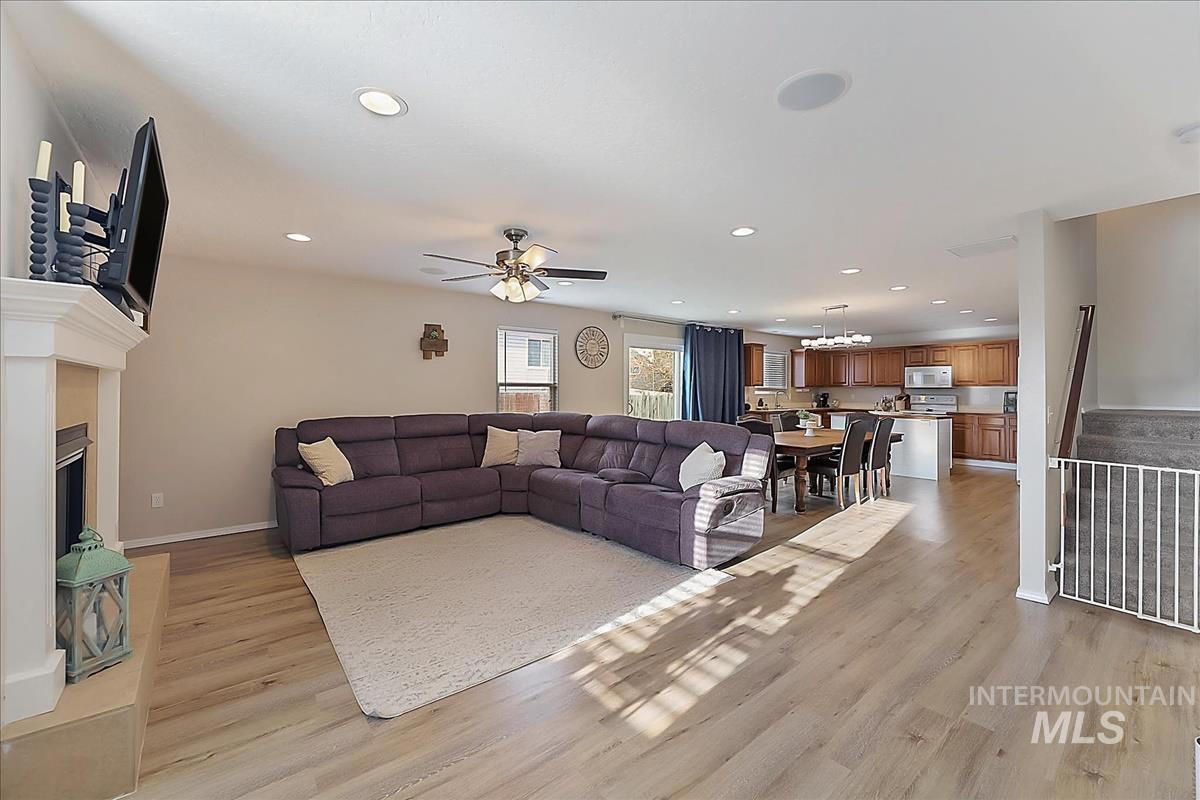 Immaculate, move-in-ready home located on a quiet corner lot in a cul-de-sac—perfect for comfortable living. This spacious home offers multiple living areas, generous storage, and walk-in closets throughout. The kitchen and eating area feature an 8-ft sliding glass door that fills the space with natural light, while two gas fireplaces create warm, inviting gathering spaces. Updates include interior paint and extensive flooring updates throughout the home (2020–2024), a full roof replacement (2022), upstairs bathroom update (2022), new water heater (2024), and a beautifully refreshed primary bath with dual shower heads (2025). Smart home features include Wi-Fi lighting, surround sound, central vacuum, and intercom wiring. Upstairs loft offers flexibility as a playroom, office, or optional 5th bedroom. Potential RV parking available alongside the home.
