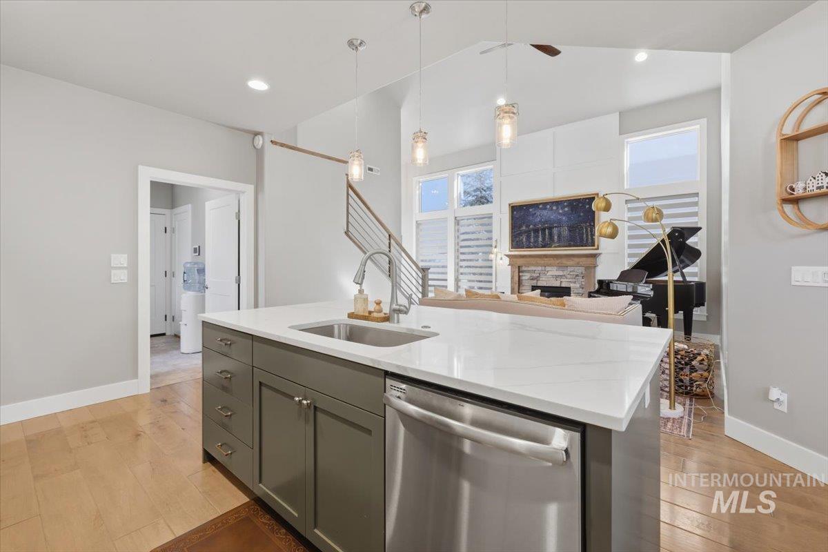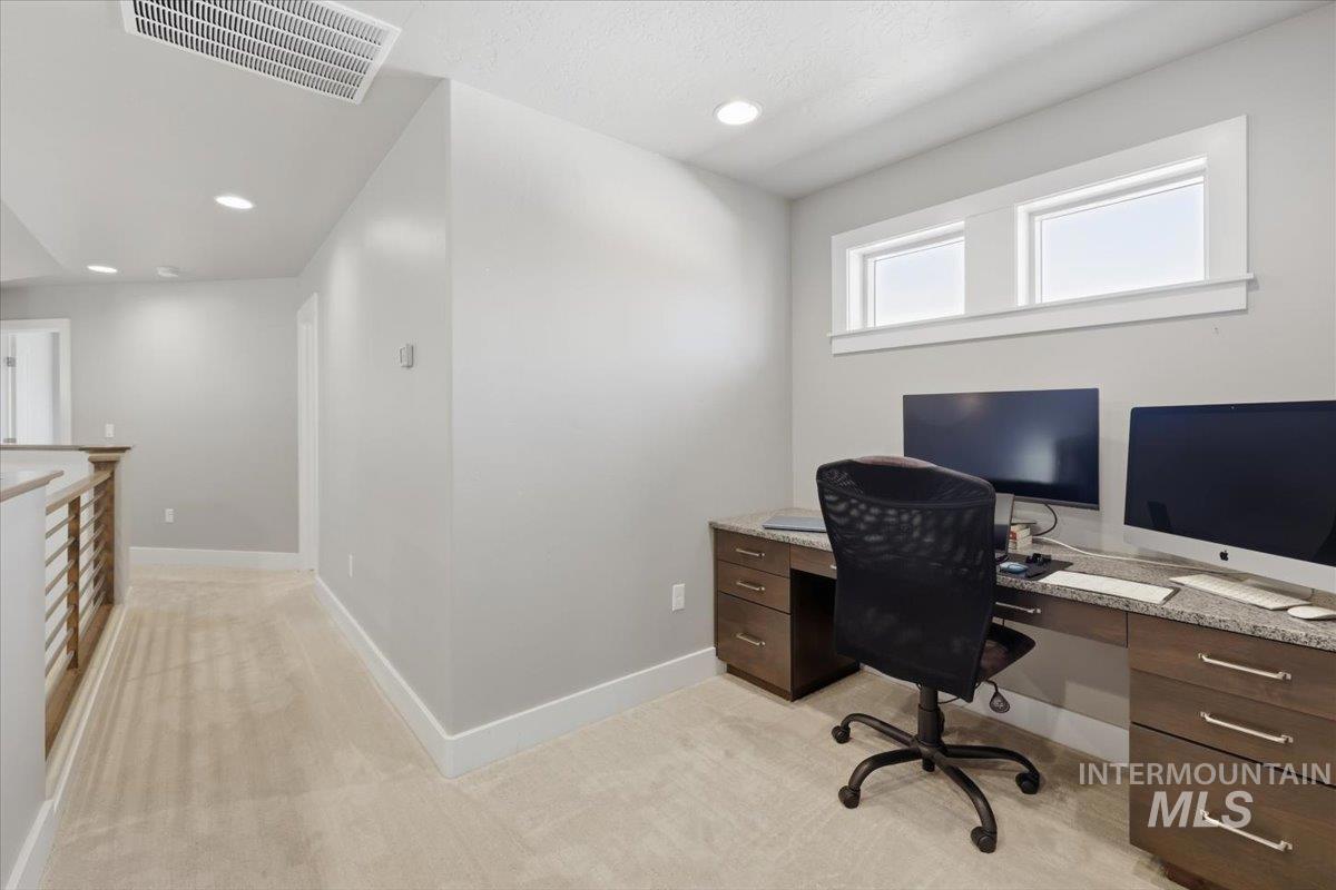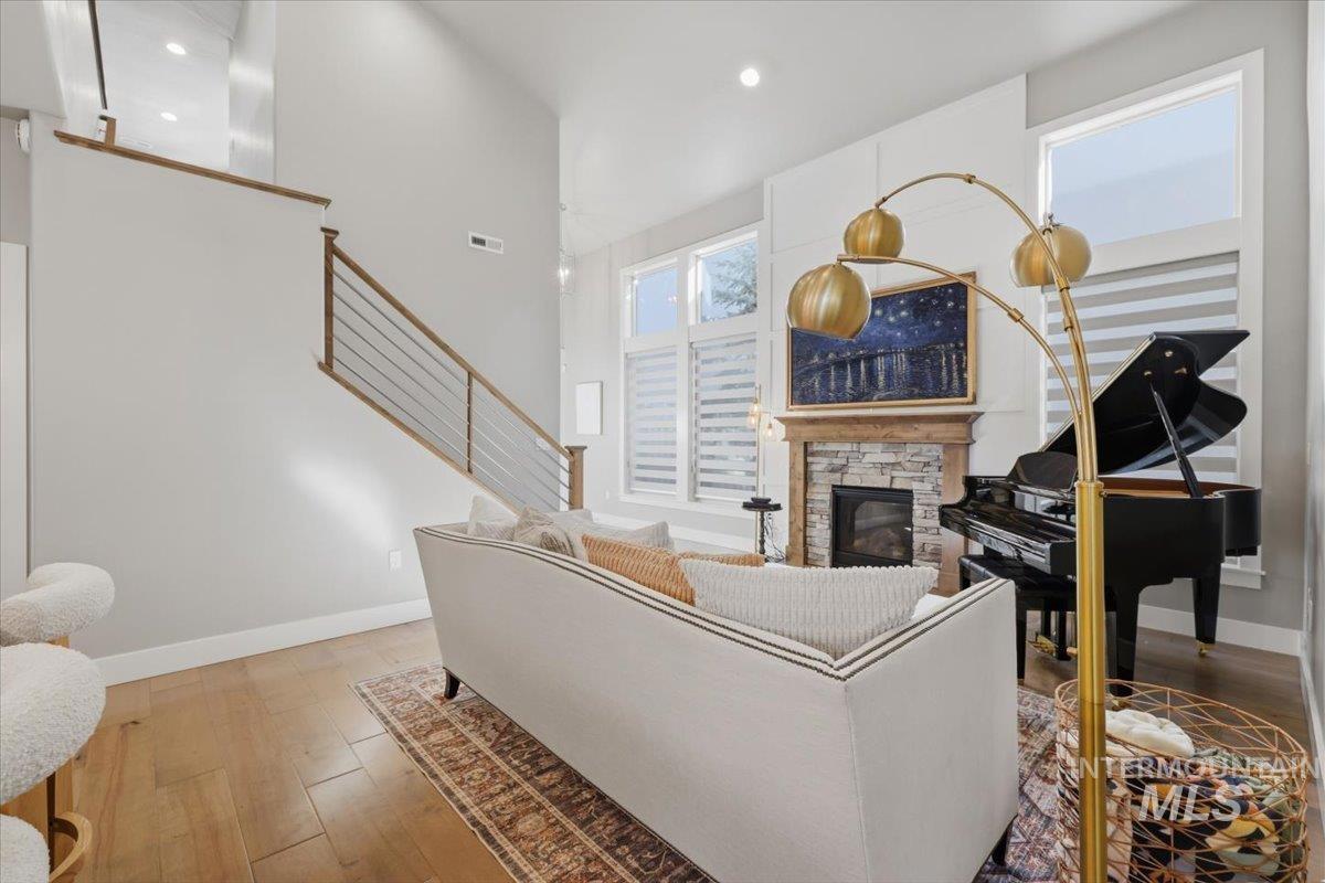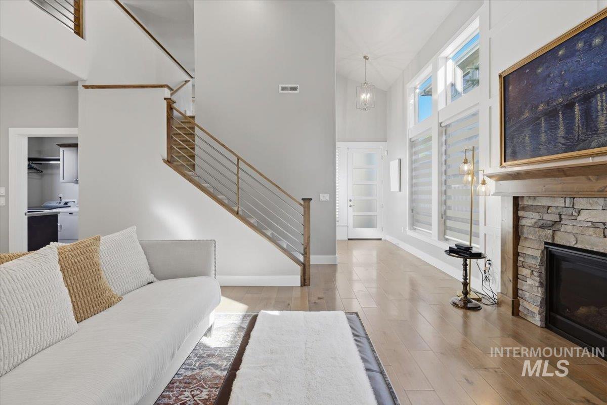 Tucked away on a quiet private lane in one of Eagle’s most desirable communities, this home has that perfect mix of privacy and convenience. You’re just a short walk to downtown Eagle, shops, restaurants, the Boise River, and the Greenbelt, so it’s easy to get out and enjoy everything the area has to offer while still feeling tucked away at home. Inside, the layout is open and comfortable, with a great room centered around a beautiful stone gas fireplace that makes the space feel warm and inviting. The kitchen is set up really well with custom cabinetry, stainless steel appliances, quartz and granite countertops, a large island, and a walk-in pantry, plenty of space whether you’re cooking or hosting. The main-level primary suite feels like its own retreat, and you’ve also got engineered hardwood and tile floors, plus an upstairs loft/bonus room and a handy office nook for extra flexibility. Out back, the yard is private and nicely landscaped with mature trees, a fully fenced yard, and an extended covered patio with a pergola, perfect for hanging out or having people over. Overall, it’s just a really well-kept, move-in ready home in a great location that’s easy to love. HOA covers front and back landscaping too!