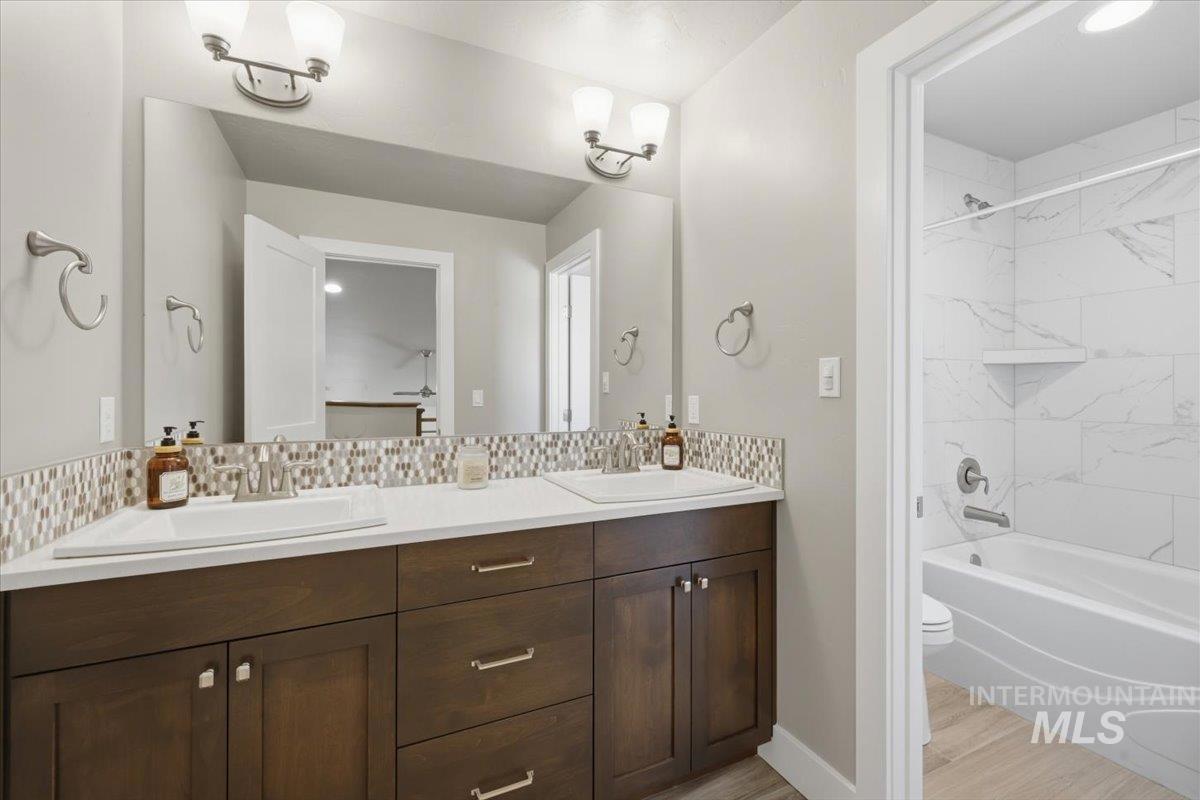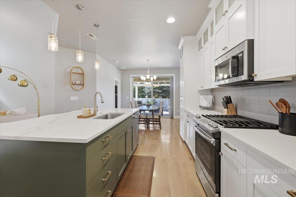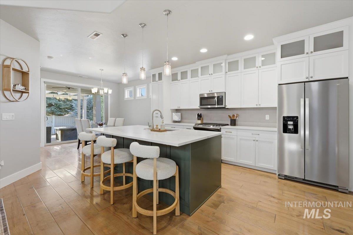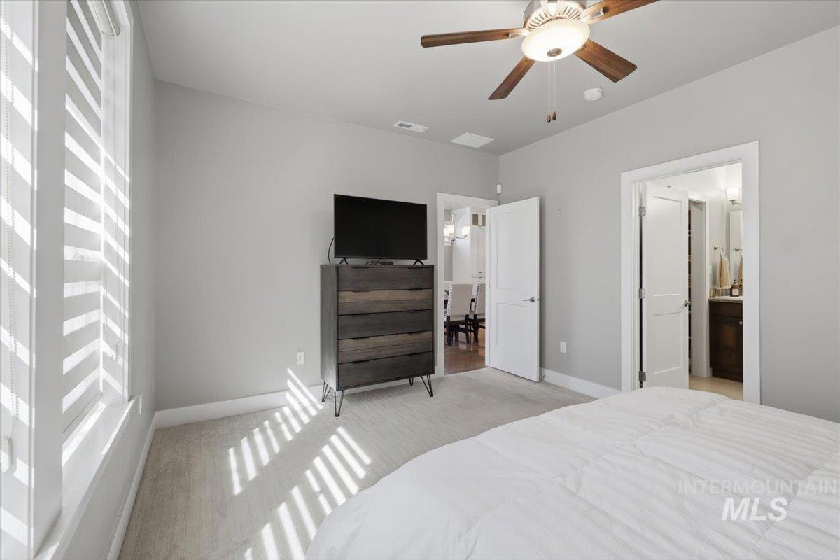 Tucked away on a quiet private lane in one of Eagle’s most desirable communities, this home has that perfect mix of privacy and convenience. You’re just a short walk to downtown Eagle, shops, restaurants, the Boise River, and the Greenbelt, so it’s easy to get out and enjoy everything the area has to offer while still feeling tucked away at home. Inside, the layout is open and comfortable, with a great room centered around a beautiful stone gas fireplace that makes the space feel warm and inviting. The kitchen is set up really well with custom cabinetry, stainless steel appliances, quartz and granite countertops, a large island, and a walk-in pantry, plenty of space whether you’re cooking or hosting. The main-level primary suite feels like its own retreat, and you’ve also got engineered hardwood and tile floors, plus an upstairs loft/bonus room and a handy office nook for extra flexibility. Out back, the yard is private and nicely landscaped with mature trees, a fully fenced yard, and an extended covered patio with a pergola, perfect for hanging out or having people over. Overall, it’s just a really well-kept, move-in ready home in a great location that’s easy to love. HOA covers front and back landscaping too!