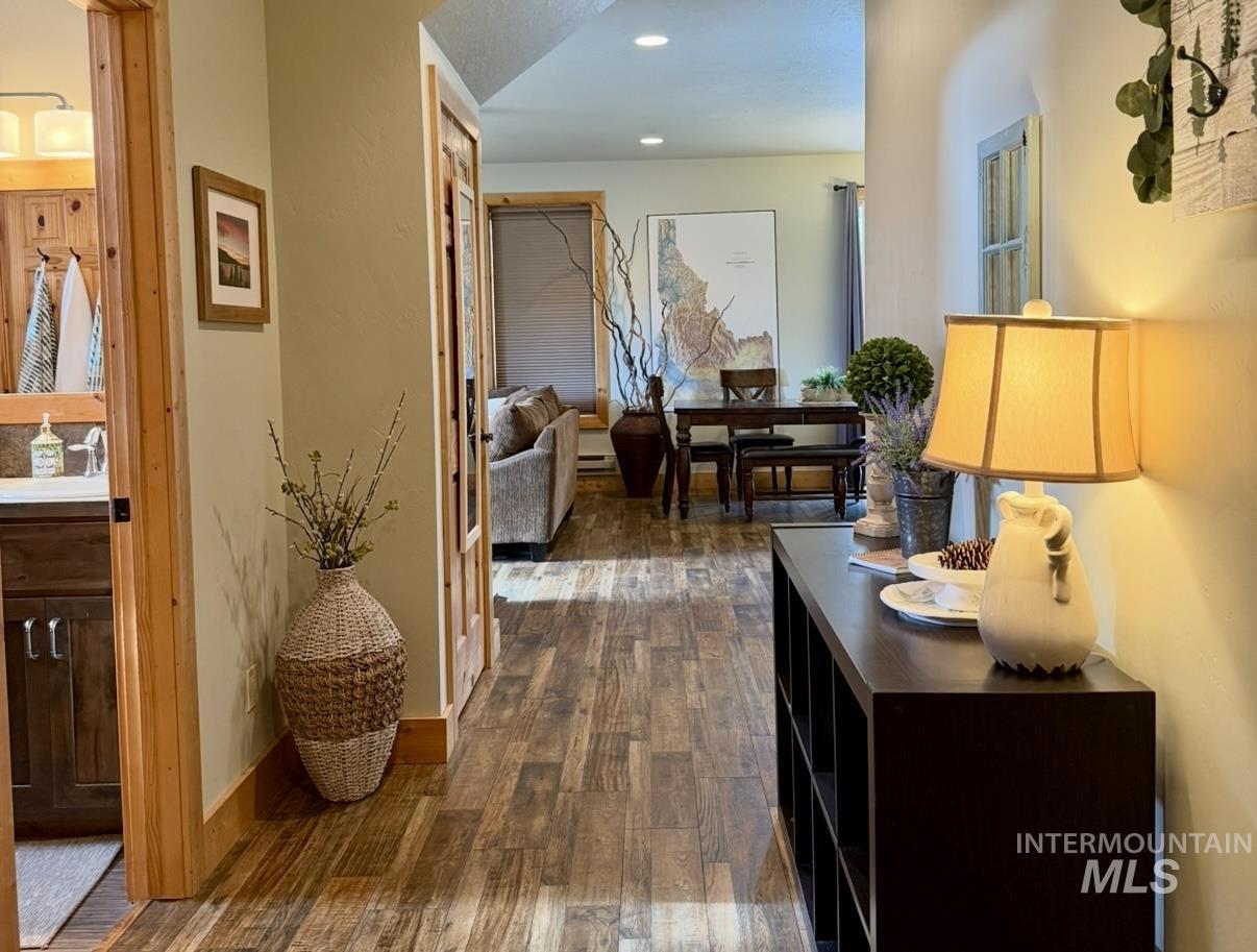 The Cabin. Welcome to this beautiful turn-key home. Located right next to the lake & boat launch in one of the most sought after locations in Donnelly, Arrowhead Point. Cozy & comfortable, this home features a main level primary bedroom, beautiful LVT floors, & plenty of room for all to relax together. Optimal floor-plan design, allowing everyone to socialize together, from the living room, dining room, lounging nook, or kitchen area. Perfect for never missing out on conversation. Upstairs loft with 2 triple bunks (attached/built-in solid alder wood) & each bunk has a tv of it`s own for kids to watch movies, or play old school video games, NES/SNES. Two spacious bedrooms with attached pass-through bathroom each with it`s own vanity. Lot borders common area on two sides, which adds scenic wooded views & privacy. Tons of parking space, 4 vehicles can fit on concrete driveway, boat & trailer on side asphalt driveway, or even an RV for your friends to setup for the weekend. So this is the place you`ve been waiting for if you like boating, snow skiing, or just being near the mountains & wildlife. Launch the boat & park immediately in your own driveway, & just like that you are on the water. If you like snow skiing then buzz directly across the lake on your snowmobile to Tamarack. There is a nearby Community T-dock located directly across from the Ski Resort/Marina.