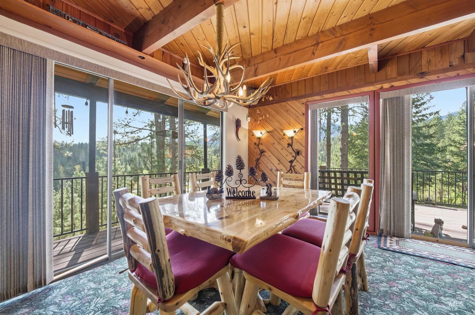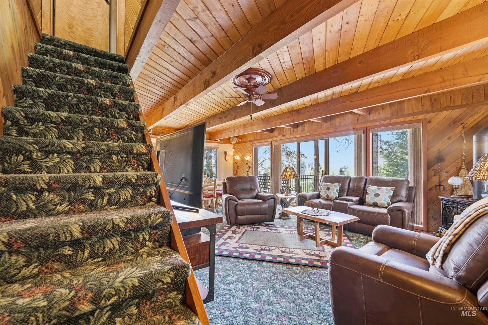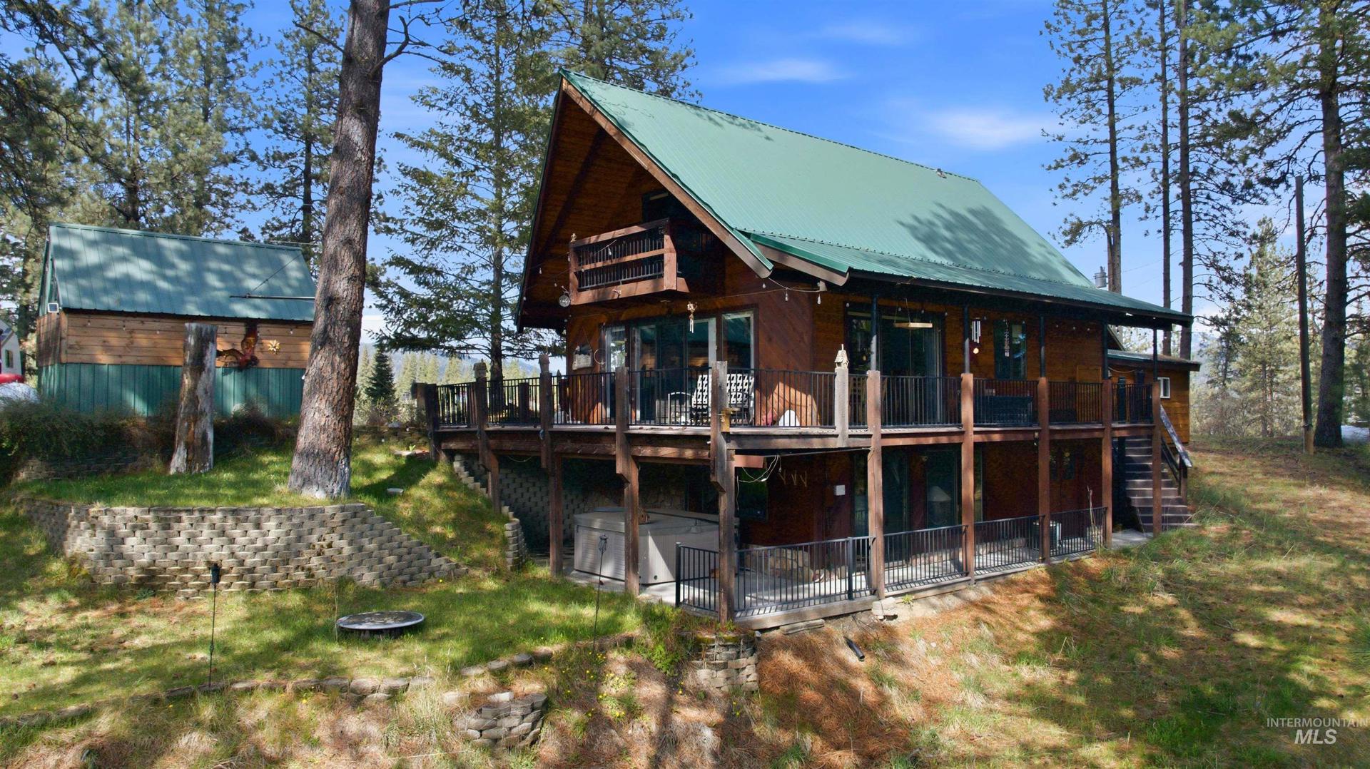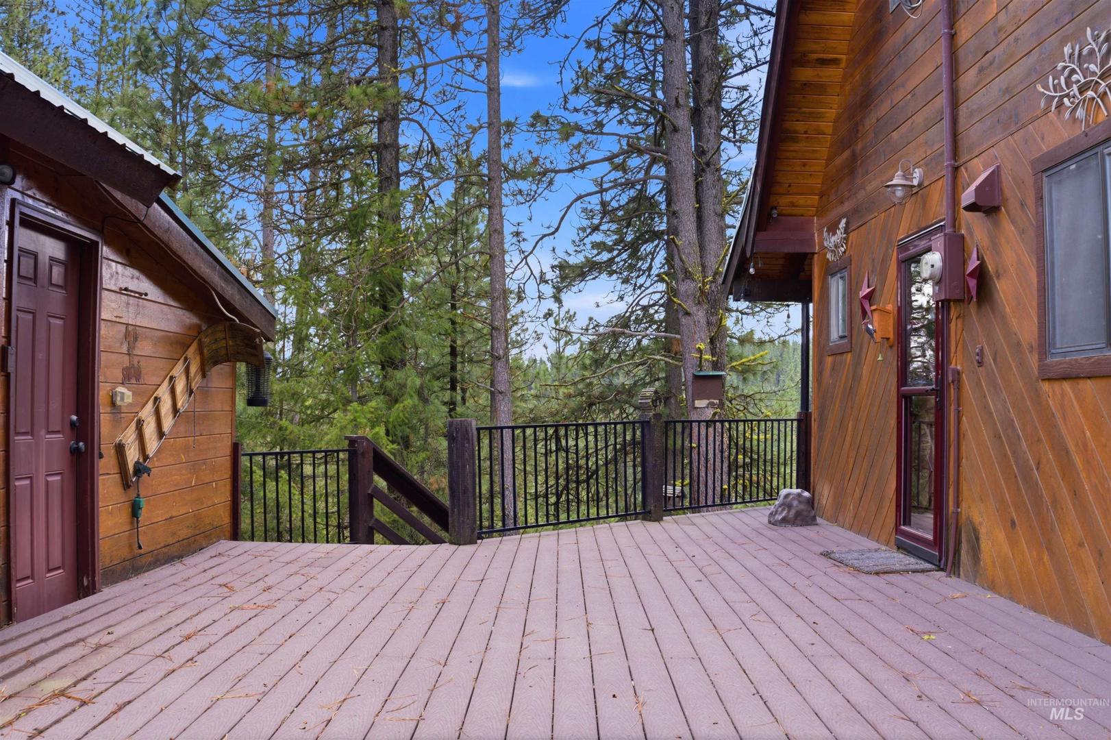 A fully furnished cabin, scenic views of Terrace Lake golf course with a wrap around deck. Cozy fire pit to spend by a warm fire. Access to the Terrace Lakes Resort pool and clubhouse year around. Cabin is framed by tall pines and is on an elevated lot with surrounding views of Scott Mountain, Garden Mountain and Shaffer Butte. Cabin is turn-key and has been gently used by the current owner. Impeccable decor, furnishings, two golf carts, custom dining table, Trex decking, HVAC, propane fireplace, drive thru driveway with plenty of parking for RV and guests. Quick Connect sprinkler blow out. Two hot water heaters. Smart sprinkler box with app.
