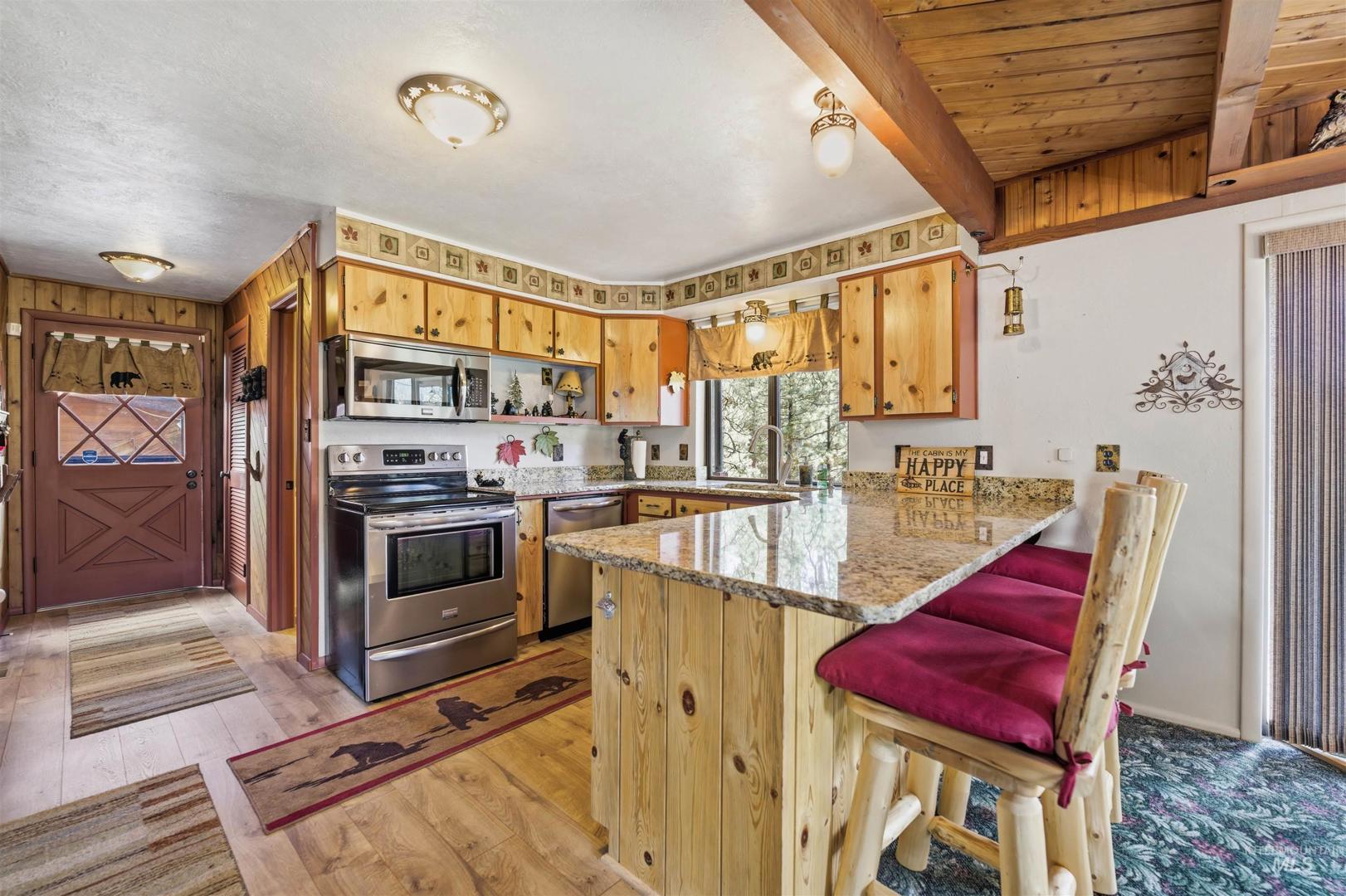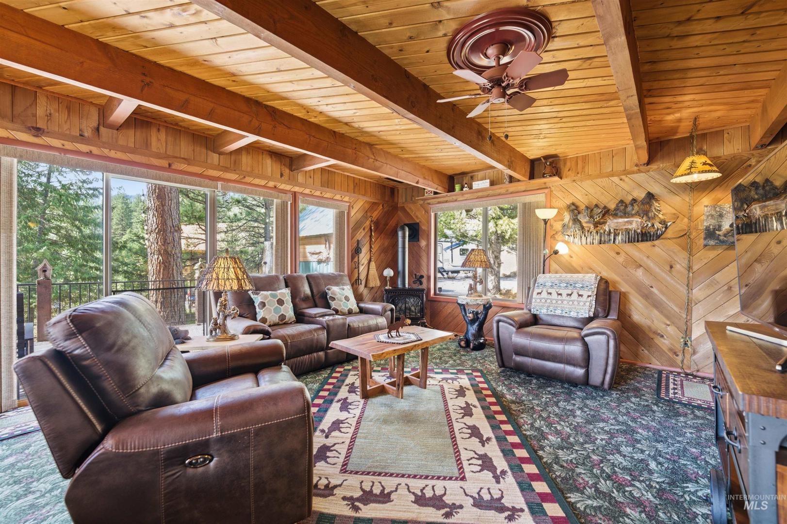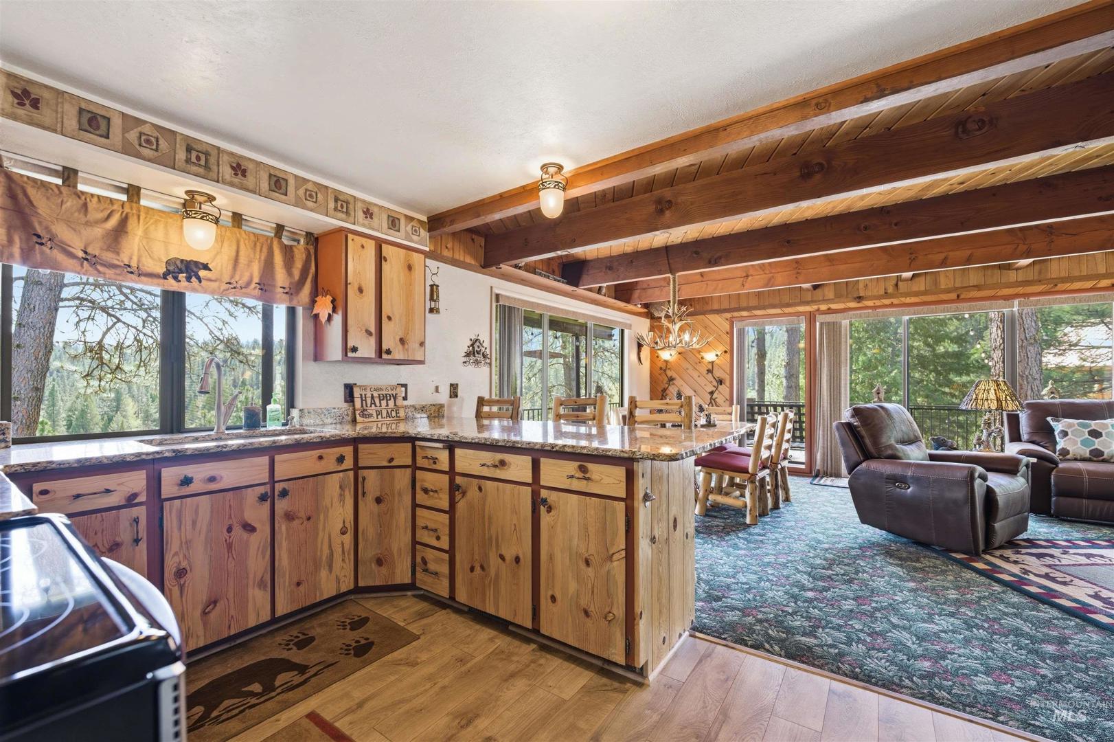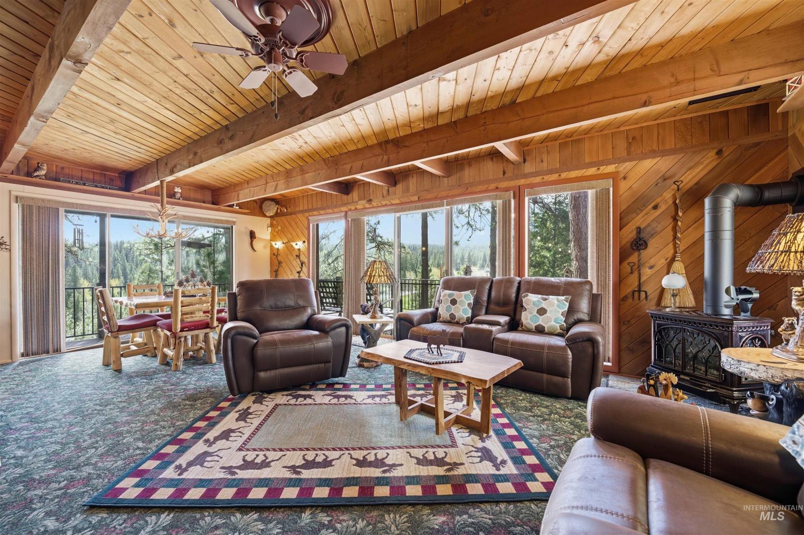 A fully furnished cabin, scenic views of Terrace Lake golf course with a wrap around deck. Cozy fire pit to spend by a warm fire. Access to the Terrace Lakes Resort pool and clubhouse year around. Cabin is framed by tall pines and is on an elevated lot with surrounding views of Scott Mountain, Garden Mountain and Shaffer Butte. Cabin is turn-key and has been gently used by the current owner. Impeccable decor, furnishings, two golf carts, custom dining table, Trex decking, HVAC, propane fireplace, drive thru driveway with plenty of parking for RV and guests. Quick Connect sprinkler blow out. Two hot water heaters. Smart sprinkler box with app.