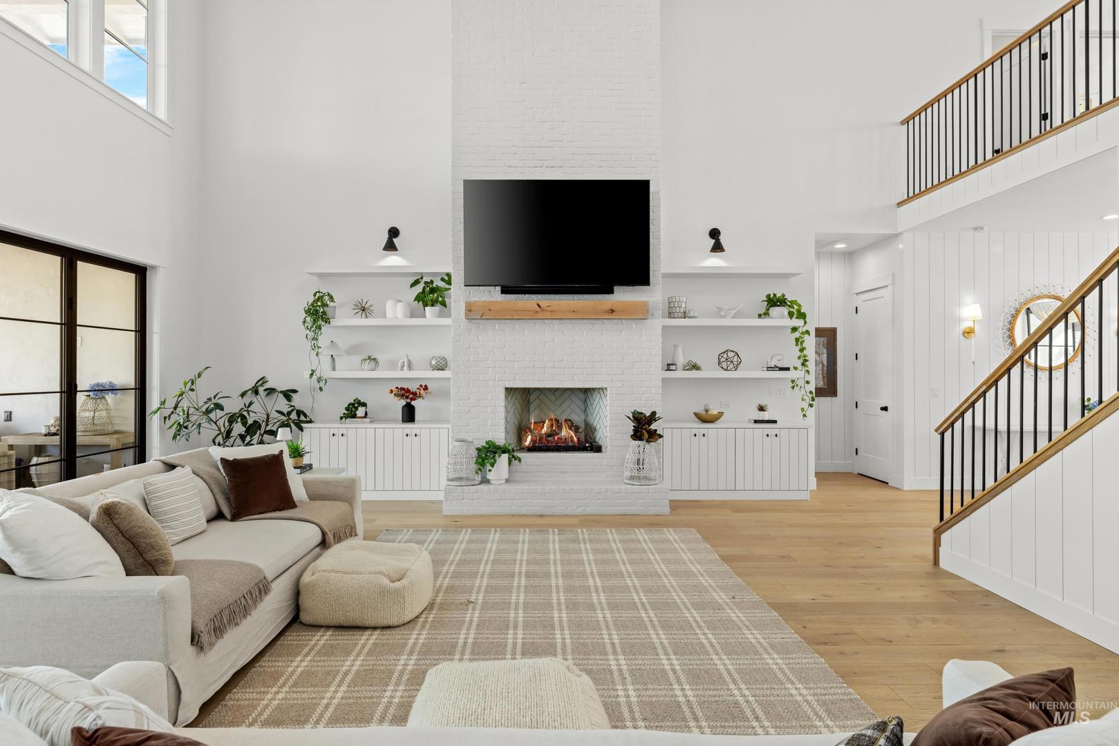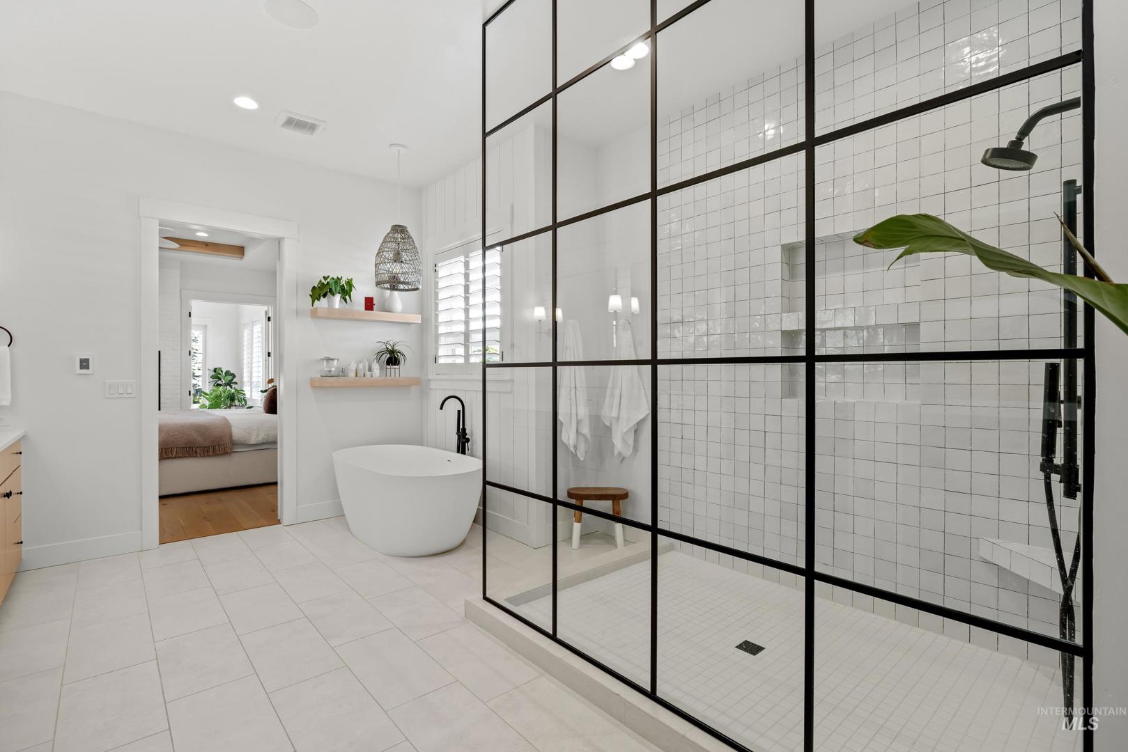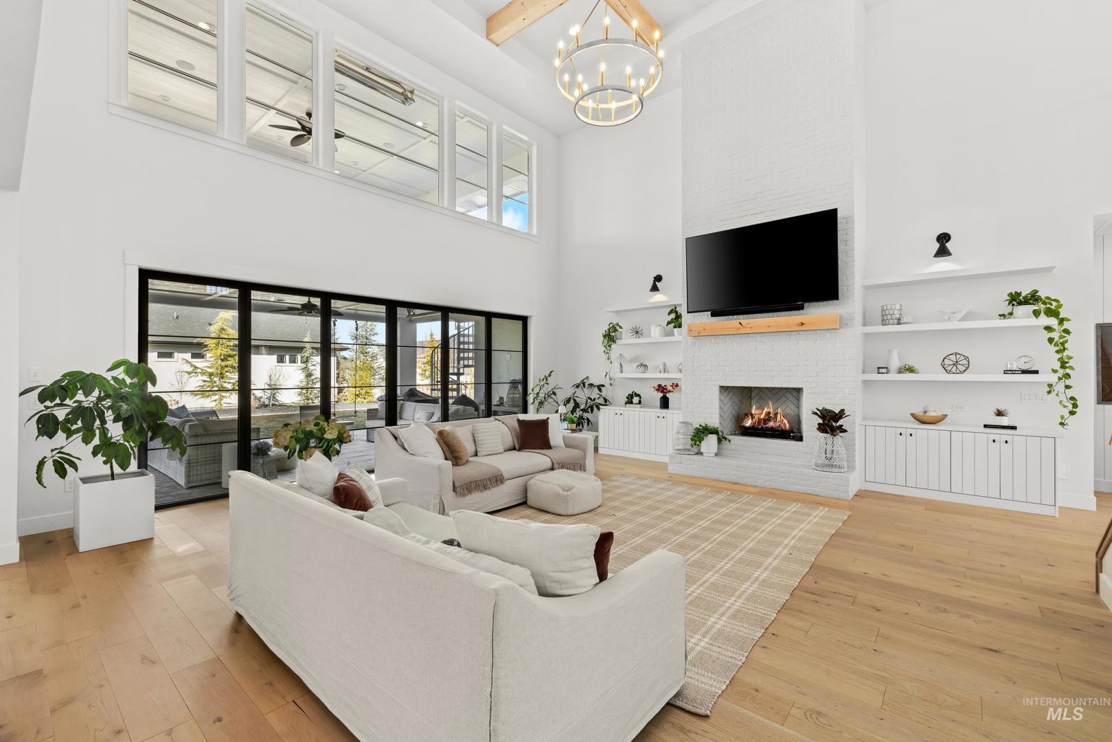 An unparalleled waterfront luxury estate in the heart of Legacy! A truly custom home with over 6,200 sq ft, 6 beds, 4 full baths and 2 half baths, and 2 main-level primary suites. The chef’s kitchen boasts a waterfall quartz island, Wolf appliances, and two pantries: one true butler’s & food/snack pantry. An impressive open-concept great room with wood beam ceilings, a floor-to-ceiling brick fireplace, amassing 20+ ft ceilings with fully expandable accordion doors in living and dining rooms. The primary suite offers a dual-sided fireplace, skylights, stunning sunroom, and spa-like bath with heated tile floors, soaker tub, and custom walk-in closet. Enjoy a bonus room with a dry bar, surround sound, and an office with a brick accent wall. Outdoors, find a stamped concrete patio, spiral staircase to the second-floor deck, in-ground trampoline, and private beach with fire pit. Complete with a 4-car garage with boat bay, dual furnaces, backup generator and more, this home is the epitome of luxury. Legacy features luxury resort-style amenities, including 2 pools, golf, tennis, walking paths and much more!