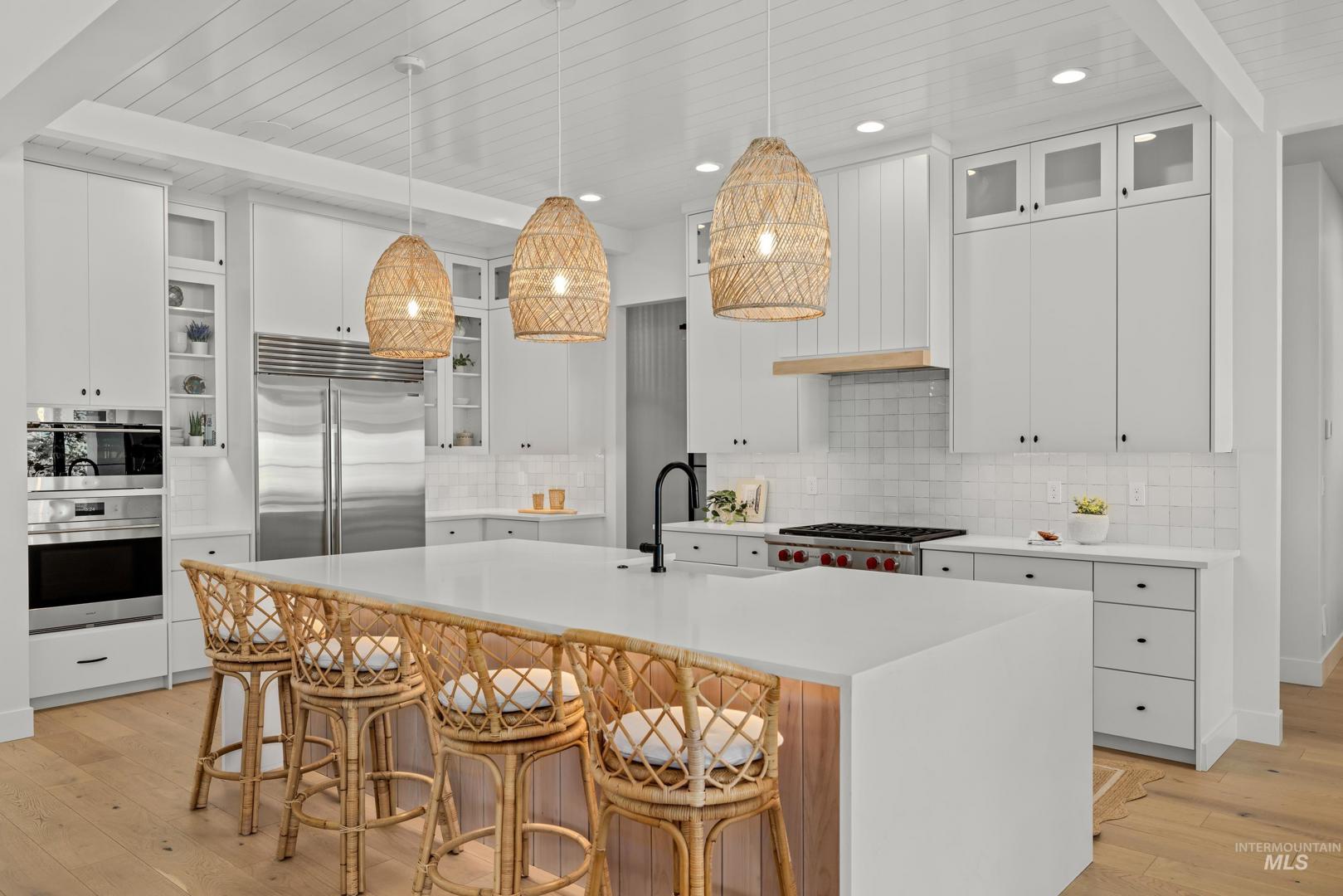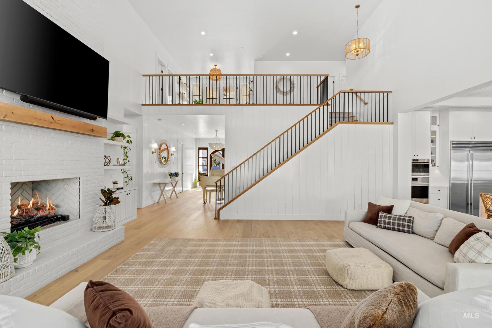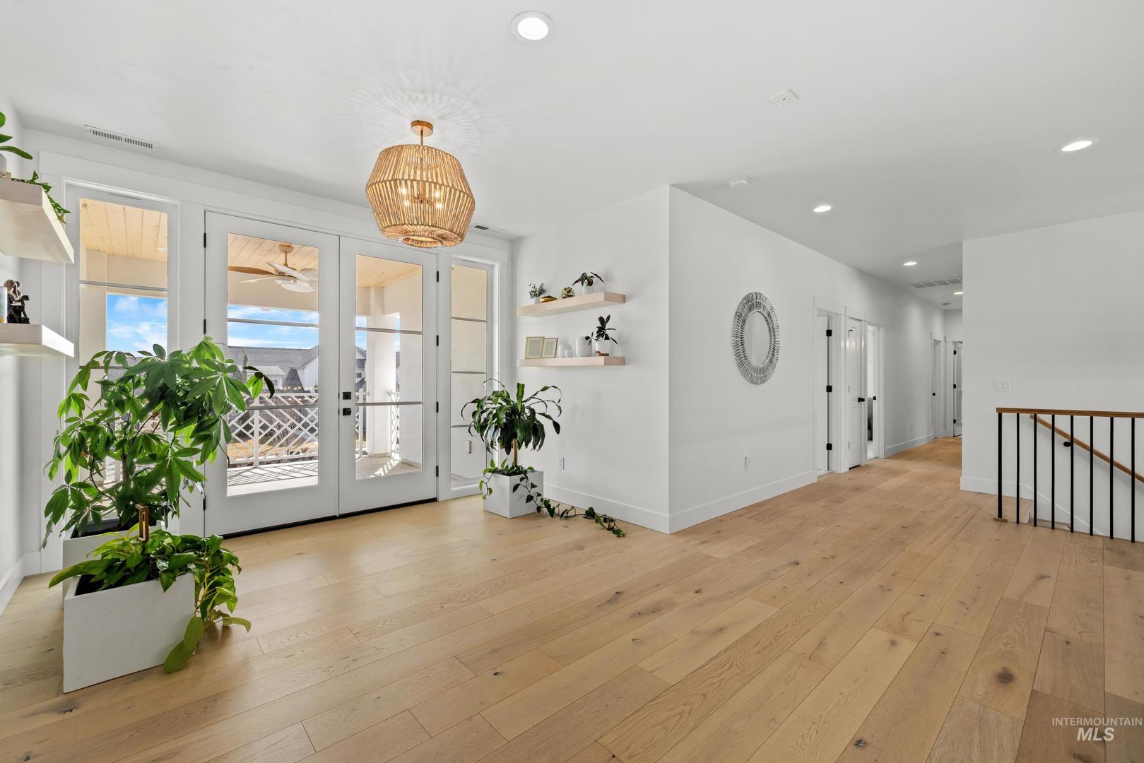 An unparalleled waterfront luxury estate in the heart of Legacy! A truly custom home with over 6,200 sq ft, 6 beds, 4 full baths and 2 half baths, and 2 main-level primary suites. The chef’s kitchen boasts a waterfall quartz island, Wolf appliances, and two pantries: one true butler’s & food/snack pantry. An impressive open-concept great room with wood beam ceilings, a floor-to-ceiling brick fireplace, amassing 20+ ft ceilings with fully expandable accordion doors in living and dining rooms. The primary suite offers a dual-sided fireplace, skylights, stunning sunroom, and spa-like bath with heated tile floors, soaker tub, and custom walk-in closet. Enjoy a bonus room with a dry bar, surround sound, and an office with a brick accent wall. Outdoors, find a stamped concrete patio, spiral staircase to the second-floor deck, in-ground trampoline, and private beach with fire pit. Complete with a 4-car garage with boat bay, dual furnaces, backup generator and more, this home is the epitome of luxury. Legacy features luxury resort-style amenities, including 2 pools, golf, tennis, walking paths and much more!