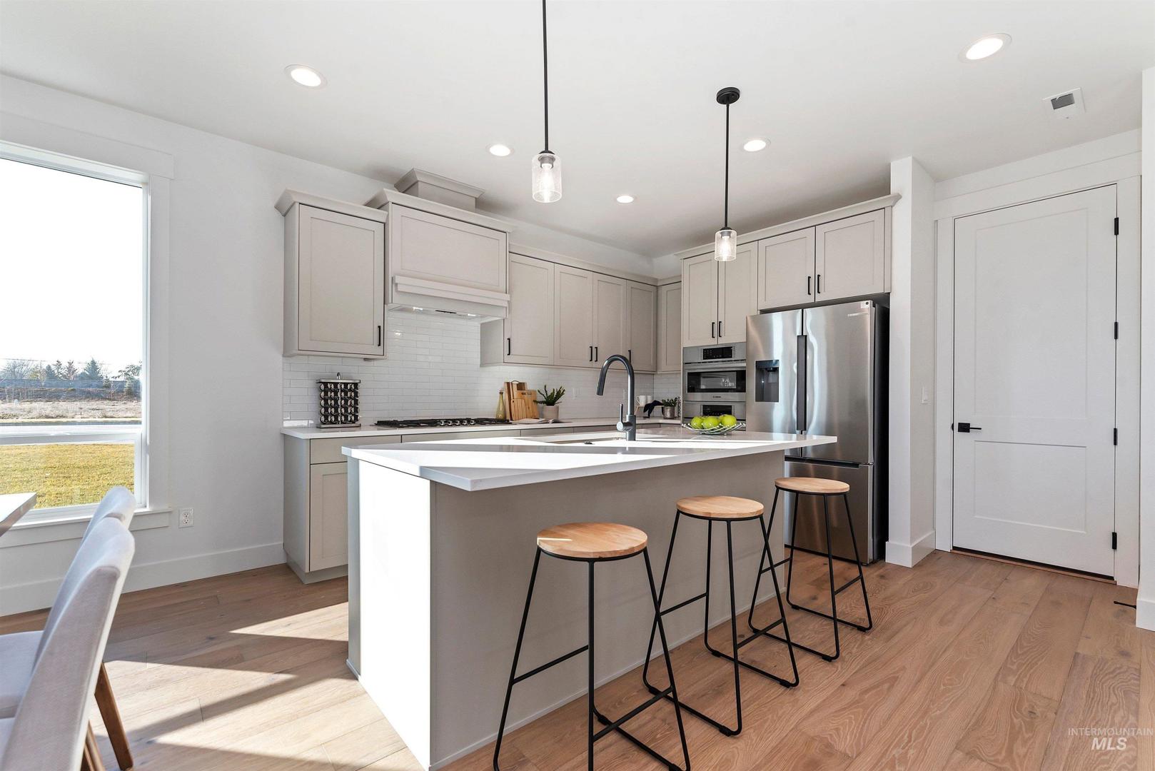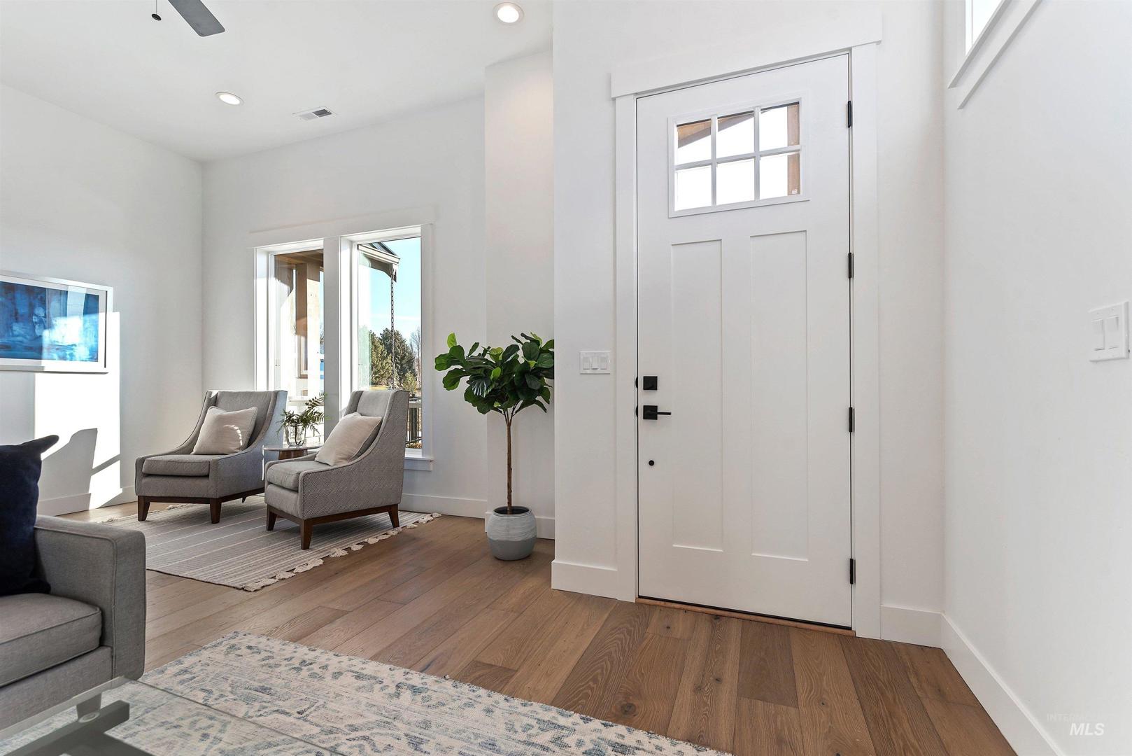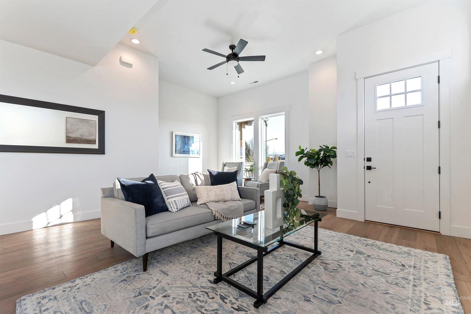 Best value in Eagle with a limited-time buyer incentive offering rates as low as 2.99% on this fully upgraded Kingfisher Cove townhome. Ideally located just moments from downtown Eagle, enjoy the ability to walk or bike to local shopping, dining, and entertainment, all while being part of a thoughtfully designed community featuring a pool, cabana, and dog park. Inside, the home showcases a modern, refined aesthetic with Bosch appliances (including refrigerator), quartz countertops, custom soft-close cabinetry, and a full tile walk-in shower. A cozy fireplace adds warmth to the main living space, while the epoxy-finished garage floor provides both function and a polished finish. Designed with ease of living in mind, this low-maintenance property is an excellent option for those looking to downsize without compromise or for buyers seeking a strong investment opportunity with rental appeal. With limited options at this price point in Eagle, Kingfisher Cove continues to stand out as one of the area’s most compelling opportunities for value, quality, and location.