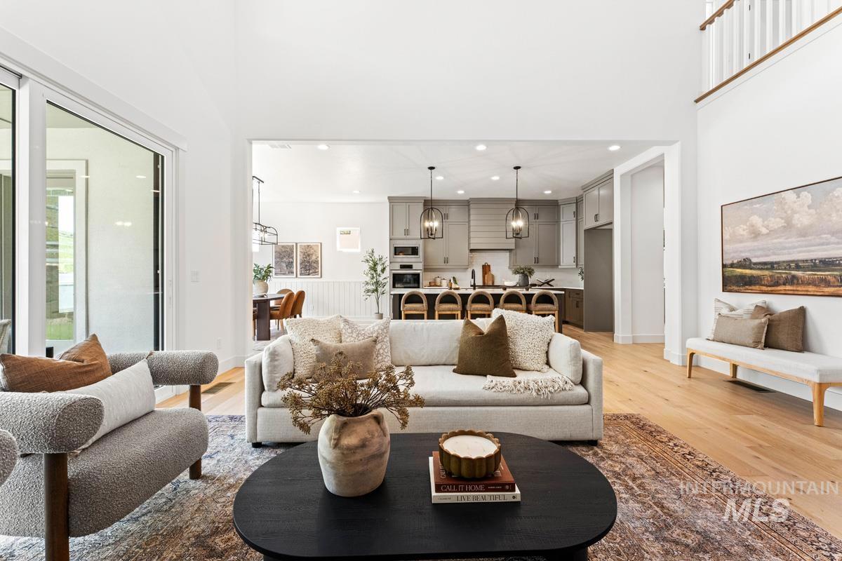 Come see this new Tablerock home with no rear neighbors and a serene front door view over the rooftops of Dry Creek Ranch to the Eagle foothills in the distance. This home enjoys one of our most popular layouts, featuring luxury finishes and stunning new-home details. The great room boasts tall ceilings and a striking open-to-below design, centered around a beautiful modern fireplace. Steps away, the spacious chef’s kitchen and dining room enjoy ample natural light from a wall of windows. Both the great and dining rooms include access to the expanded covered patio that’s perfect for gatherings and al fresco dining. Tucked away, the main-floor primary suite combines functional excellence with luxurious touches, including high ceilings, a soaker tub, tiled shower, a large walk-in closet, and access to the covered patio. Now open, the Dry Creek Ranch Community Clubhouse spans five manicured acres, featuring courts, a pool, and an 8,840 sqft. clubhouse with state-of-the-art amenities. Home is ready now.