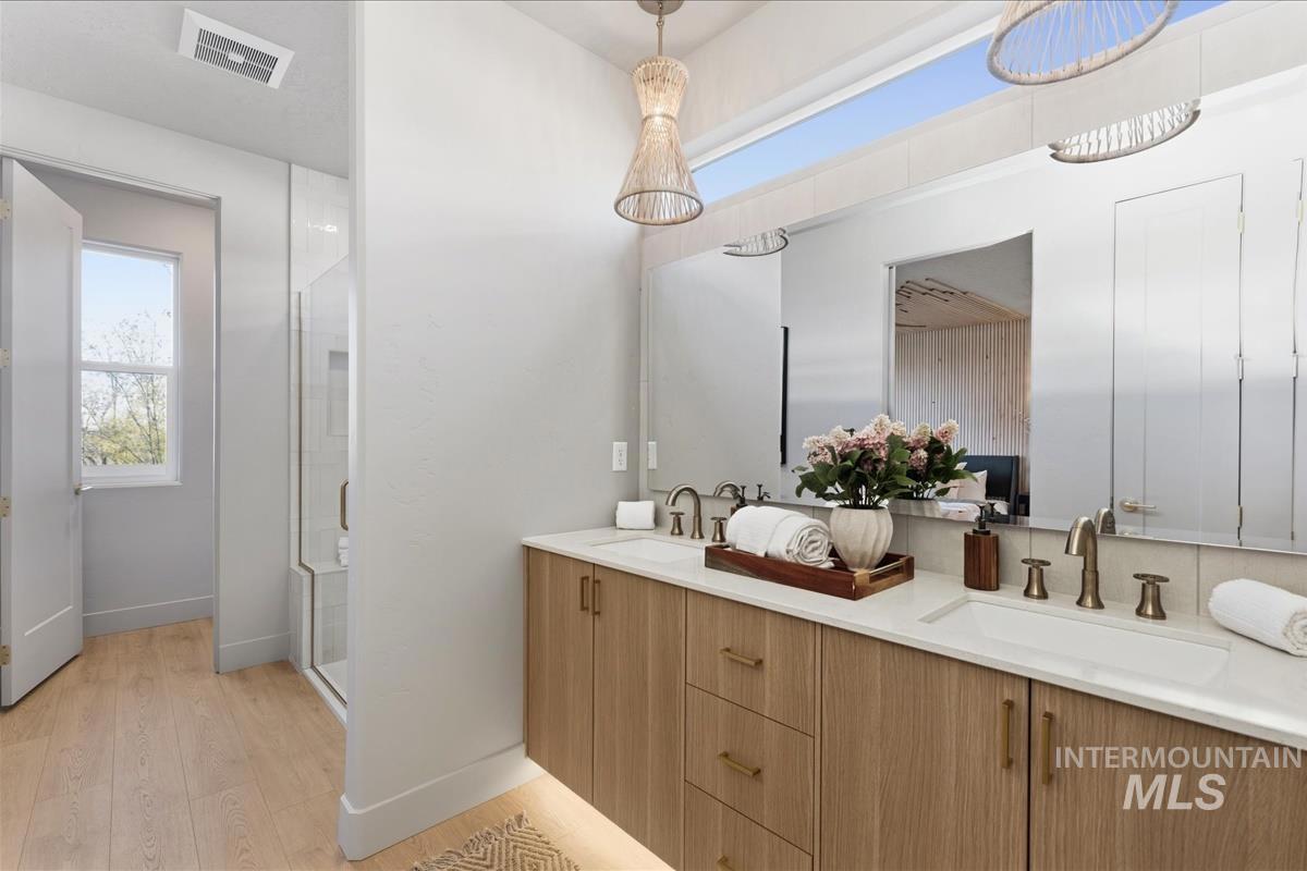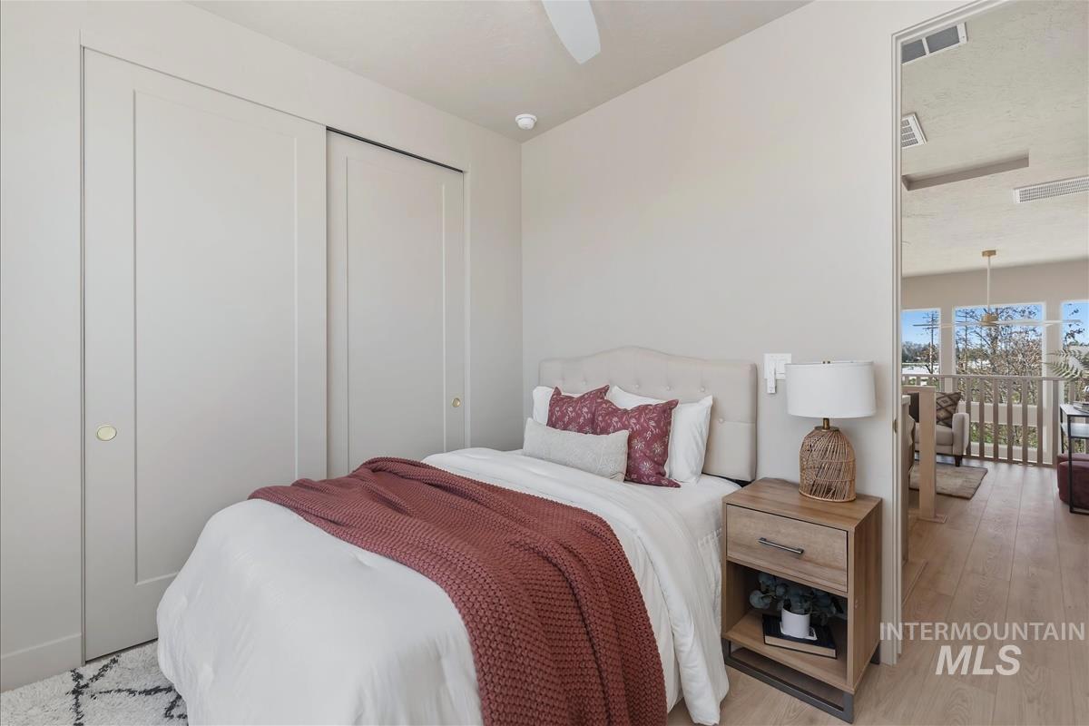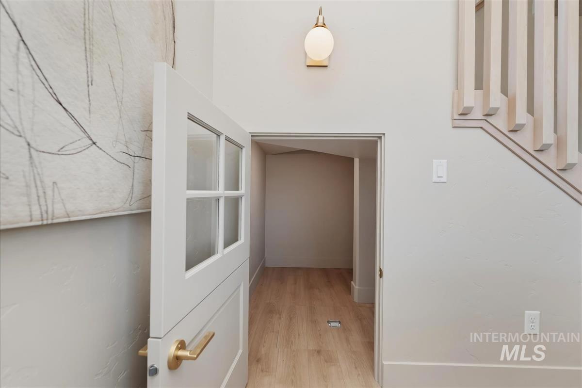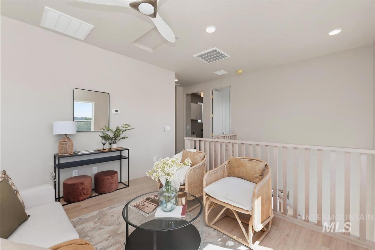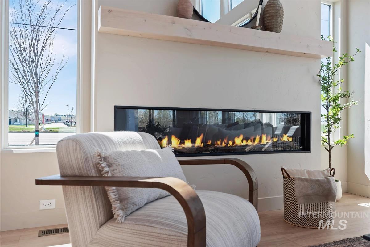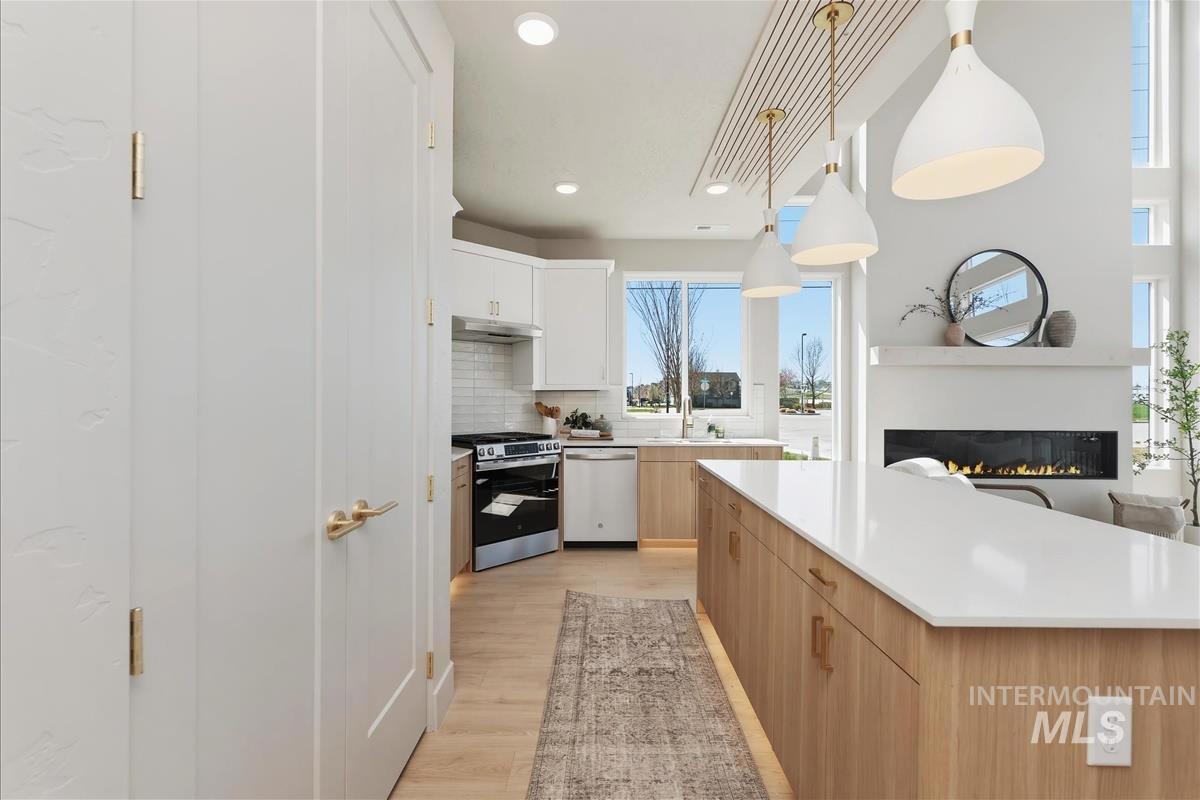 Experience Scandinavian style in this move-in ready home in Meridian’s sought-after Alamar community. Built by Midas Corp, the “Ingrid I” floorplan features clean lines, warm wood accents & soft, airy tones to create a calm, inviting atmosphere. Conveniently located near I-84, Scheels, Compass Charter School & future District at Ten Mile. The main level offers a flex space in front, perfect for a dining space, office or separate seating area. The open great room with soaring 2-story ceilings & expansive windows opens up to the kitchen with tons of natural light pouring in. A slider leads to a covered patio overlooking Purdam Gulch providing indoor/outdoor living in a peaceful, natural setting with birds & occasional ducks. A Dutch door under the stairs adds a charming space for pets, storage or a play area. Upstairs, the primary suite features a private balcony, while a secondary bedroom includes its own balcony. An open loft provides space for an office, lounge or playroom. Community amenities include a dog park. Thoughtful design, quality finishes & prime location complete this home.