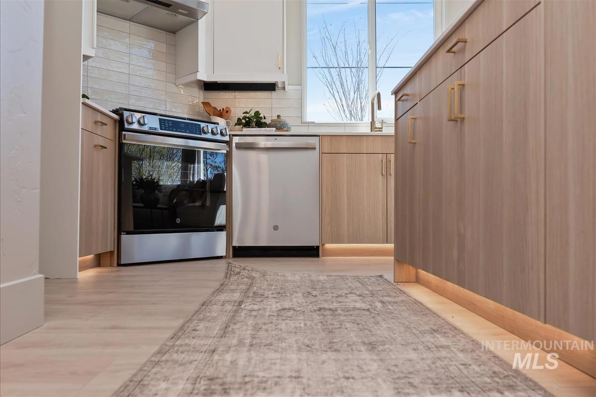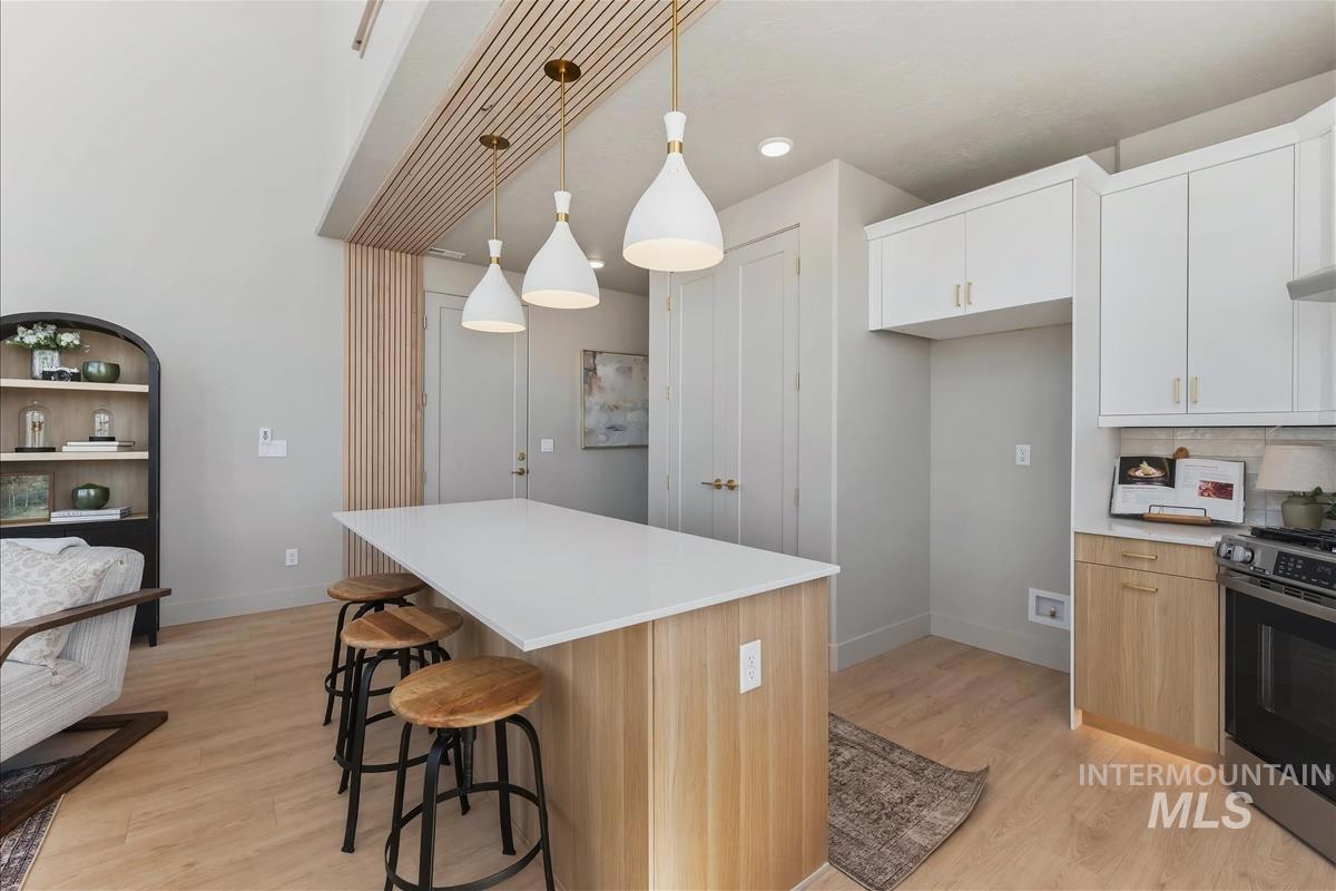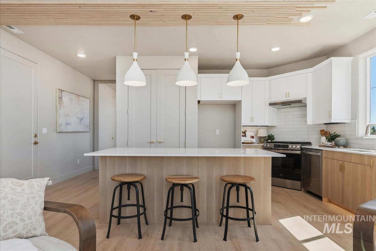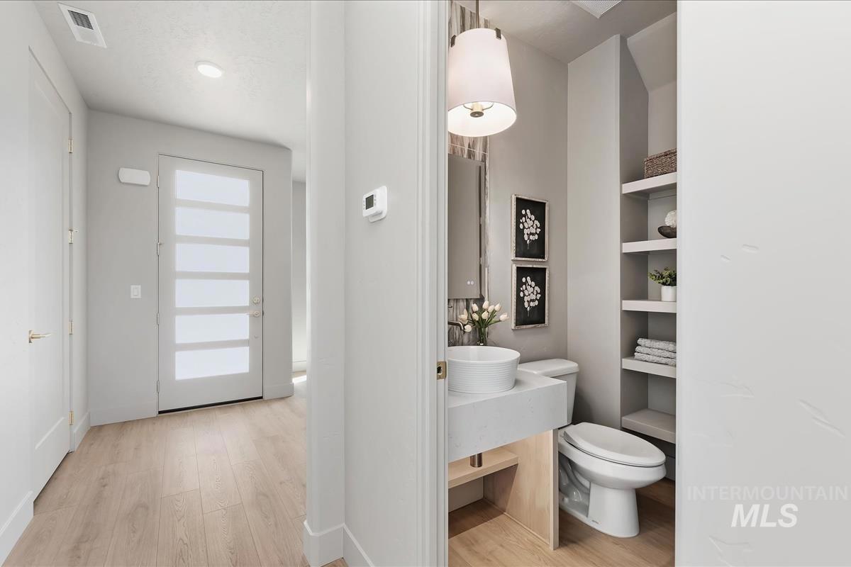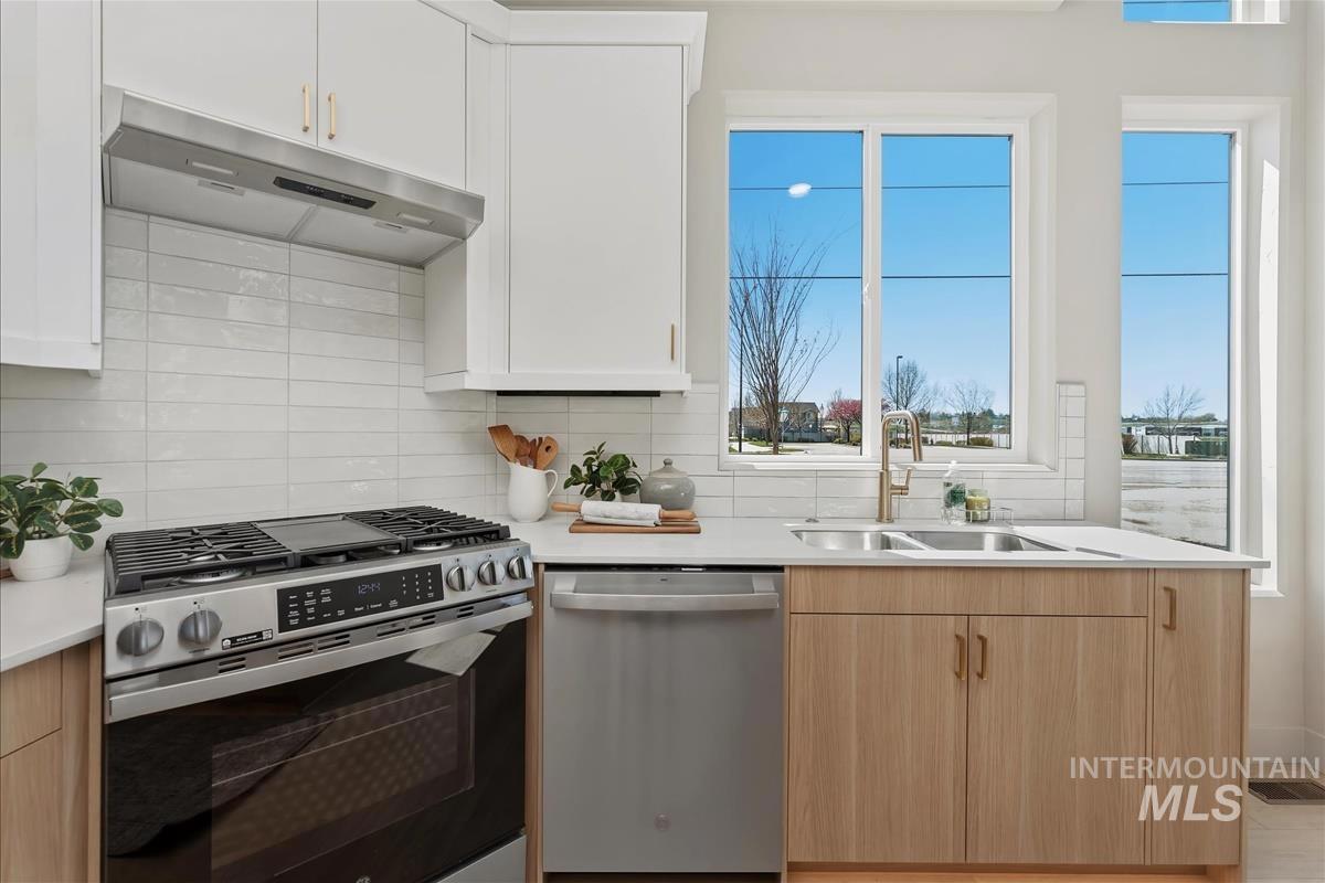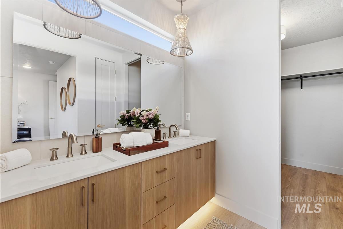 Experience Scandinavian style in this move-in ready home in Meridian’s sought-after Alamar community. Built by Midas Corp, the “Ingrid I” floorplan features clean lines, warm wood accents & soft, airy tones to create a calm, inviting atmosphere. Conveniently located near I-84, Scheels, Compass Charter School & future District at Ten Mile. The main level offers a flex space in front, perfect for a dining space, office or separate seating area. The open great room with soaring 2-story ceilings & expansive windows opens up to the kitchen with tons of natural light pouring in. A slider leads to a covered patio overlooking Purdam Gulch providing indoor/outdoor living in a peaceful, natural setting with birds & occasional ducks. A Dutch door under the stairs adds a charming space for pets, storage or a play area. Upstairs, the primary suite features a private balcony, while a secondary bedroom includes its own balcony. An open loft provides space for an office, lounge or playroom. Community amenities include a dog park. Thoughtful design, quality finishes & prime location complete this home.