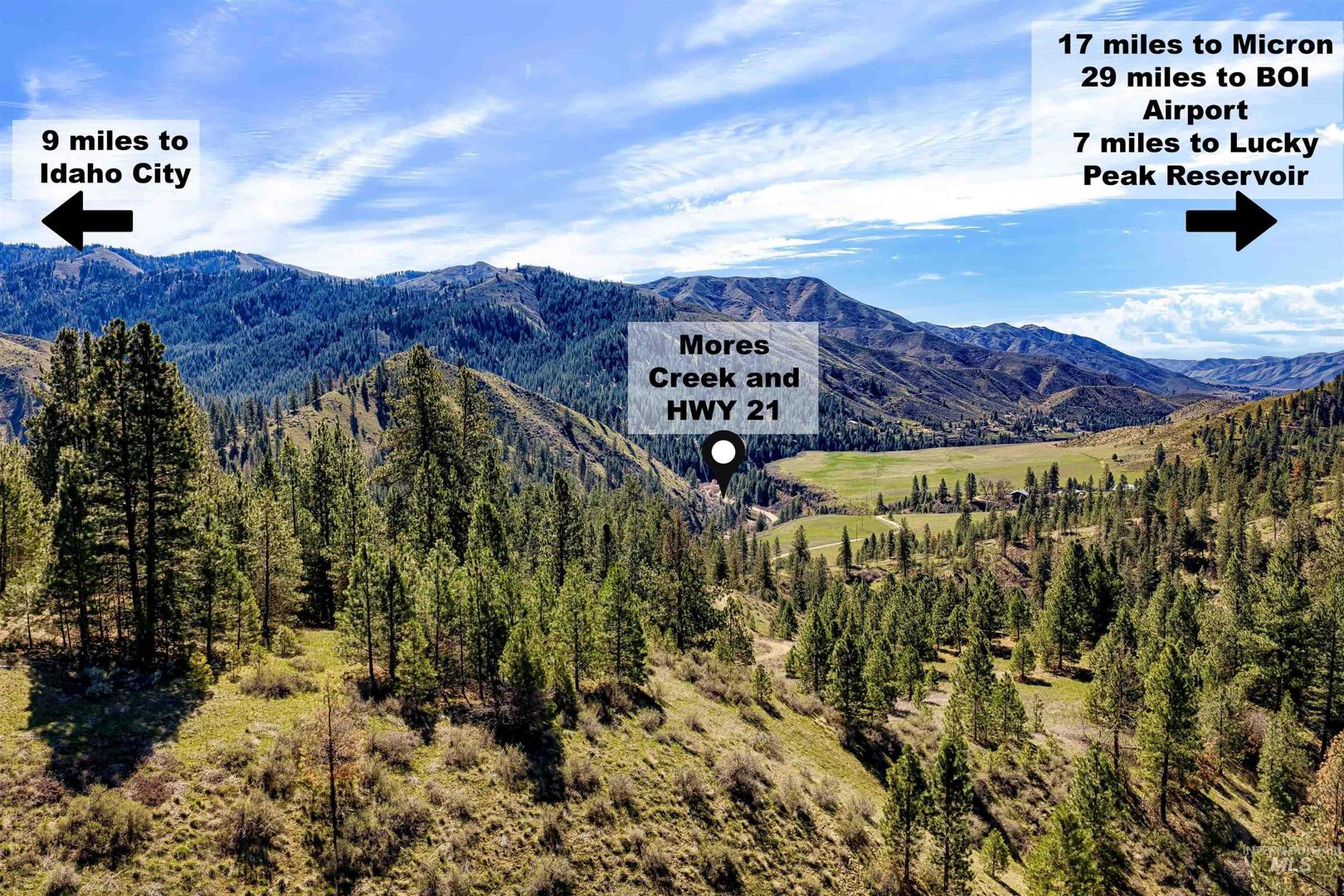 Discover your private Idaho retreat on 45± acres in Boise County. This exceptional property offers a premier building site with stunning 360° views of mountains, timbered hillsides, and expansive skies. Enjoy abundant wildlife right out your door and the peace and privacy of wide-open space. A newly graded road ensures easy access. This parcel borders Forest Service land, providing convenient access to endless outdoor recreation. A rare opportunity to own a truly special piece of Idaho. Located just minutes from Mores Creek and near Lucky Peak for Fishing & Boat recreation, you’re only 9 miles to Idaho City, 17 miles to Micron, and 29 miles to the Boise Airport. LOT LINES IN PHOTOS ARE FOR REFERENCE ONLY & ARE NOT EXACT. BTVAI. ***SHOWN BY APPOINTMENT ONLY***