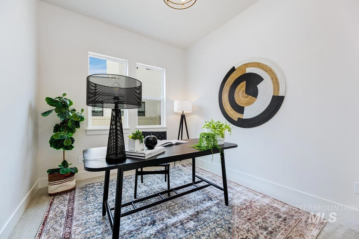 Beautiful Sagewood home with no rear neighbors and open living spaces. Step inside to find a main-level primary suite, private upstairs suite with its own covered balcony, and dedicated office space. Just beyond the entry, the great room is anchored by a platform fireplace and opens to the covered patio through multi-slide glass doors. The kitchen features a large island, wraparound countertops, expanded cabinetry, and a walk-in pantry, while the dining room is lined with windows for abundant natural light. Tucked away on the main level, the primary suite includes a freestanding tub, tiled shower, dual vanities, and a large walk-in closet. Upstairs, a separate suite offers its own bath, closet, storage room, and covered balcony access. Now open, the Dry Creek Ranch Community Clubhouse spans five manicured acres, featuring sports courts, a pool, and a 8,840 sqft. clubhouse w/ state-of-the-art amenities. Located in the Eagle Foothills minutes from the best Idaho has to offer, including local dining, shopping, and outdoor recreation. Photo similar. Home is under construction with a September 2026 completion date.