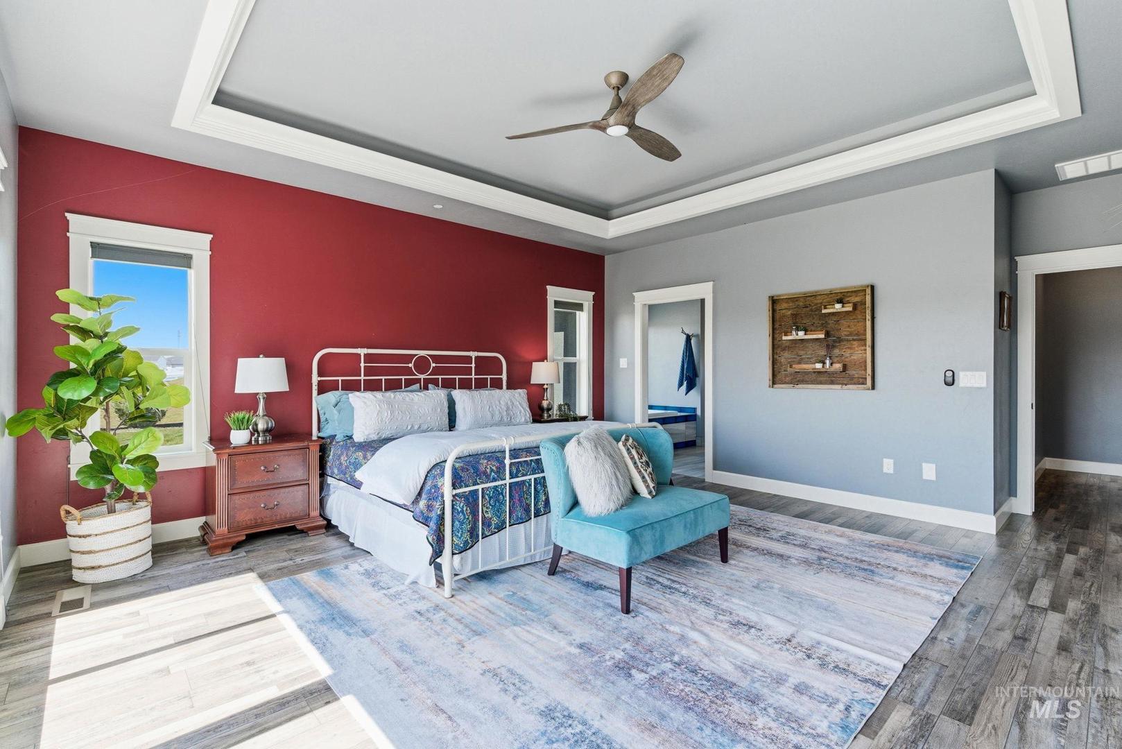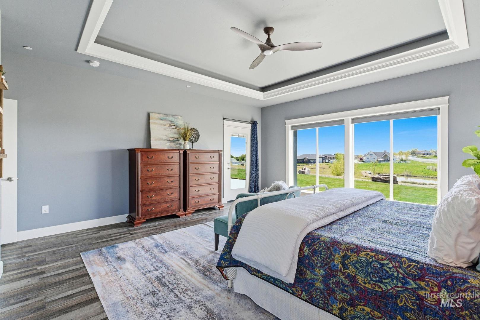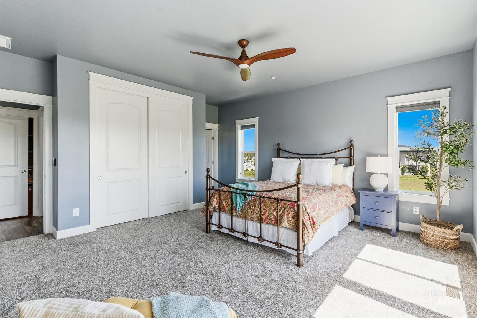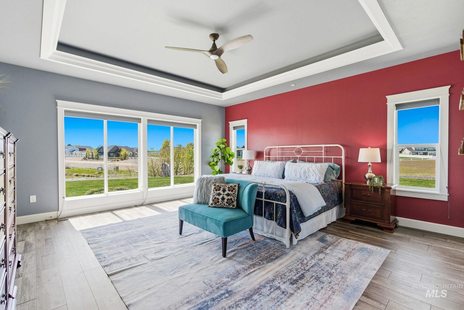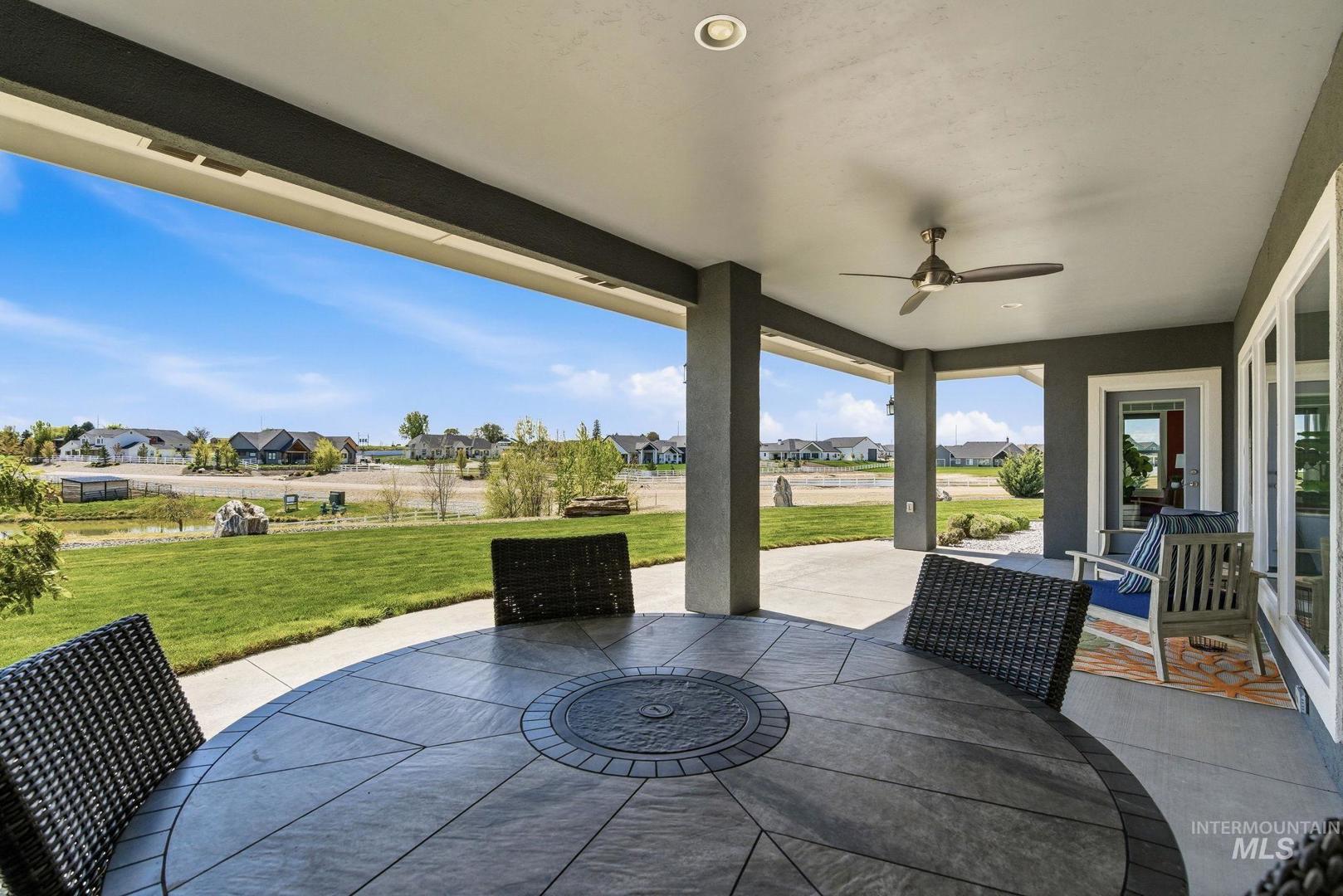 Wake up to wide-open skies and the kind of quiet that`s hard to find. This one-level retreat on nearly 2 acres in Albion Acres puts you outside city limits — no city taxes, no city noise — just 31 neighbors who value space and privacy as much as you do. Bring your dreams! Ample space to build your ideal shop, plant your dream garden, or bring your horse (or horses!) — with plenty of room to roam and create your own private equestrian paradise. There are already 25+ lavender plants established and ready to thrive alongside your future grapevines. Spend mornings with coffee watching the sunrise through a wall of windows that spans the entire back of the home. Every bedroom opens directly to the patio or walkway, so indoor-outdoor living isn`t a feature — it`s a daily habit. Dual masters at opposite ends of the house mean guests or multigenerational family have their own world entirely. The garage handles your trucks, toys, and projects. Pressurized irrigation keeps things green without touching your well. Evenings? Curl up by a fireplace that actually heats the room, not just the mood. The neighborhood paths wind past a pond and creek right on your lot. Close to the freeway when life calls. Far enough away when it doesn`t.