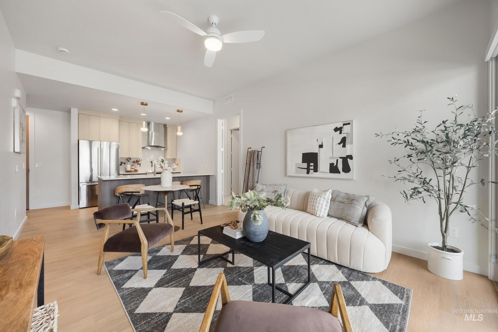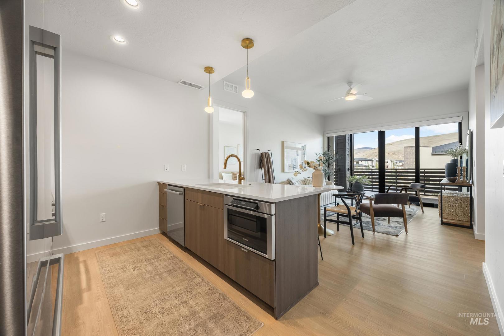 Open Sat 12-3pm & Tues 10am-12pm! Residence 201 at The Murray – Step into effortless living in this stunning 2-bedroom, 2-bath corner condo in the heart of Harris Ranch. Nestled against nature’s best trails & sweeping mountain vistas, this brand-new home delivers the perfect blend of modern design, privacy & low-maintenance luxury. Positioned on a prime corner of the sleek Murray building, Residence 201 features expansive windows that flood the space w/natural light & frame breathtaking mountain views. A stylish fiberglass sliding glass door opens to your private balcony — the ideal spot for morning coffee or evening sunsets. Inside, the thoughtful split-bedroom layout offers privacy & flexibility, while premium finishes & designer details elevate every corner. The bright, open living spaces flow seamlessly, creating a warm yet sophisticated atmosphere that feels like home the moment you walk in. Beyond your front door, enjoy resort-style amenities designed for an active, carefree lifestyle: a sparkling pool, expansive rooftop deck w/panoramic views, a modern clubhouse, private covered parking, dedicated bike storage & personal indoor storage. Whether you’re a busy professional, first-time buyer, empty-nester, or seeking a low-maintenance second home, Residence 201 at The Murray invites you to simplify your life & maximize your time-surrounded by beauty, community, and convenience.