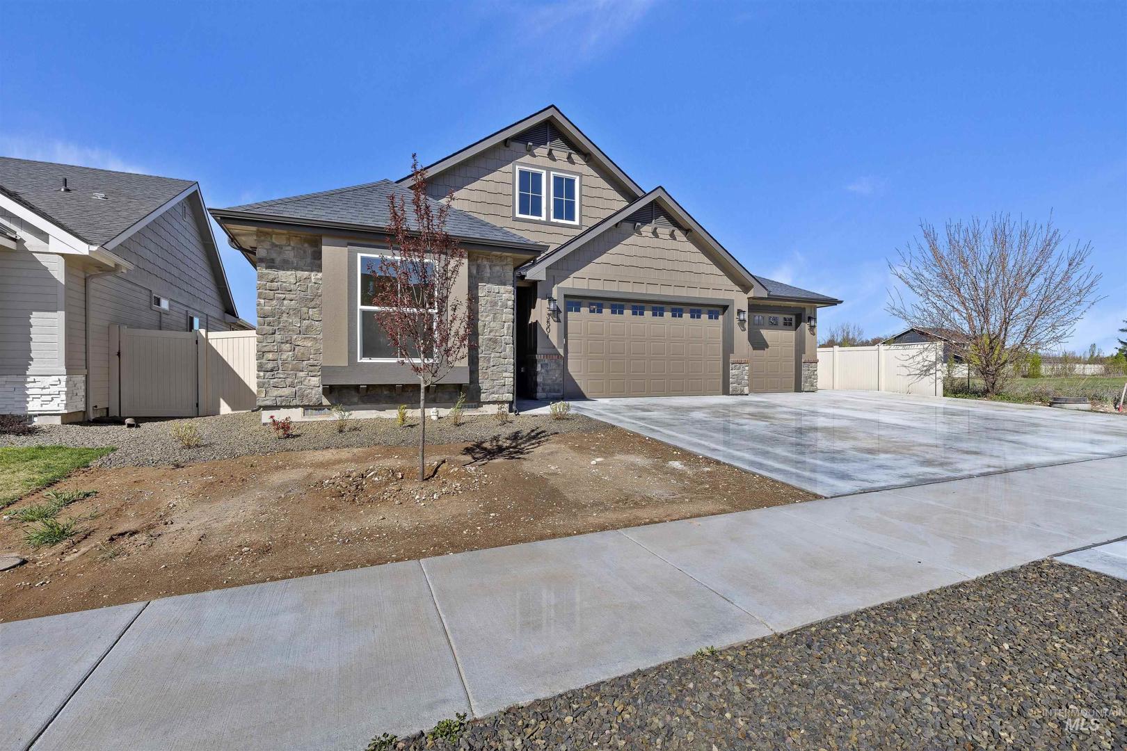 Beautiful new custom 3 bed,3 bath plan w/ office. 3 Car insulated garage PLUS RV PARKING PAD on NORTH SIDE OF HOME. Captivated by extensive woodwork, LVP Flooring, custom stained cabinets, gas cook top, quartz countertops. Master suite features full tile shower & tub. Bonus has pocket door for privacy and an ensuite bath / possible 4th bedroom. Pocket Den. 95% eff. furnace- dual zone, gas fireplace, undermount sinks, covered patio. Full landscape & fence. Located in SW Boise w/ a great centralized location. BTVA. Builder/Agent. Photos with staging are virtual staged. Sod to be installed in the next 2 weeks