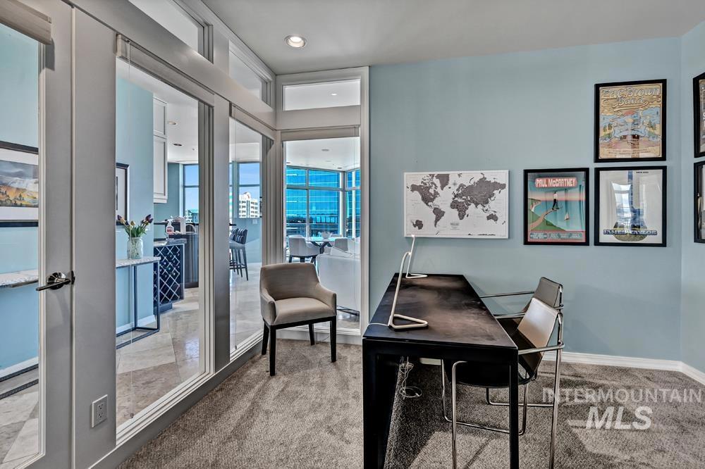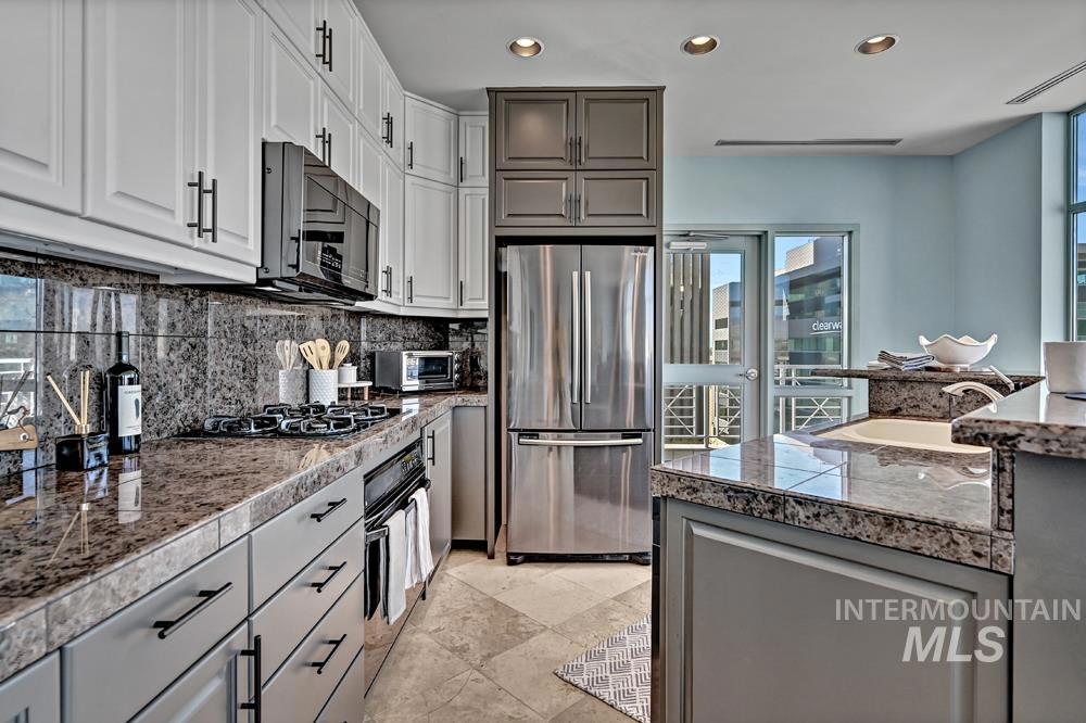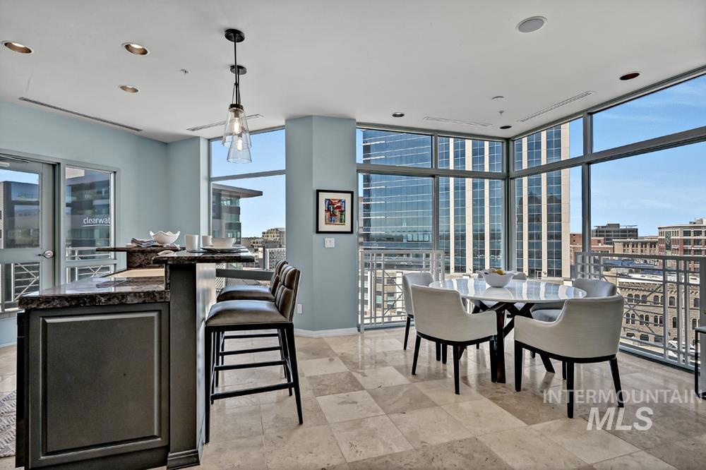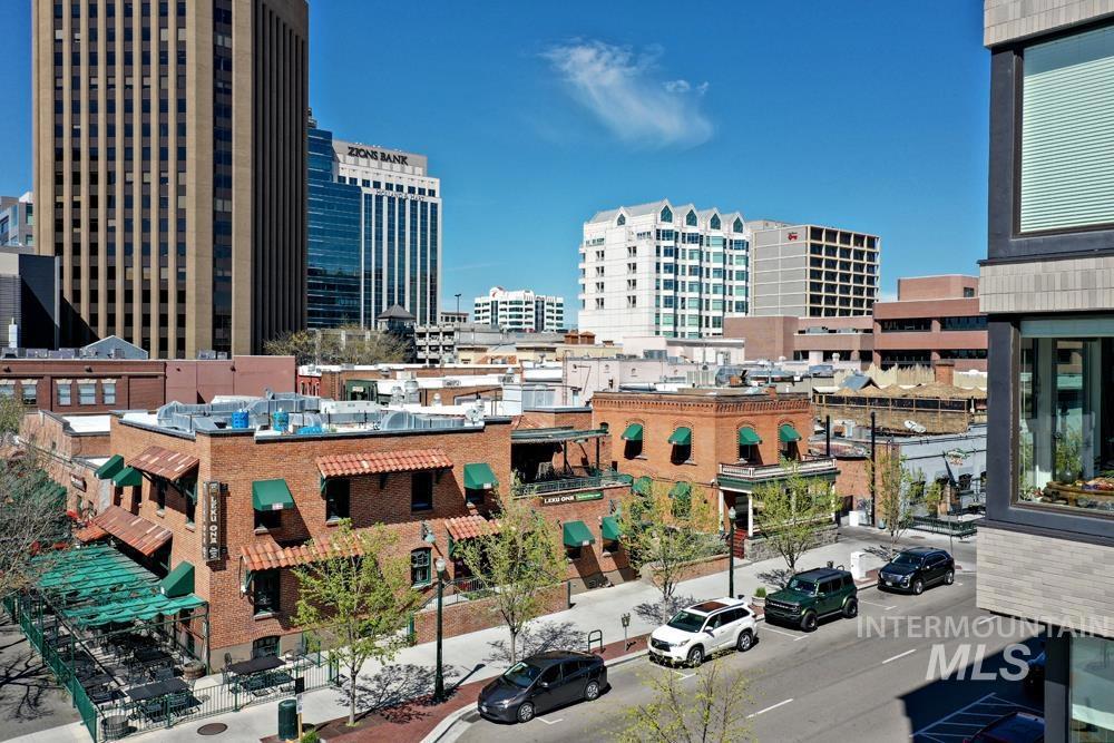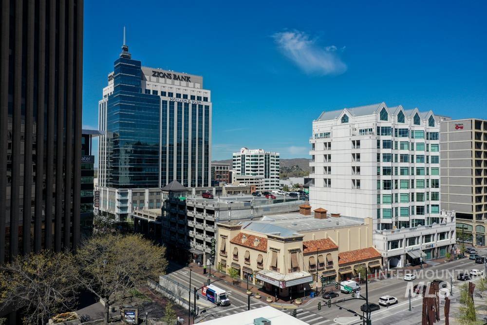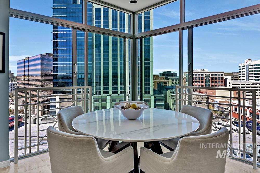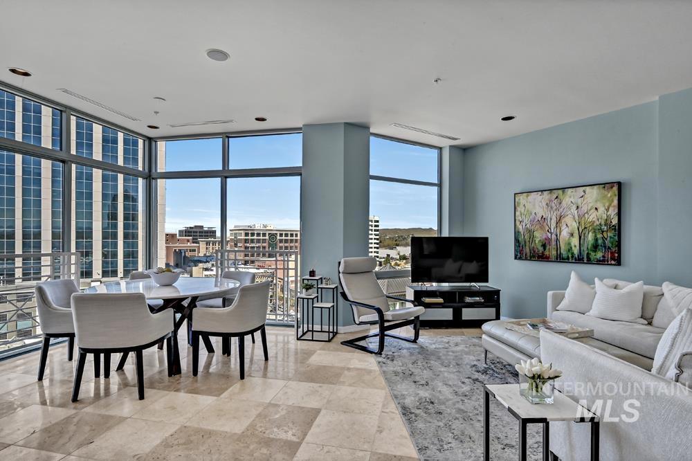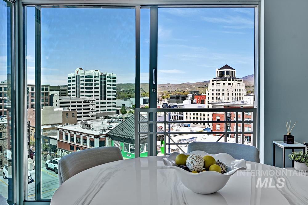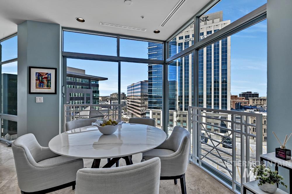 Perched above the city in one of downtown Boise’s most sought-after addresses, this elegant Tower Plaza condominium offers a refined urban lifestyle with captivating skyline views and exceptional natural light. Positioned on the 7th floor, the residence captures the energy of downtown while providing a peaceful sense of retreat.The spacious great room is framed by expansive windows and flows seamlessly to two private balconies, creating an effortless indoor-outdoor connection. A well-appointed kitchen opens to the dining and living areas, making the layout ideal for daily living and stylish entertaining. The generous primary suite features its own private balcony, a beautifully finished ensuite bath, and a serene atmosphere. Perfectly positioned near Boise’s celebrated 8th Street corridor, this address places fine dining, coffee houses, boutiques, and downtown conveniences just steps from your door. Elegant, livable, and distinctly urban, this residence offers a polished downtown experience in one of Boise’s premier condominium buildings.