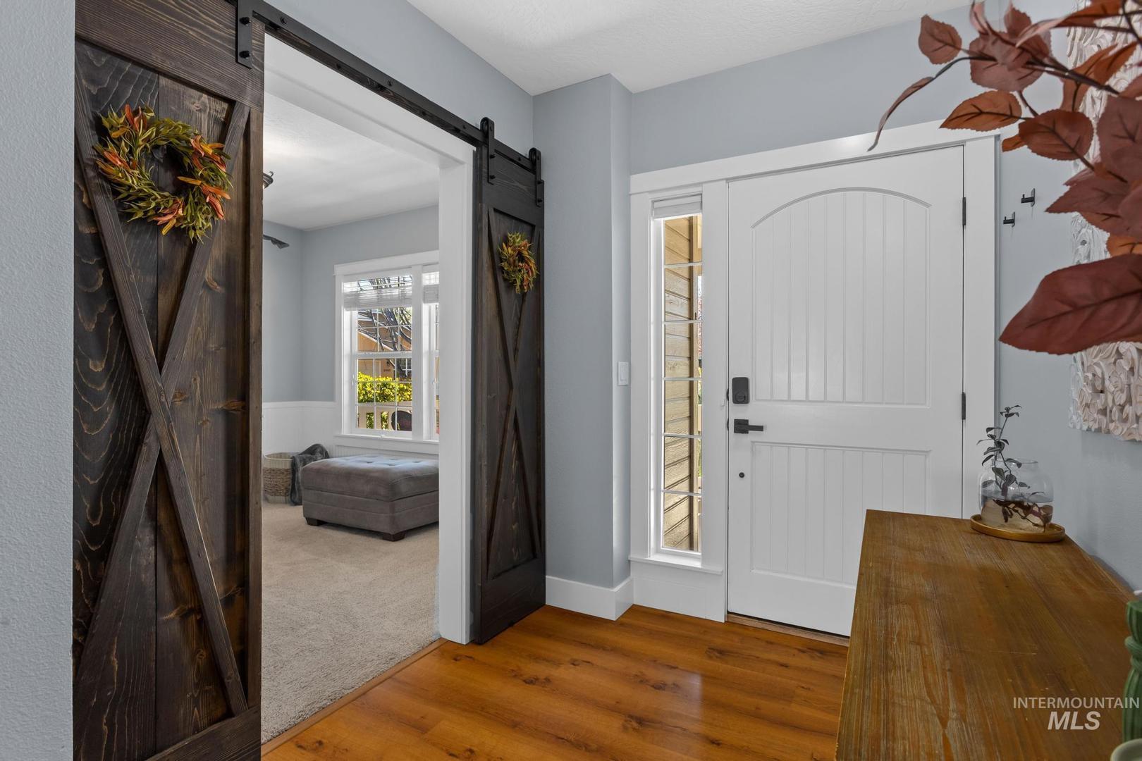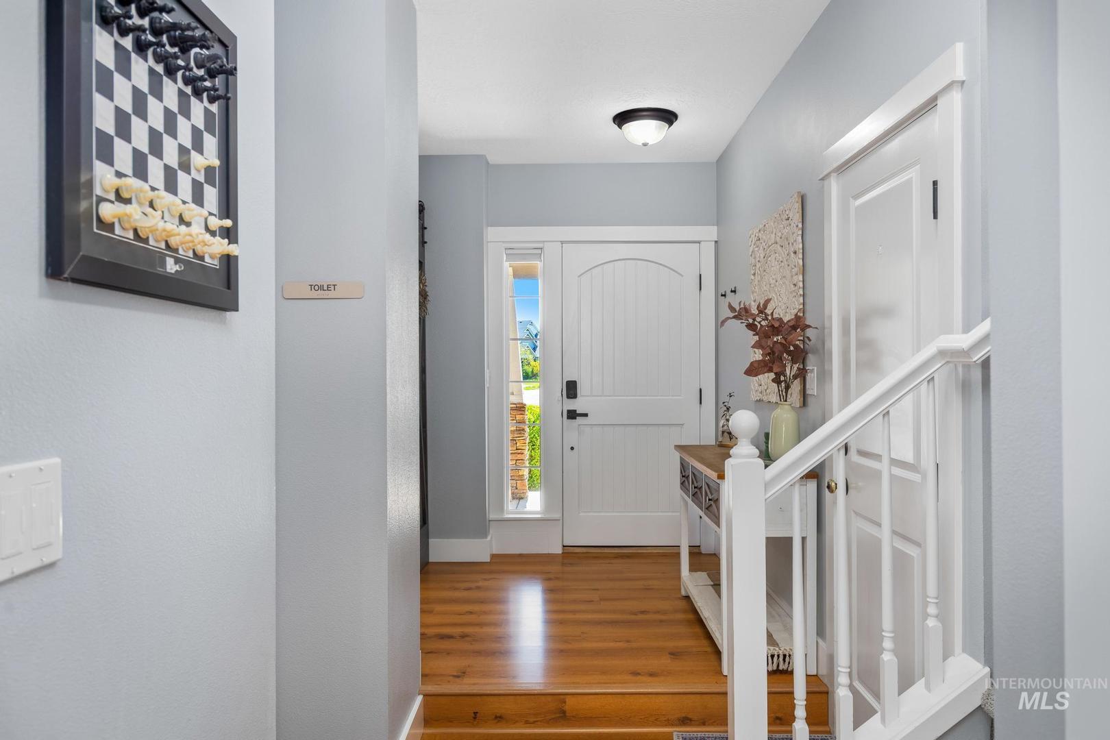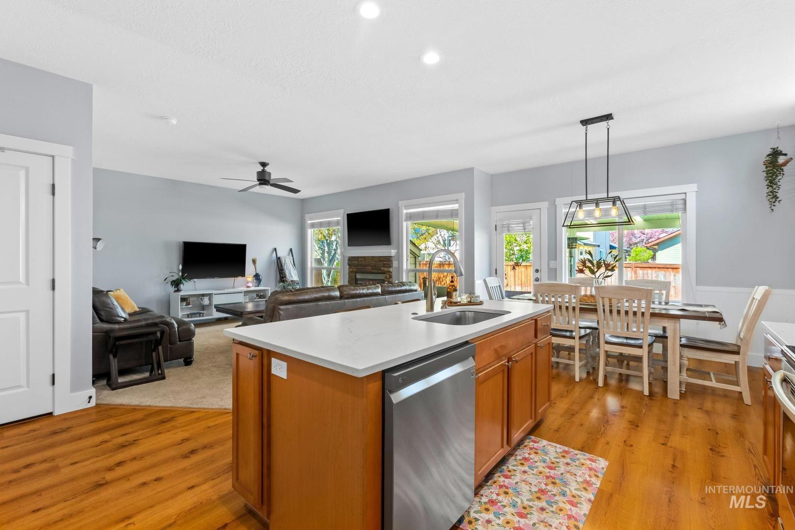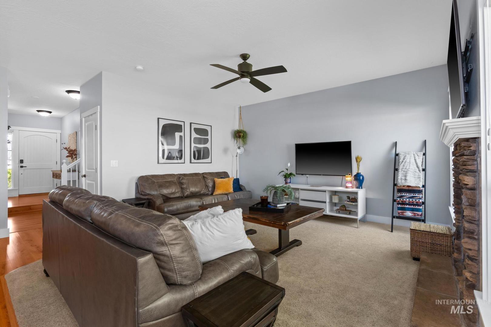 Assumable VA loan of 3.7/8! Open house Sat and Sunday 12-2pm! Situated on a spacious corner lot in the desirable Hazelwood subdivision, this well maintained home offers the perfect blend of location, functionality, and comfort just 20 minutes from downtown Boise and within walking distance to highly rated schools. The updated kitchen features quartz countertops, stainless steel appliances, a large center island, and abundant natural light, creating an ideal space for both everyday living and entertaining. Step outside to a covered patio and enjoy the fully fenced backyard with plenty of room to relax, garden, or host gatherings. The oversized three car tandem garage provides ample space for vehicles, storage, and recreational gear, while the dedicated concrete side pad offers convenient parking for a boat or trailer. Upstairs, the spacious primary suite includes dual vanities, a soaking tub, and separate shower, with two additional bedrooms nearby, while a fourth bedroom or flex space on the main level adds versatility for guests, office, or playroom. Additional updates include a newer HVAC system installed in 2021, providing peace of mind and energy efficiency. This home has been meticulously cared for and presents an incredible opportunity in one of the area’s most convenient locations.
