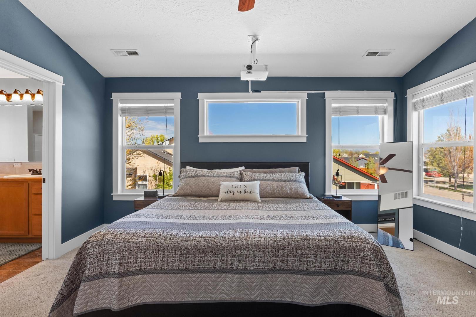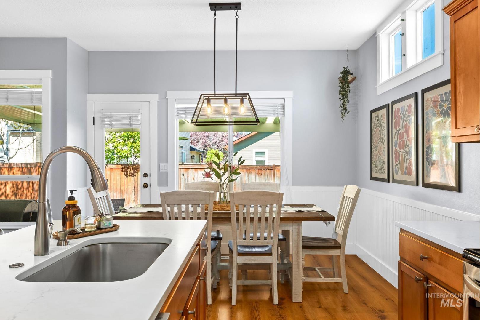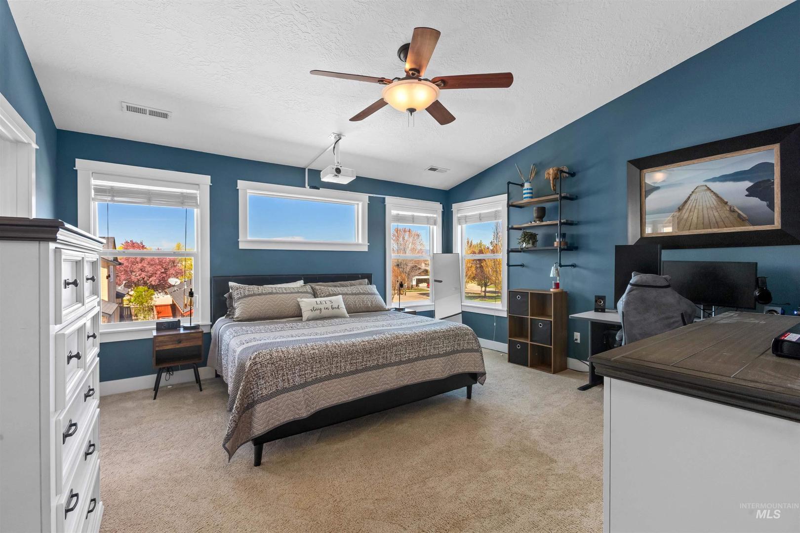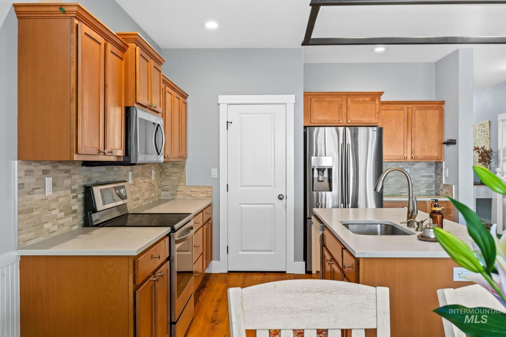 Assumable VA loan of 3.7/8! Open house Sat and Sunday 12-2pm! Situated on a spacious corner lot in the desirable Hazelwood subdivision, this well maintained home offers the perfect blend of location, functionality, and comfort just 20 minutes from downtown Boise and within walking distance to highly rated schools. The updated kitchen features quartz countertops, stainless steel appliances, a large center island, and abundant natural light, creating an ideal space for both everyday living and entertaining. Step outside to a covered patio and enjoy the fully fenced backyard with plenty of room to relax, garden, or host gatherings. The oversized three car tandem garage provides ample space for vehicles, storage, and recreational gear, while the dedicated concrete side pad offers convenient parking for a boat or trailer. Upstairs, the spacious primary suite includes dual vanities, a soaking tub, and separate shower, with two additional bedrooms nearby, while a fourth bedroom or flex space on the main level adds versatility for guests, office, or playroom. Additional updates include a newer HVAC system installed in 2021, providing peace of mind and energy efficiency. This home has been meticulously cared for and presents an incredible opportunity in one of the area’s most convenient locations.
