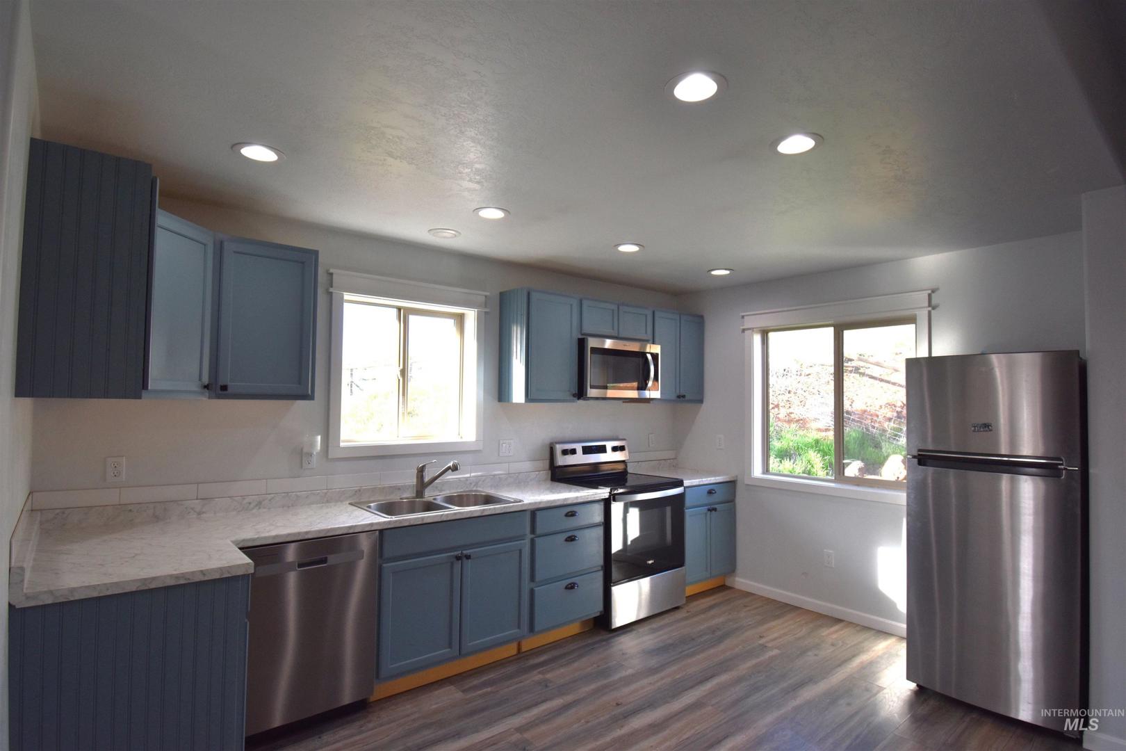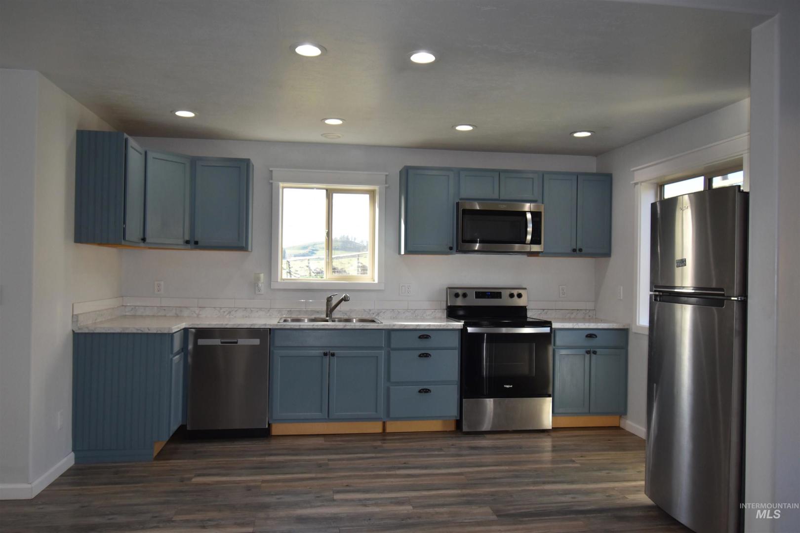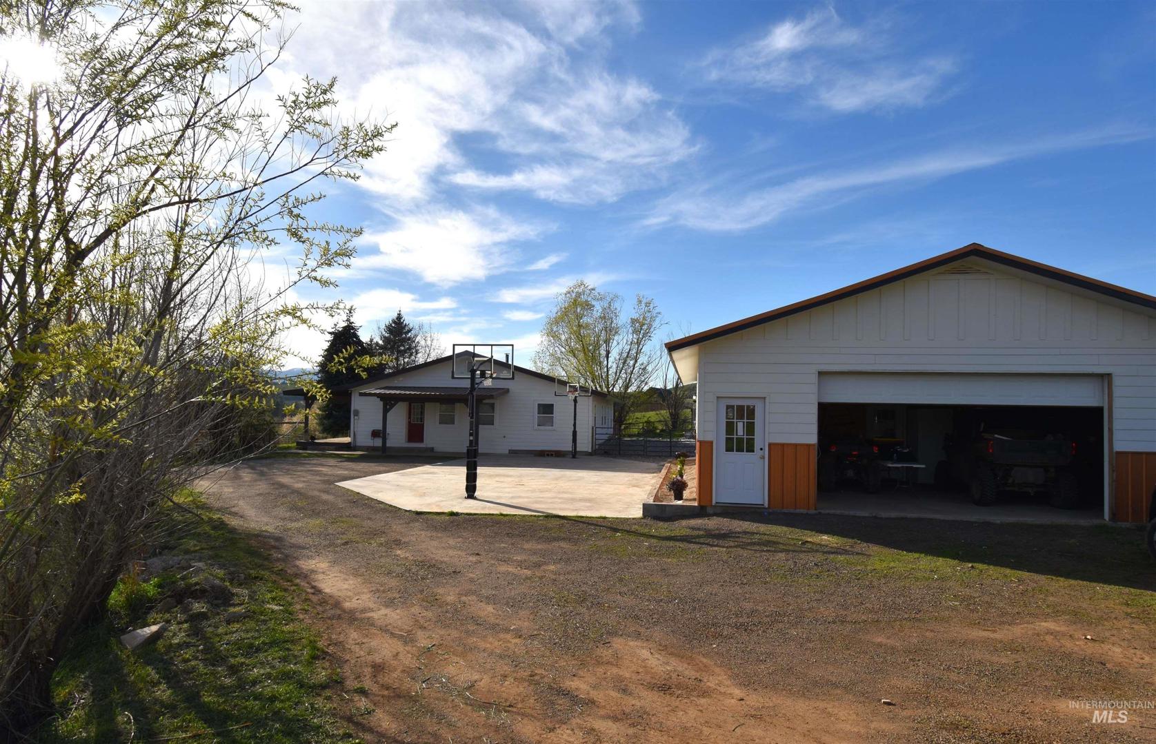 This fully renovated home, nestled on 6.02 acres that backs up to BLM land, boasts three bedrooms and two bathrooms, complemented by an open floor plan that seamlessly connects the living, dining, and kitchen areas. Step outside onto the covered deck and be captivated by the stunning views of the Idaho mountains—a perfect spot for morning coffee or evening relaxation. In addition to the main house, this property features a charming accessory dwelling unit (ADU) with two bedrooms, a full bath, and an open kitchen and living room. Whether you use it as a guest house, home office, or rental opportunity, this space provides flexibility and convenience. Attached to this unit is a spacious two-car garage. Embrace the tranquility and beauty of rural Idaho living while enjoying the modern comforts of this exceptional property. Don`t miss out on the chance to make this serene sanctuary your own.