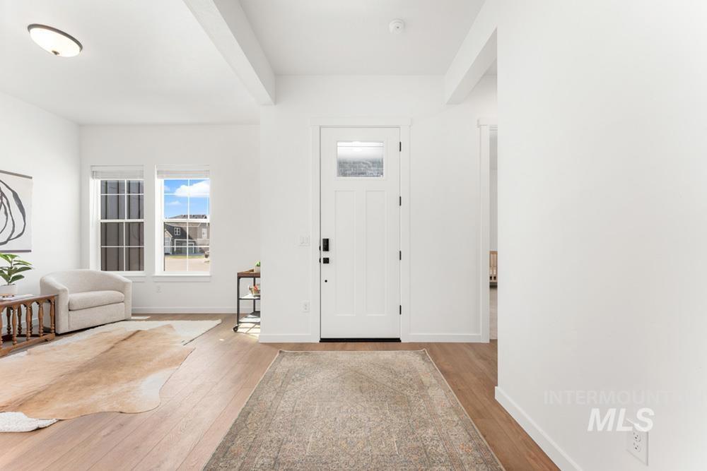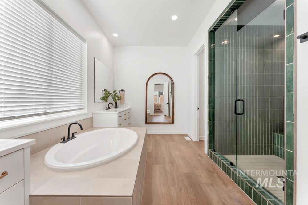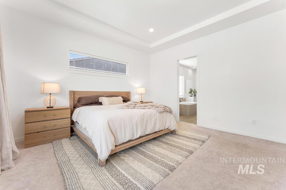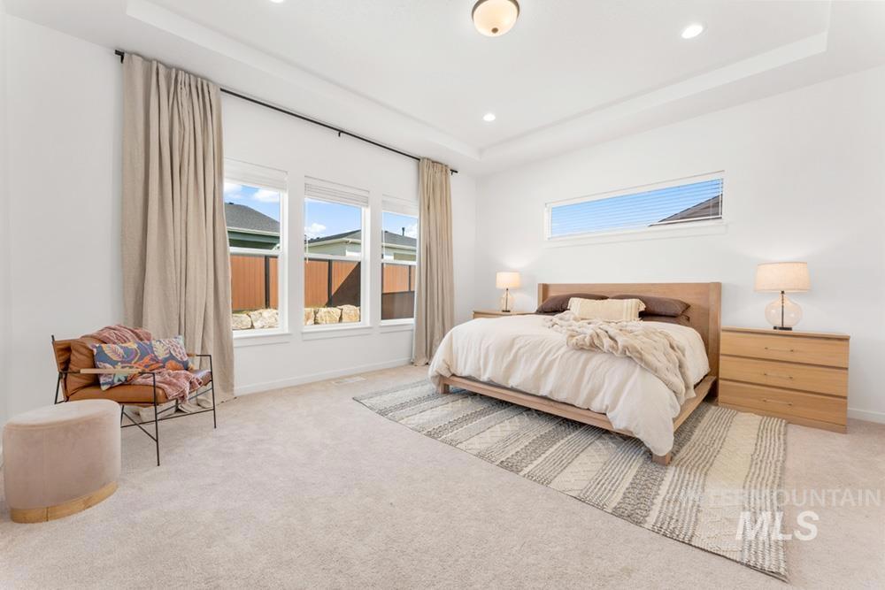 A stylish & bright nearly new home with upgraded finishes, fixtures & appliances! Set at the end of a cul-de-sac, this single-level home offers the perks of new construction with a level of finish that goes beyond builder grade. Built by Toll Brothers as part of their luxury Riverbend collection, the home showcases thoughtful upgrades & intentional design. Tall ceilings & wide plank LVP flooring create a bright, open feel. The kitchen anchors the home with quartz countertops, warm brass hardware, shaker cabinetry & a full suite of stainless steel appliances, including double ovens, gas cooktop, microwave drawer & Café refrigerator. The great room is centered around a gas fireplace. Triple-stacking sliders open to the spacious backyard. The primary suite is privately positioned, offering a sophisticated ensuite bath with dual vanities, soaking tub, & frameless walk-in shower. Additional bedrooms all have attached baths, 2 of which are ensuite. Set on a .37 acre lot, the backyard offers space that is increasingly hard to find in newer construction, with room to add a pool, outdoor kitchen, or extended entertaining areas. Split 3-car garage provides ample space for cars, tools, & gear. Located within a fabulous community with a neighborhood pool, park, playground, & pickleball courts, the home also benefits from a central location with convenient access to both Star and Eagle.