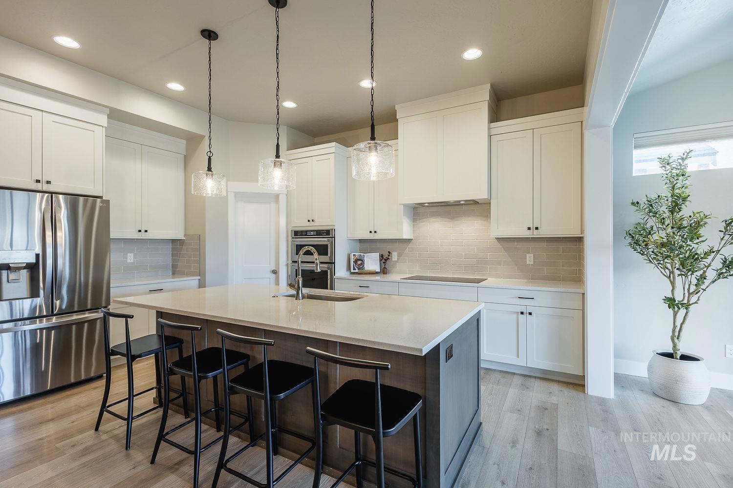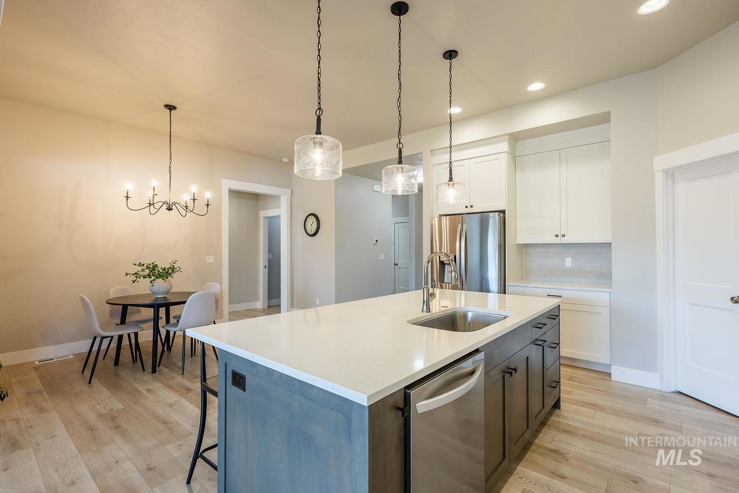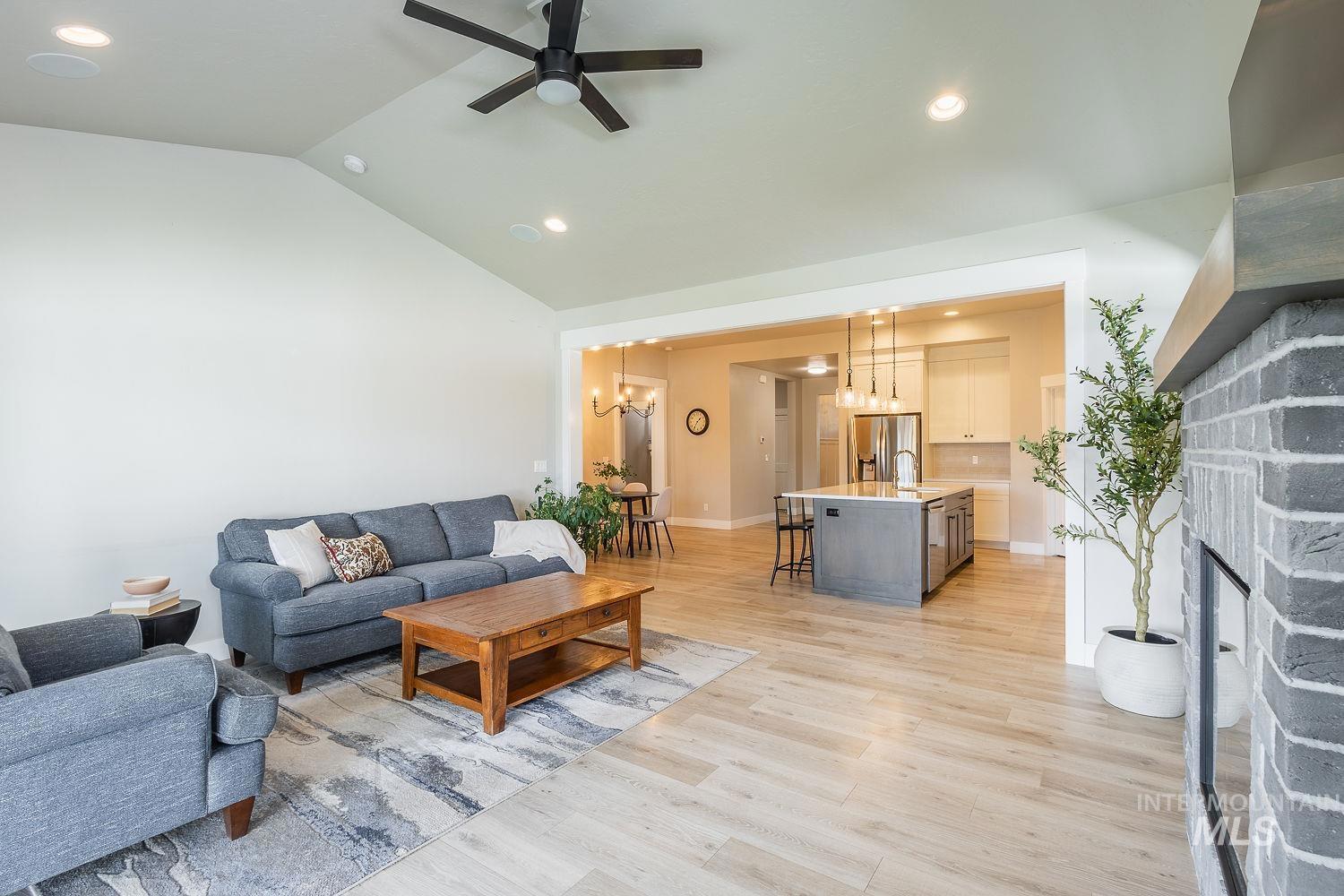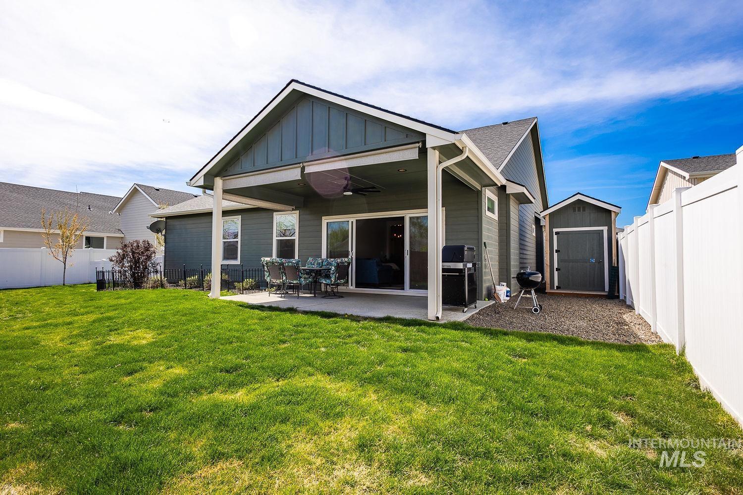 This beautifully crafted 4-bedroom, 2.5-bath home combines modern design with thoughtful features that set it apart. The open-concept layout creates a seamless flow perfect for entertaining, while upgraded finishes throughout reflect quality at every turn. The master suite is a true retreat, complete with a soaking tub and a large walk-in closet. Pet owners will love the custom-built dog kennel and outdoor enthusiasts will appreciate the impressive 40` RV bay. A covered patio rounds out the outdoor space, ideal for relaxing or hosting year-round. Minutes away from Lake Lowell, Indian Creek Plaza, and Sunnyslope wineries. This is Idaho living at its finest, wrapped in stunning curb appeal and ready for its next chapter. Come see it for yourself.