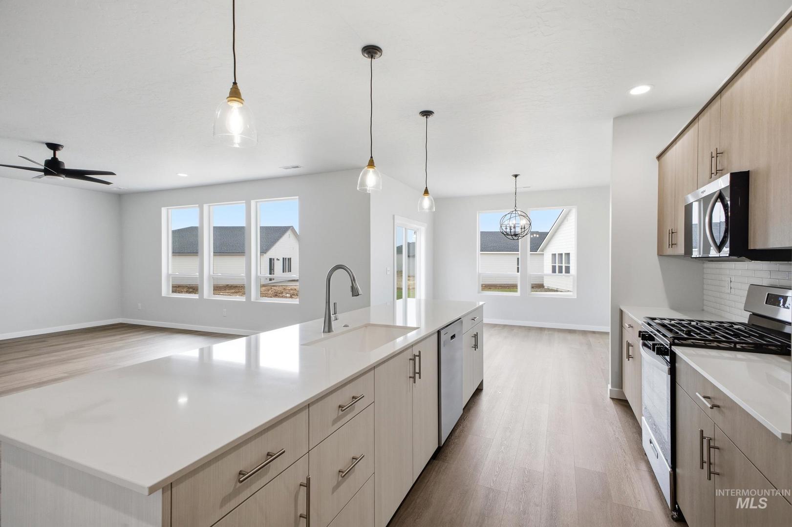 Get $15K YOUR WAY! Ask a Sales Specialist for details. Feel enriched in your brand new home located in Meridian, Idaho! The Pasadena 2351 delivers the single level, split bedroom design you have been searching for, paired with generous square footage and a layout that feels both expansive and inviting. An impressive ten foot entryway sets the tone as you move toward the rear of the home, where an open concept living area awaits. The kitchen boasts upgraded finishes, including stainless steel appliances, a gas range, and stylish solid surface countertops. The primary suite creates a serene retreat with an enviable closet and an en suite bath featuring a relaxing soaker tub. Two additional bedrooms are thoughtfully positioned apart from the primary suite to enhance privacy and comfort. With its wide layout, refined finishes, and a design that balances ease with elegance, the Pasadena 2351 is a home that elevates everyday living. Photos are of the actual home!