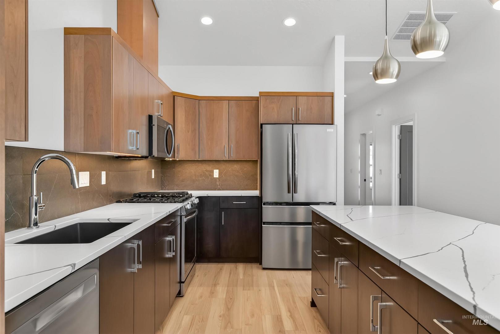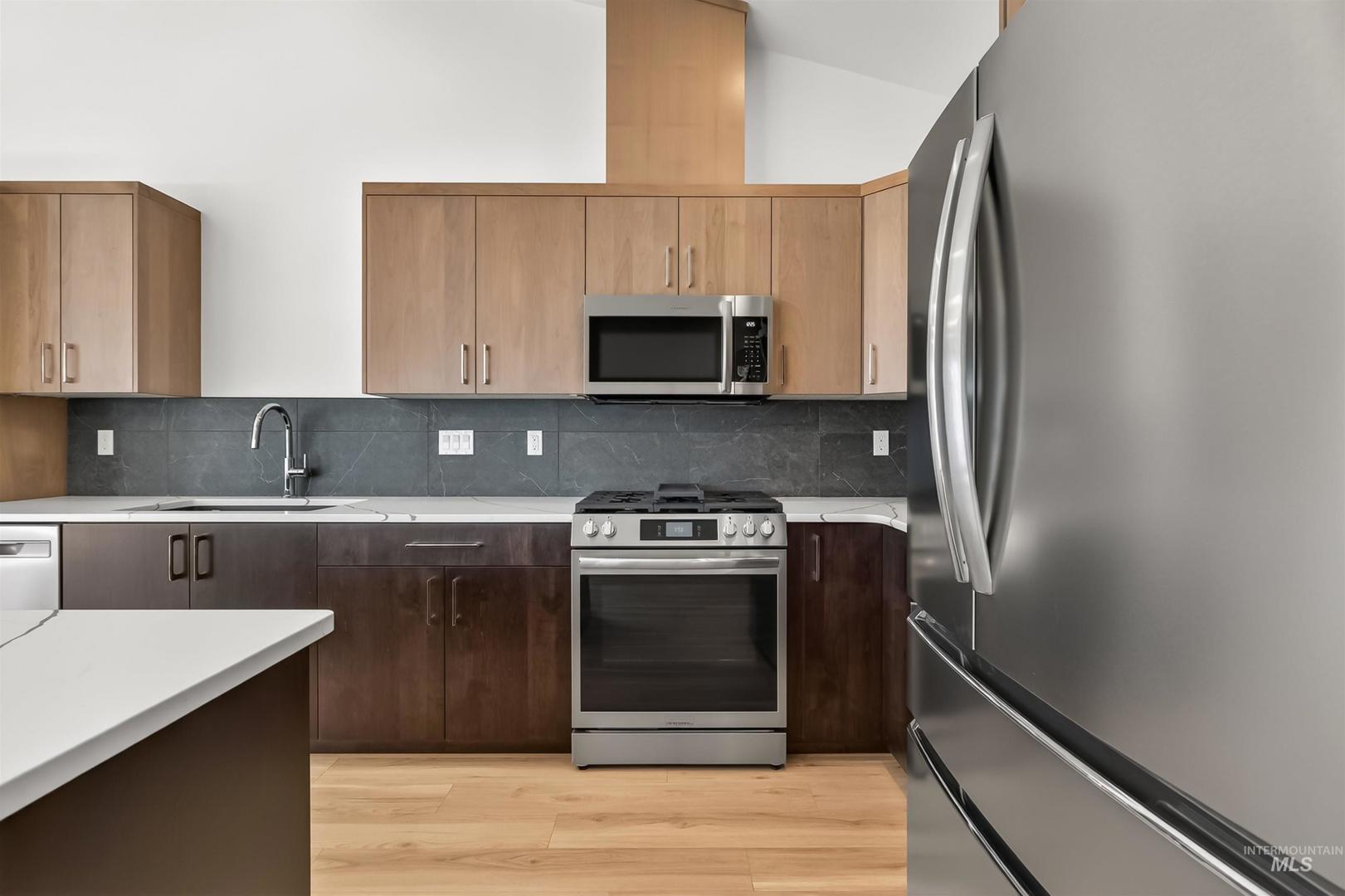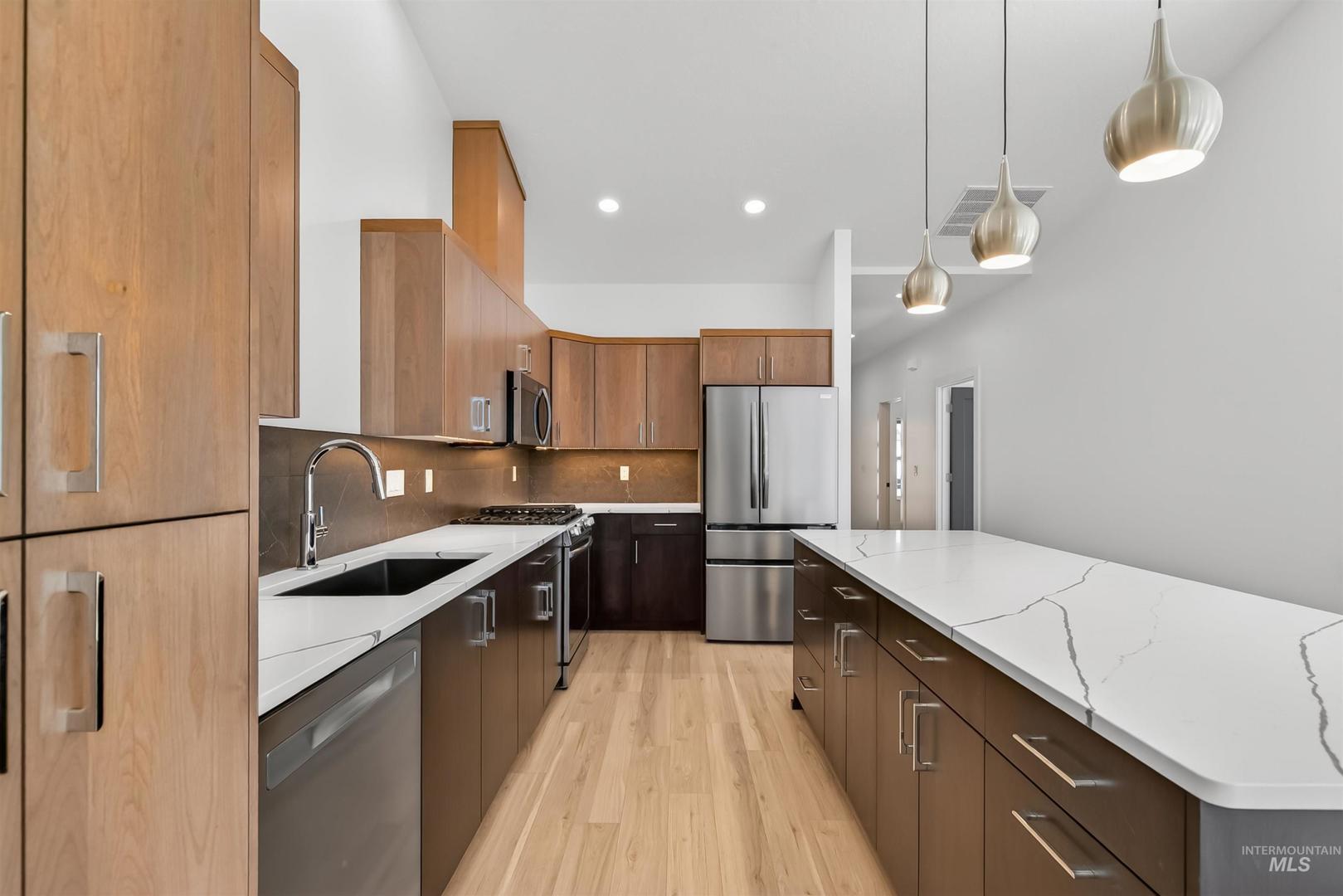 Modern, refined, and intentionally designed—this 3 bed, 2 bath townhouse delivers high-end living without compromise. From the moment you walk in, the attention to detail stands out: a sleek kitchen with a large island, chrome finishes, and custom cabinetry that flows seamlessly into the open-concept living space. Every finish was thoughtfully selected to feel elevated yet functional, creating a home that lives as well as it looks. No HOA dues and intentionally designed for privacy, this isn’t your typical townhouse—it lives like a standalone home with only a shared wall. With a garage and quality craftsmanship throughout, this one stands out in all the right ways.