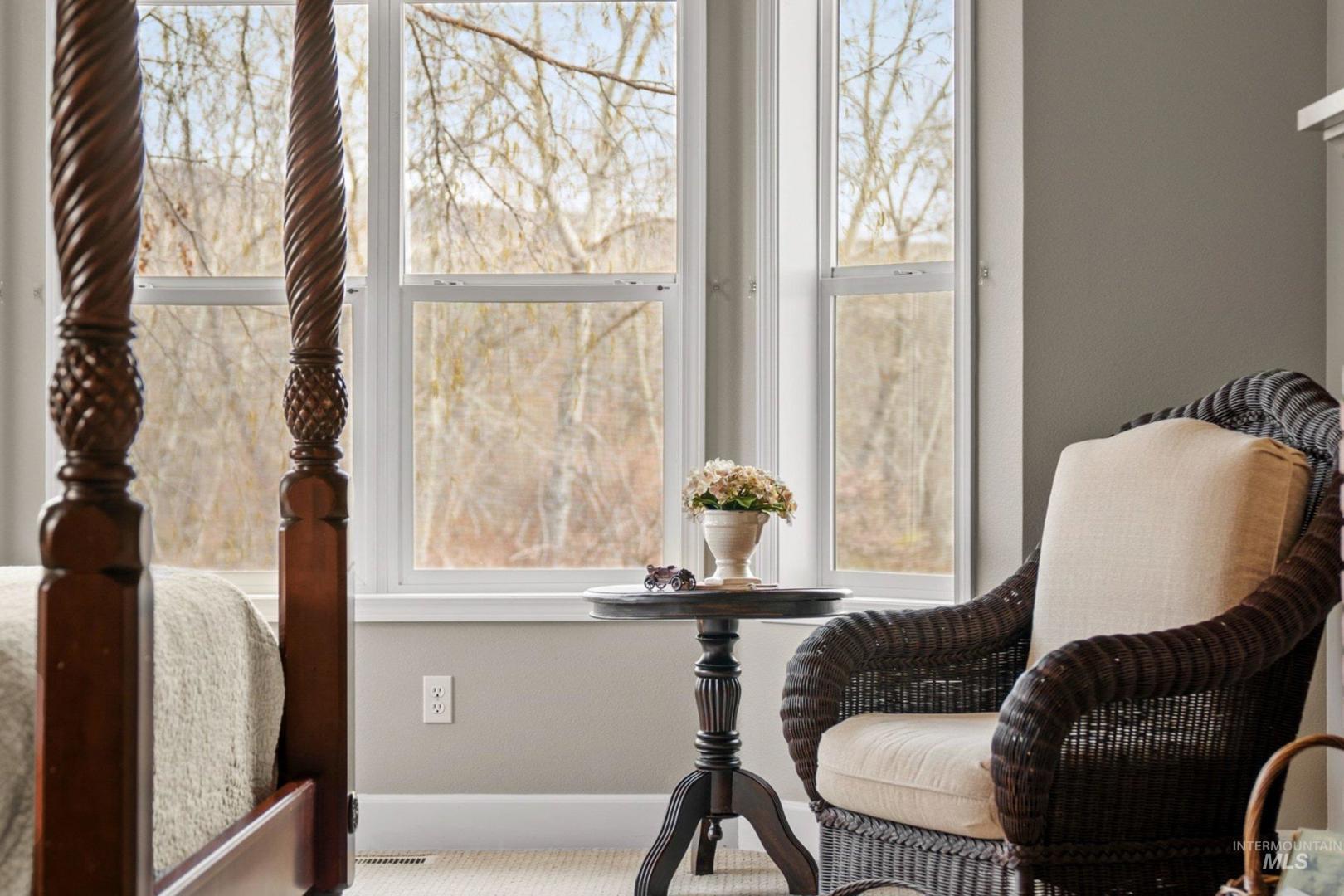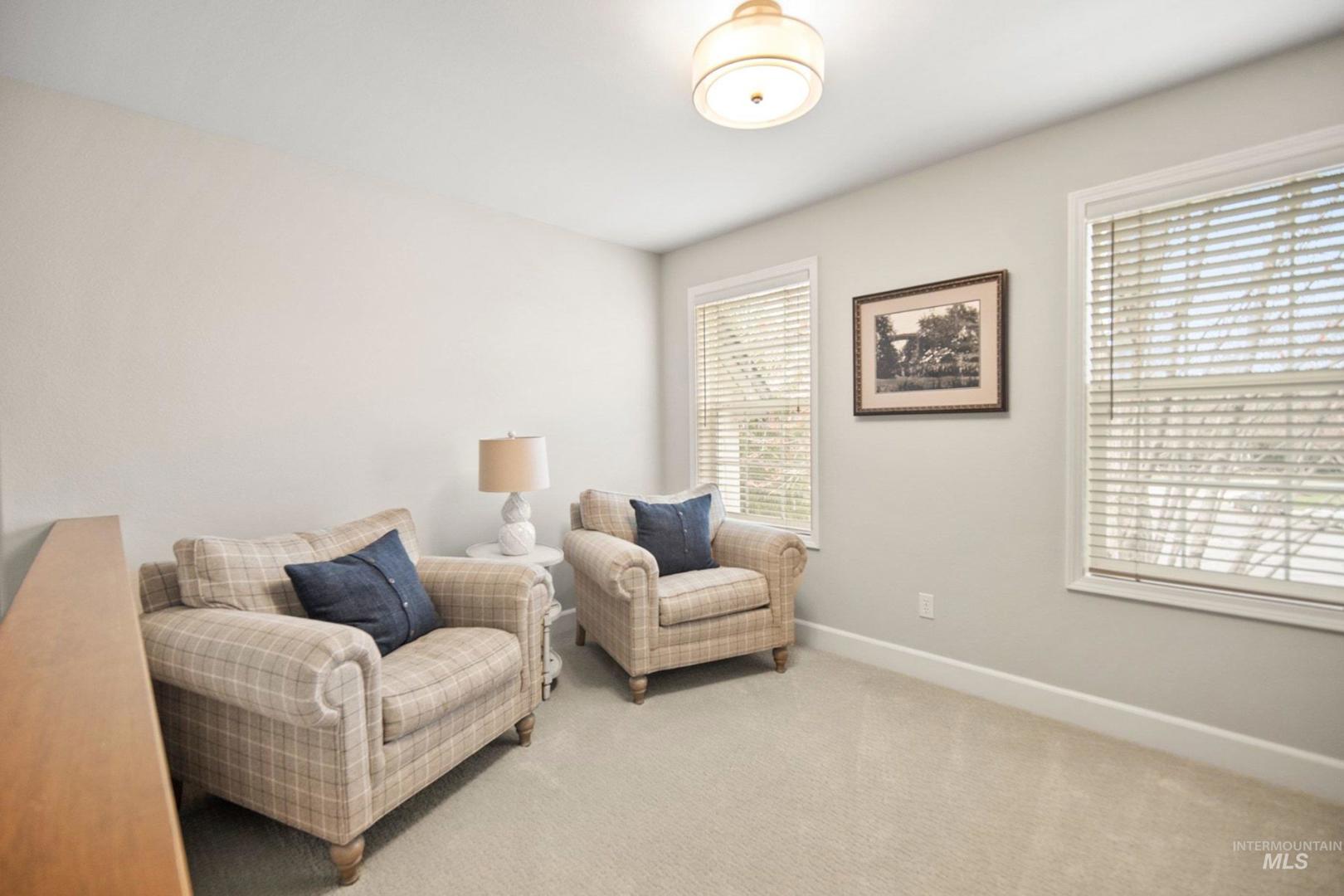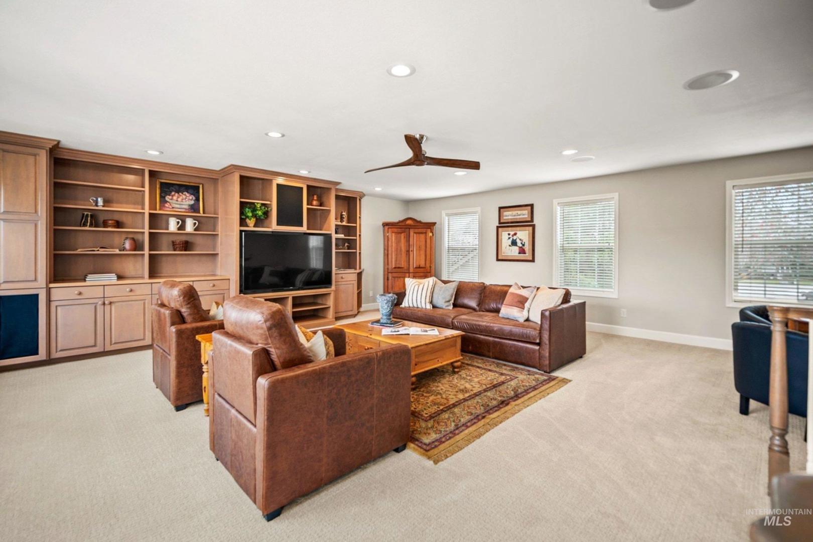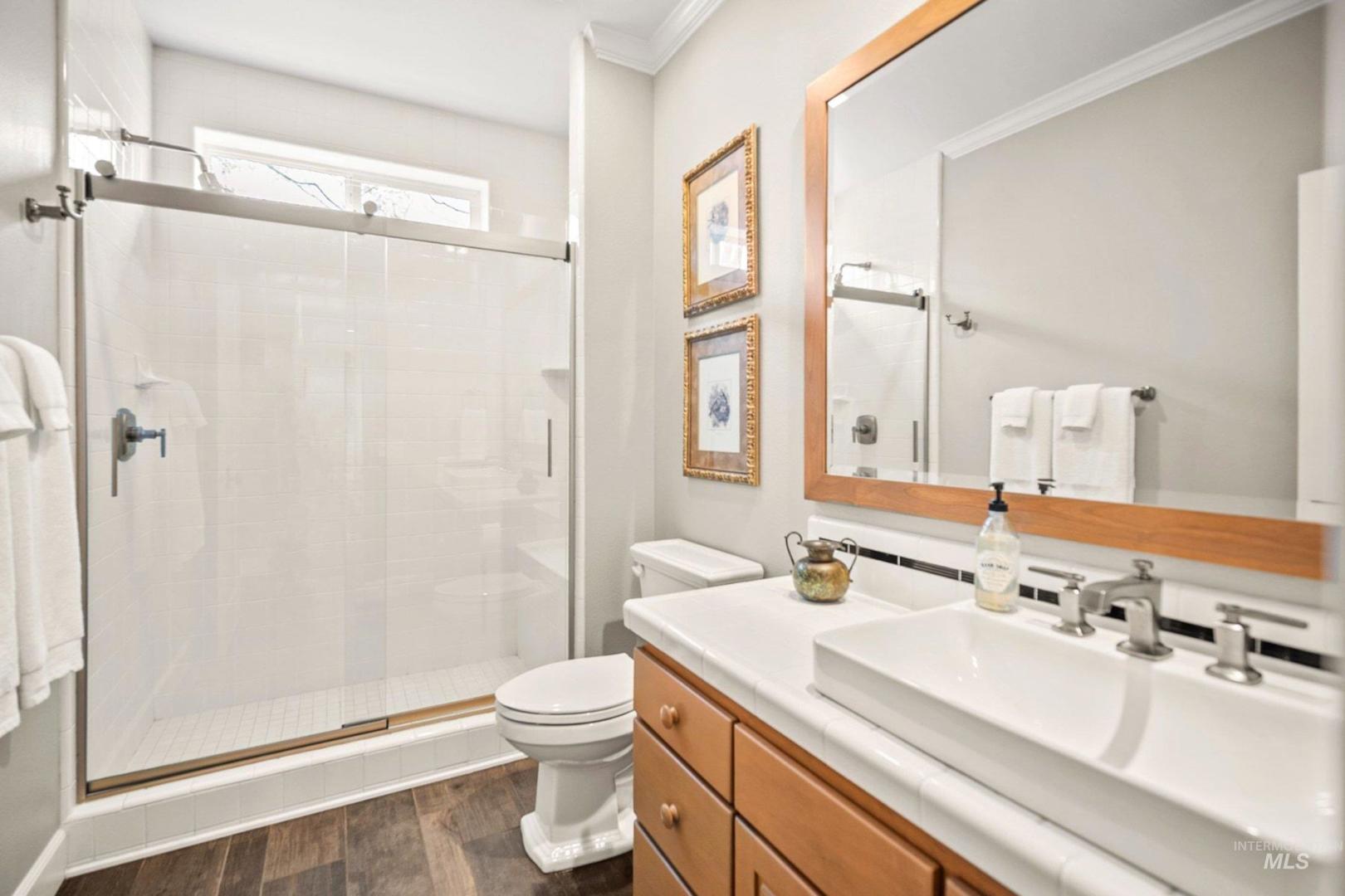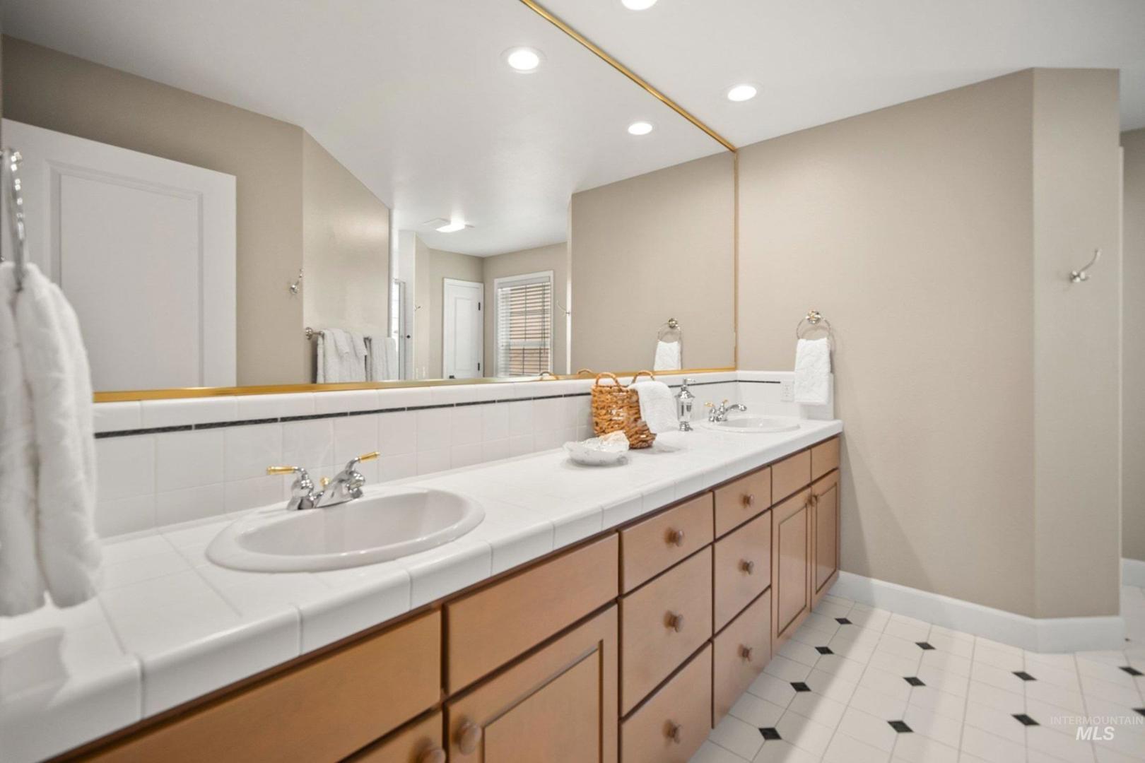 Tucked along a protected wildlife area along the Boise River, this Wood Duck Island home offers privacy, natural beauty, and an exceptional location. The backyard features a saltwater pool and spa, fire pit, tranquil creek, and direct access to the Boise River and Greenbelt. Located on a quiet cul de sac between Barber Park and Bown Crossing, the home provides easy access to recreation, dining, and everyday amenities. Inside, the light filled living room welcomes you with mountain views, a grand staircase, and open living and dining areas. The main level includes a private office and guest bedroom with adjacent full bath. The renovated kitchen features JennAir appliances, central island, quartz countertops, Italian tile flooring, and a pro style convection oven. Upstairs, the primary suite offers mountain, river and tree lined views, sitting area, and wood burning fireplace. The en suite bath includes an extended double vanity and walk in shower. 3 car tandem garage, fully fenced yard, and multiple outdoor living spaces complete this beautifully maintained home near downtown Boise and top area schools. Please see Docs for detailed amenities/updates list and floor plans. Matterport in Video link.