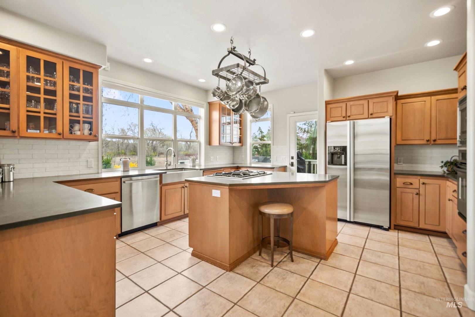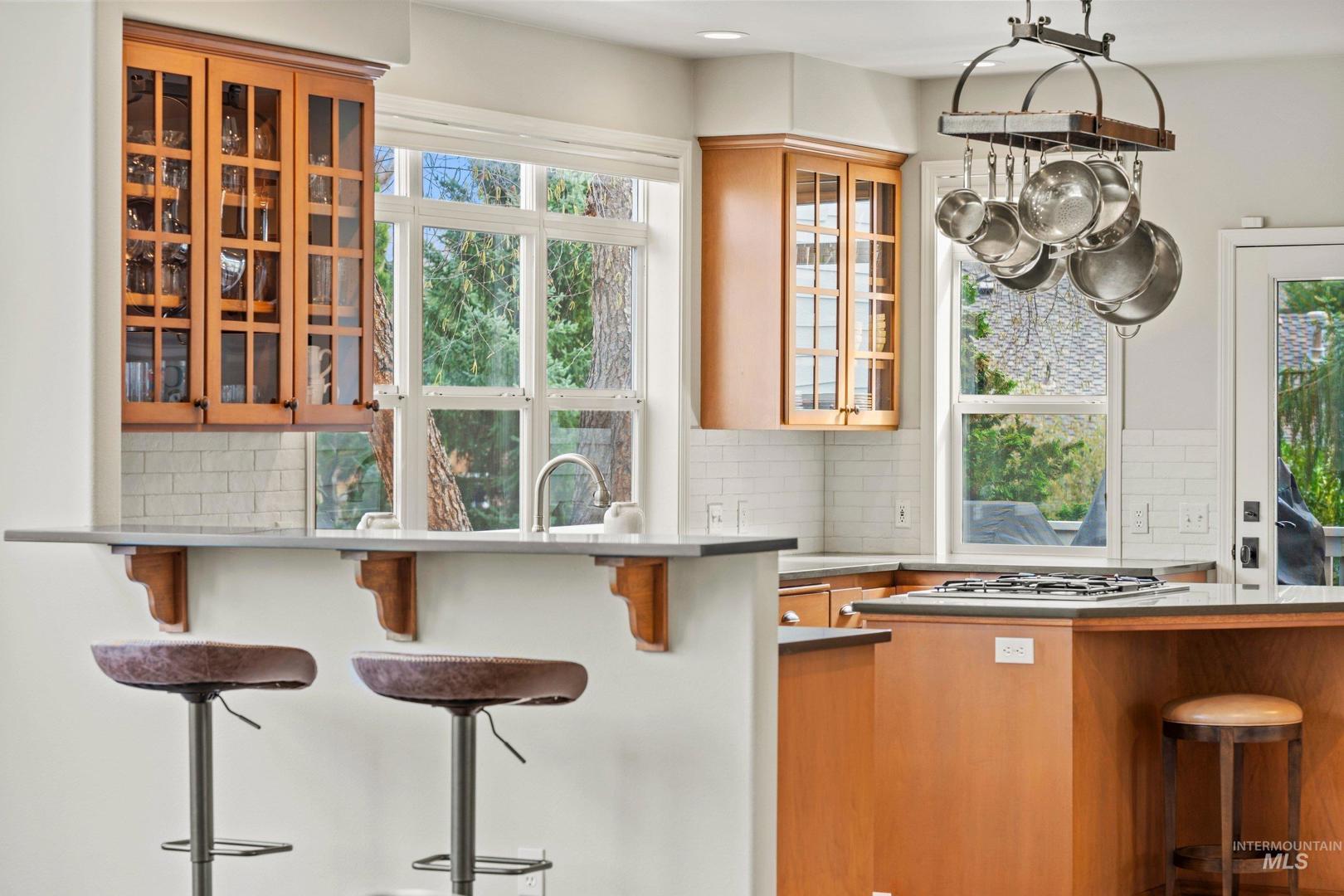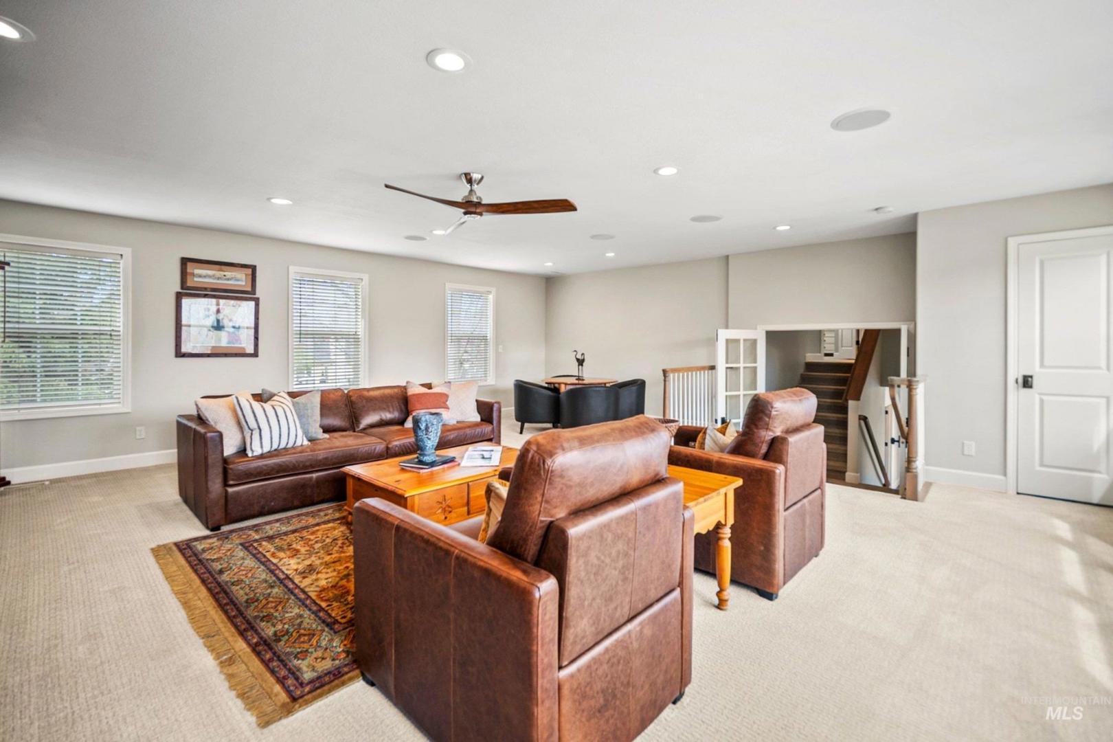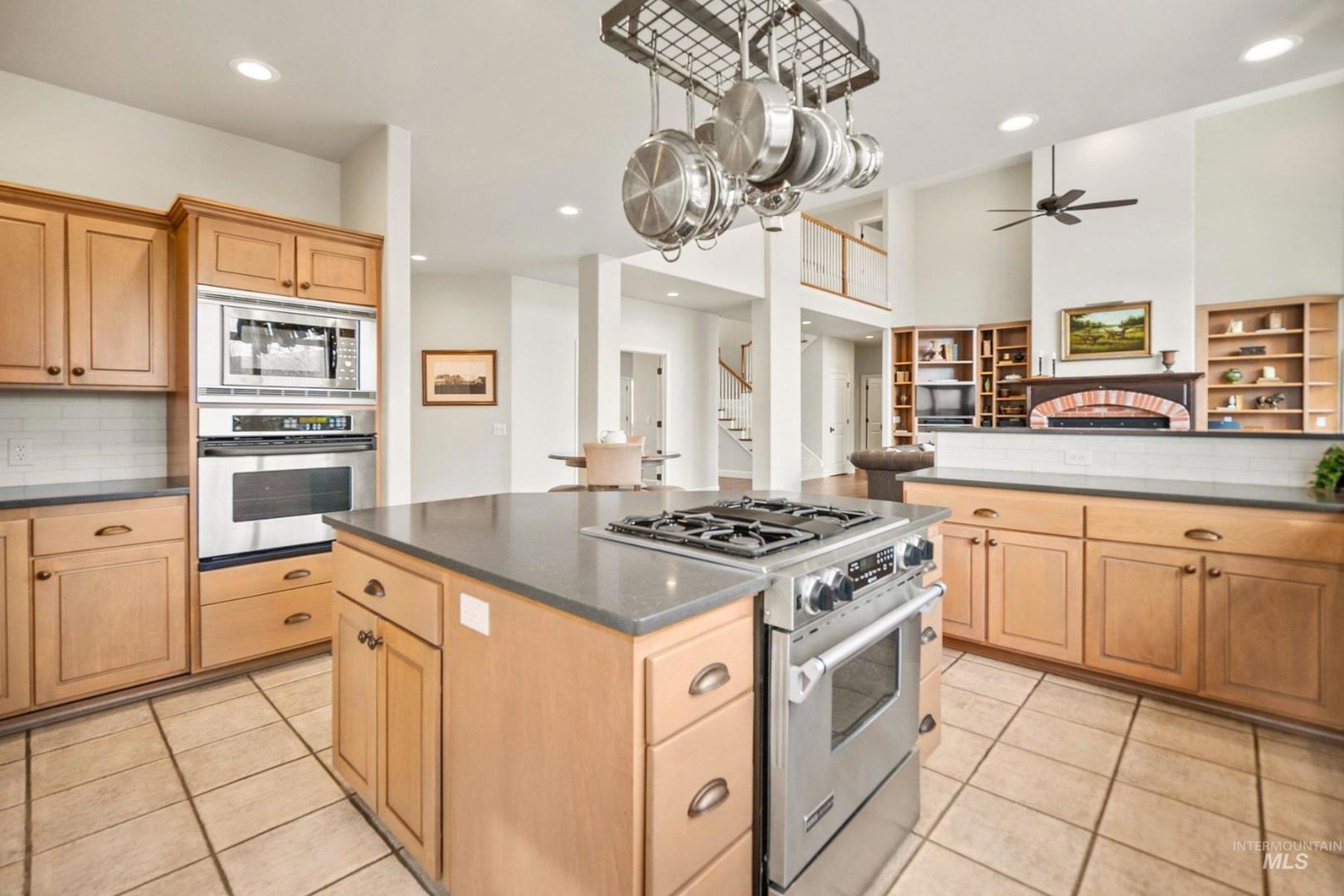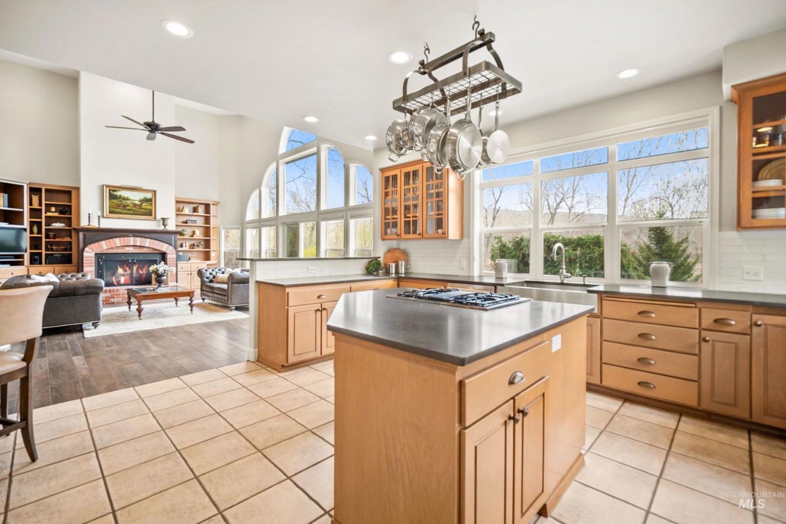 Tucked along a protected wildlife area along the Boise River, this Wood Duck Island home offers privacy, natural beauty, and an exceptional location. The backyard features a saltwater pool and spa, fire pit, tranquil creek, and direct access to the Boise River and Greenbelt. Located on a quiet cul de sac between Barber Park and Bown Crossing, the home provides easy access to recreation, dining, and everyday amenities. Inside, the light filled living room welcomes you with mountain views, a grand staircase, and open living and dining areas. The main level includes a private office and guest bedroom with adjacent full bath. The renovated kitchen features JennAir appliances, central island, quartz countertops, Italian tile flooring, and a pro style convection oven. Upstairs, the primary suite offers mountain, river and tree lined views, sitting area, and wood burning fireplace. The en suite bath includes an extended double vanity and walk in shower. 3 car tandem garage, fully fenced yard, and multiple outdoor living spaces complete this beautifully maintained home near downtown Boise and top area schools. Please see Docs for detailed amenities/updates list and floor plans. Matterport in Video link.