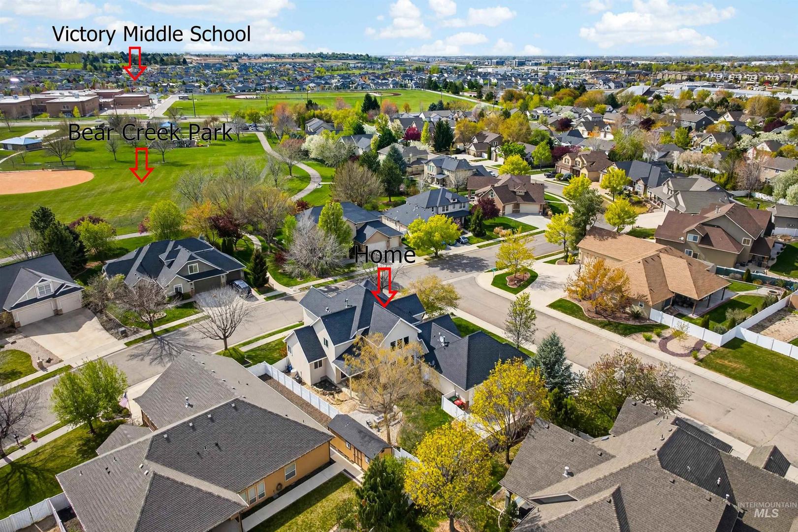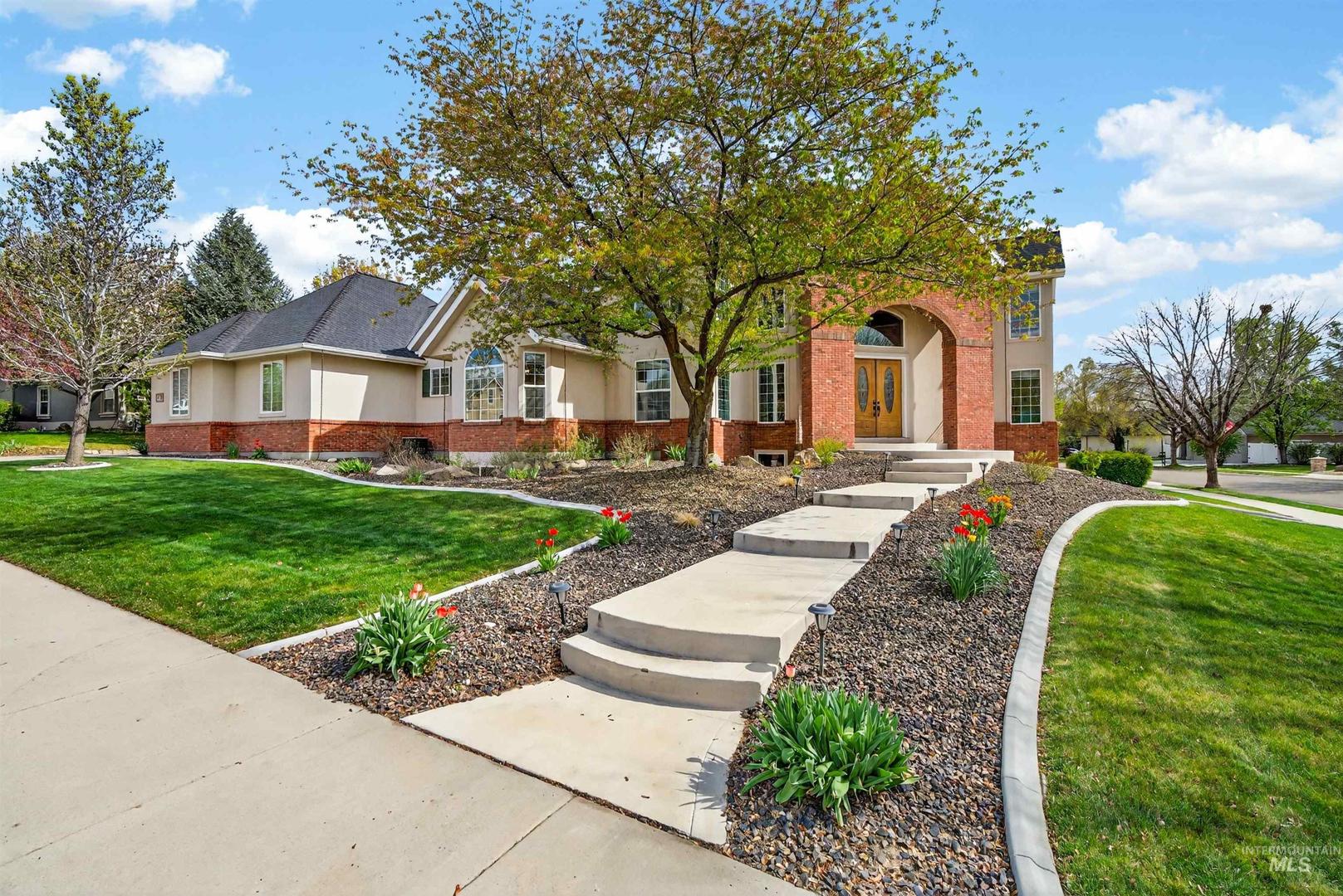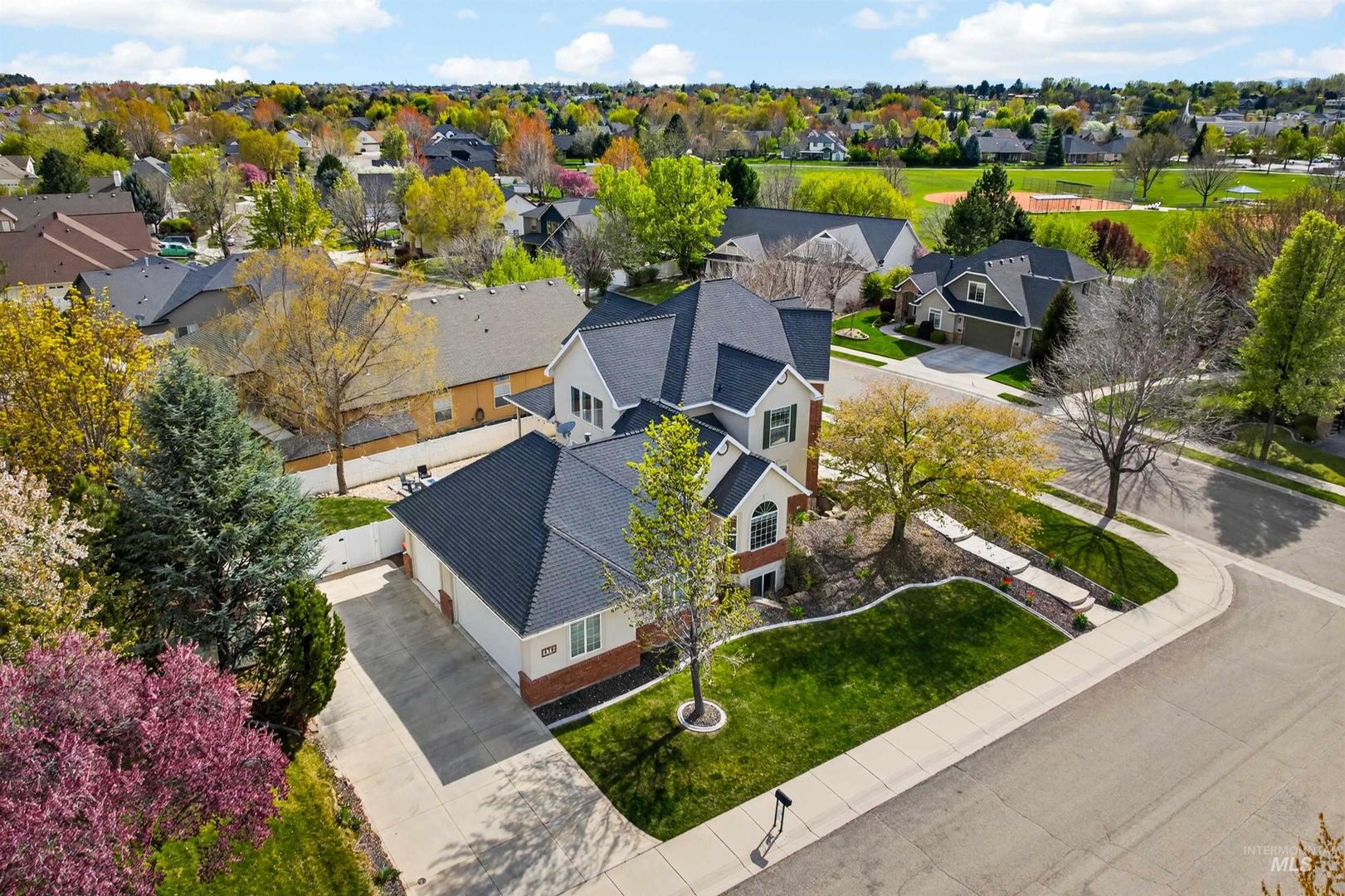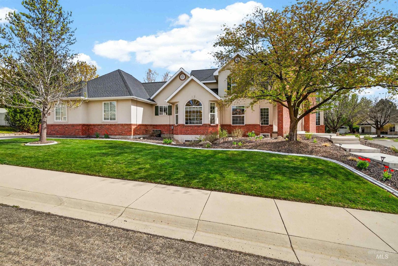 A truly remarkable home situated on a premier corner lot in Bear Creek, one of Meridians most sought after communities. The grand two story entry leads way through a home that offers flexibility as well as total livability. The main level features a chef`s kitchen with slab granite counters, stainless appliances, island, dining nook and walk-in pantry all overlooking the great room that`s accented by large windows and a corner gas fireplace. In addition, the main level offers a large primary suite with a spa-like bath, dual vanities, jetted soaking tub, walk-in shower and walk-in closet along with direct patio access. Rounding out the main level are an office, formal dining room right off of the kitchen and a guest bathroom. The upper level hosts 3 generous sized bedrooms with walk-in closets, a bathroom and a huge bonus room while the lower level provides an incredible income producing opportunity or in-law suite by offering an additional living room with fireplace, bedroom with walk-in closet, bathroom, laundry area and kitchenette all with its own separate access. Outside you`ll find a brick and stucco exterior, gorgeous low maintenance landscape, a fenced backyard with fire pit and RV/boat parking all set across the street from a 10 acre park, Victory Middle School and just minutes from shopping, dining, entertainment and freeway access. It just doesn`t get any better than this!