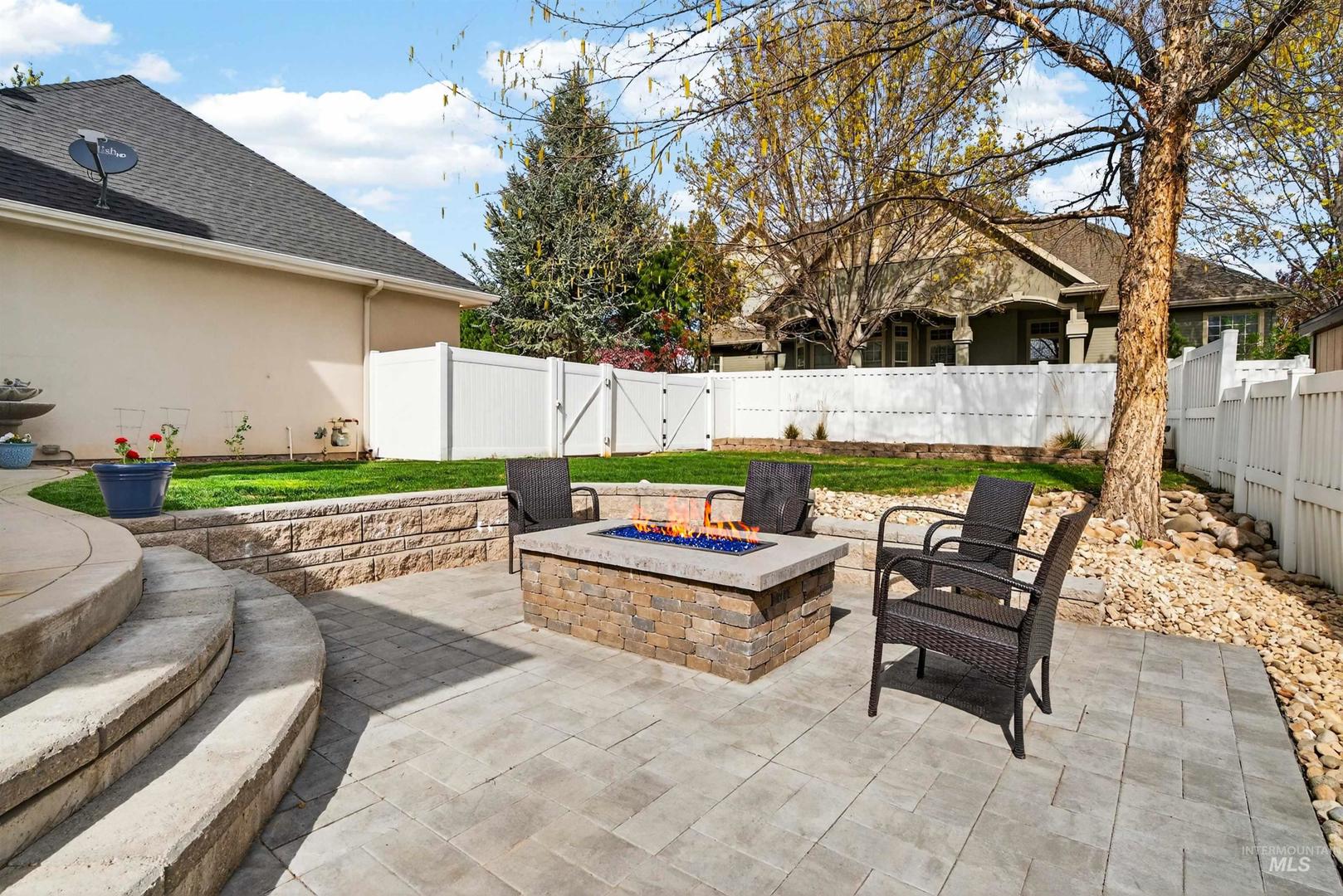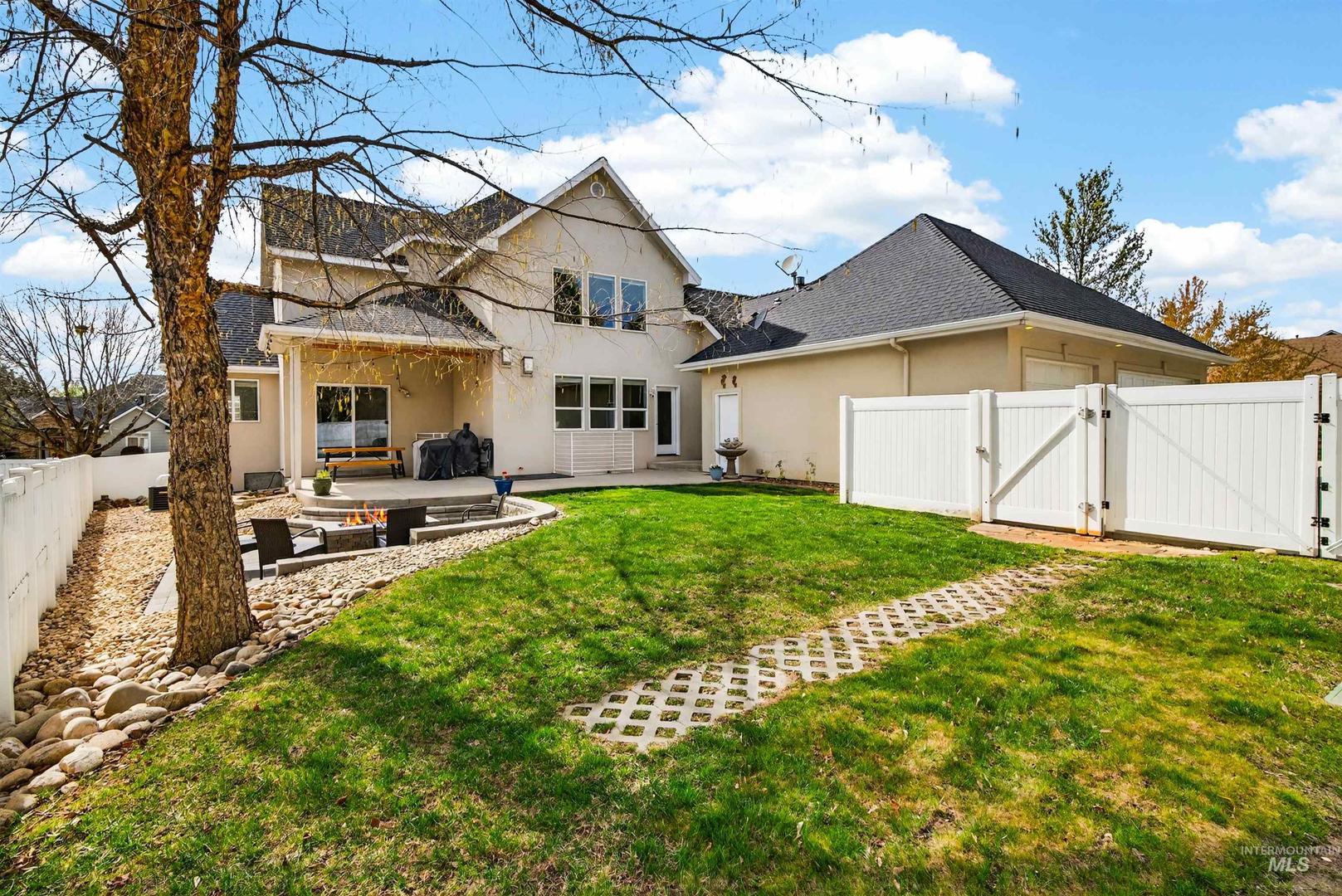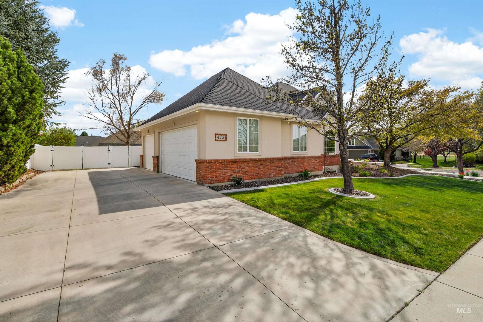 A truly remarkable home situated on a premier corner lot in Bear Creek, one of Meridians most sought after communities. The grand two story entry leads way through a home that offers flexibility as well as total livability. The main level features a chef`s kitchen with slab granite counters, stainless appliances, island, dining nook and walk-in pantry all overlooking the great room that`s accented by large windows and a corner gas fireplace. In addition, the main level offers a large primary suite with a spa-like bath, dual vanities, jetted soaking tub, walk-in shower and walk-in closet along with direct patio access. Rounding out the main level are an office, formal dining room right off of the kitchen and a guest bathroom. The upper level hosts 3 generous sized bedrooms with walk-in closets, a bathroom and a huge bonus room while the lower level provides an incredible income producing opportunity or in-law suite by offering an additional living room with fireplace, bedroom with walk-in closet, bathroom, laundry area and kitchenette all with its own separate access. Outside you`ll find a brick and stucco exterior, gorgeous low maintenance landscape, a fenced backyard with fire pit and RV/boat parking all set across the street from a 10 acre park, Victory Middle School and just minutes from shopping, dining, entertainment and freeway access. It just doesn`t get any better than this!