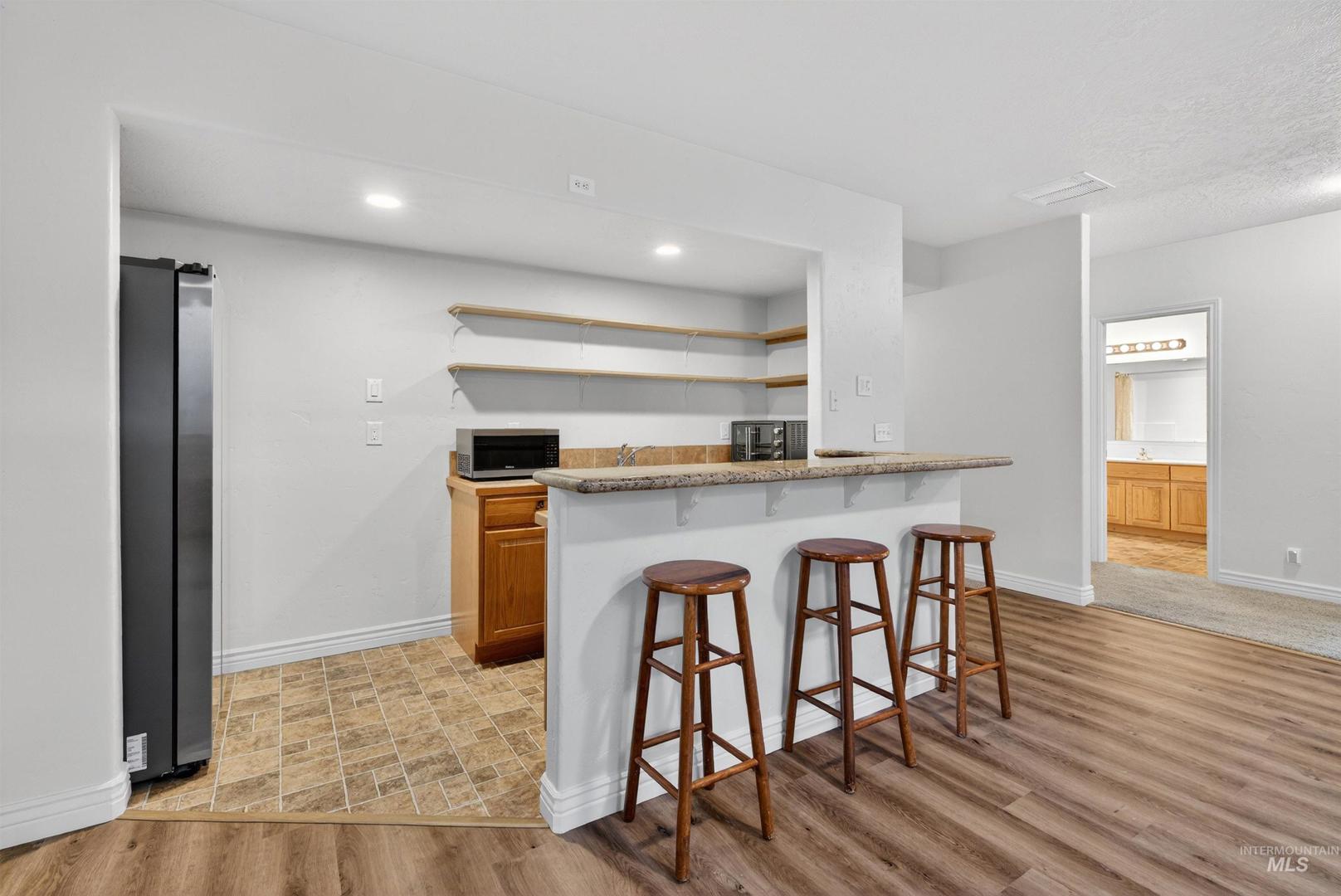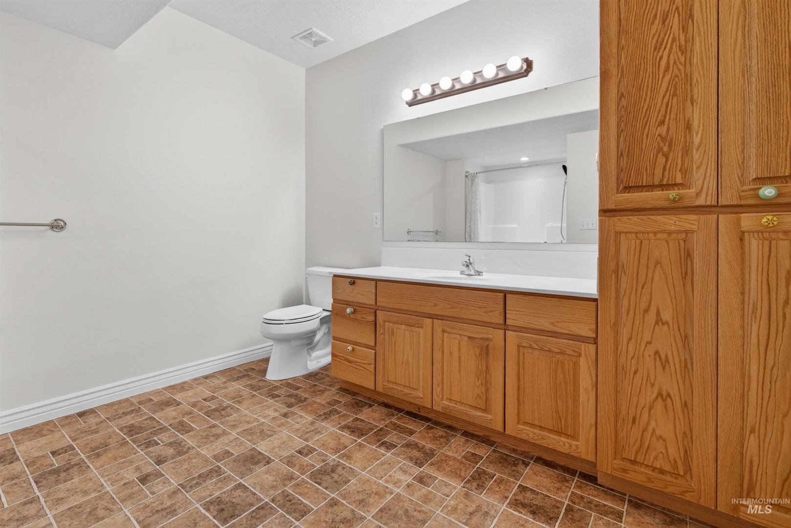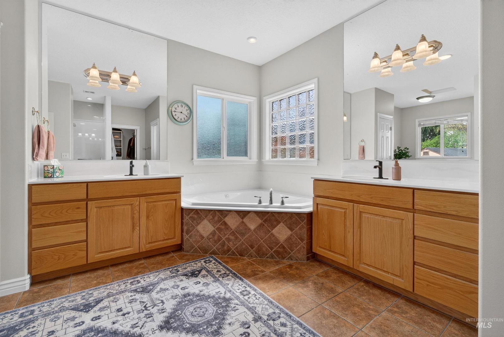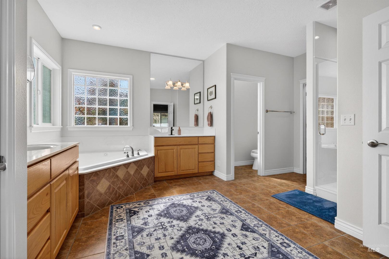 A truly remarkable home situated on a premier corner lot in Bear Creek, one of Meridians most sought after communities. The grand two story entry leads way through a home that offers flexibility as well as total livability. The main level features a chef`s kitchen with slab granite counters, stainless appliances, island, dining nook and walk-in pantry all overlooking the great room that`s accented by large windows and a corner gas fireplace. In addition, the main level offers a large primary suite with a spa-like bath, dual vanities, jetted soaking tub, walk-in shower and walk-in closet along with direct patio access. Rounding out the main level are an office, formal dining room right off of the kitchen and a guest bathroom. The upper level hosts 3 generous sized bedrooms with walk-in closets, a bathroom and a huge bonus room while the lower level provides an incredible income producing opportunity or in-law suite by offering an additional living room with fireplace, bedroom with walk-in closet, bathroom, laundry area and kitchenette all with its own separate access. Outside you`ll find a brick and stucco exterior, gorgeous low maintenance landscape, a fenced backyard with fire pit and RV/boat parking all set across the street from a 10 acre park, Victory Middle School and just minutes from shopping, dining, entertainment and freeway access. It just doesn`t get any better than this!