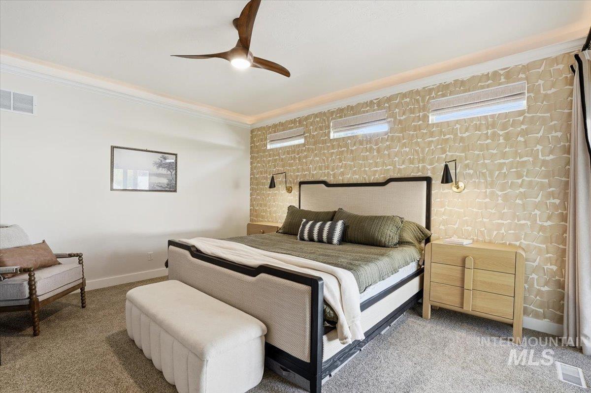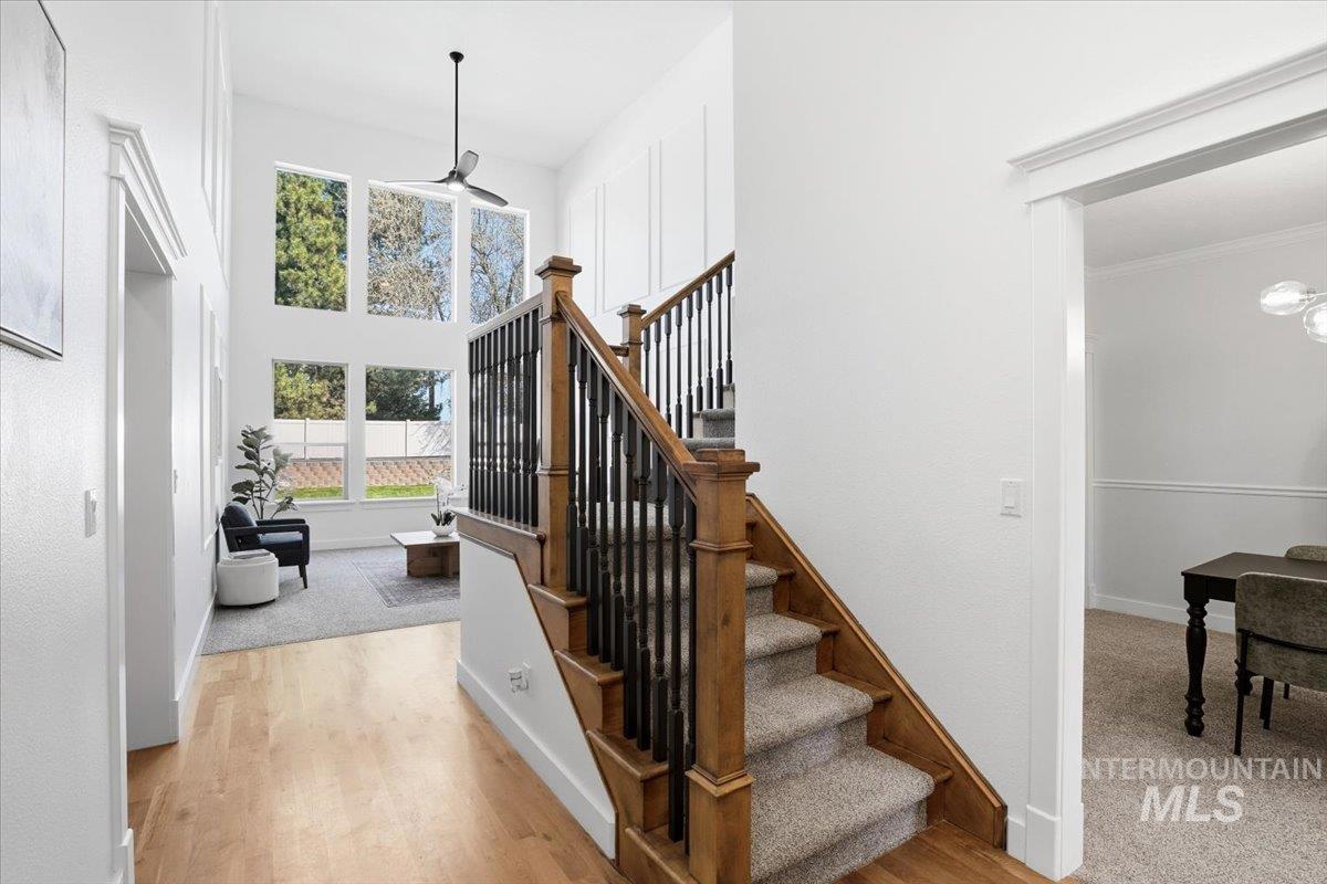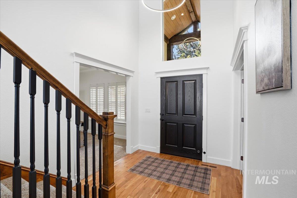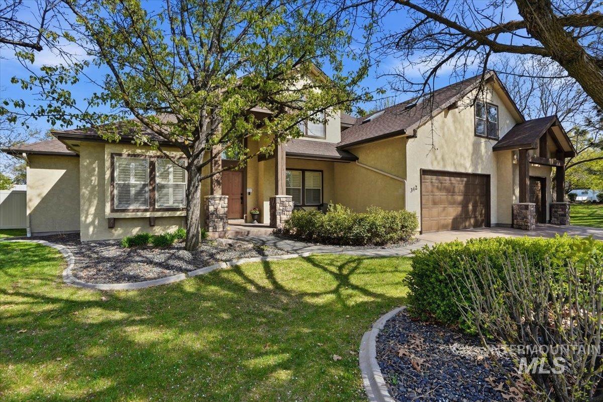 Welcome to 342 N Clearpoint Way, located in the beautiful, coveted Countryside Estates Subdivision in Eagle! Perfectly situated on a premier corner lot with no rear neighbors, this stunning 3,500+ sq ft home offers privacy, space, and exceptional design. The built for convenience floor plan includes 4 bedrooms including a main floor office that can be used as a 5th bedroom. A formal dining/flex room, and 2 Main Floor Living areas ideal for entertaining. The gourmet kitchen delivers both style and function with a waterfall-edge quartz island, custom cabinetry, double ovens, and a pantry. The main-level owner’s suite is a true retreat with tray ceilings, private patio access, an en-suite bath with dual vanities, a soaking tub, a tiled walk-in shower, and a large walk-in closet. Upstairs you will find 3 additional bedrooms and a full bathroom. The 2nd level bonus room provides even more versatility, perfect for a game room, home theater, or potential 6th bedroom if needed! So much space and options here! Enjoy a seamless indoor-outdoor lifestyle in the private backyard featuring a beautiful, raised stone garden area that is ready for you to design any way you desire! 2 covered patio areas, vinyl fencing, automatic front and backyard irrigation. An oversized 1029 Sq ft, 4-car tandem garage with extra storage completes this exceptional property. Call and schedule a showing today!