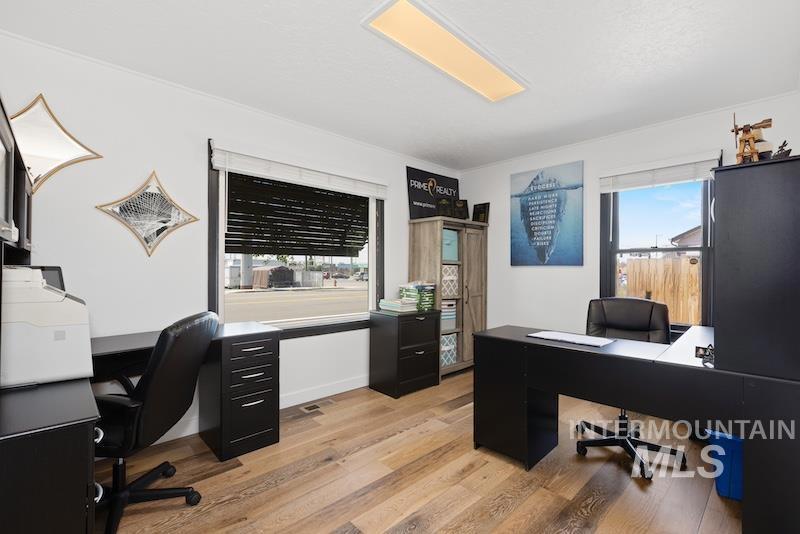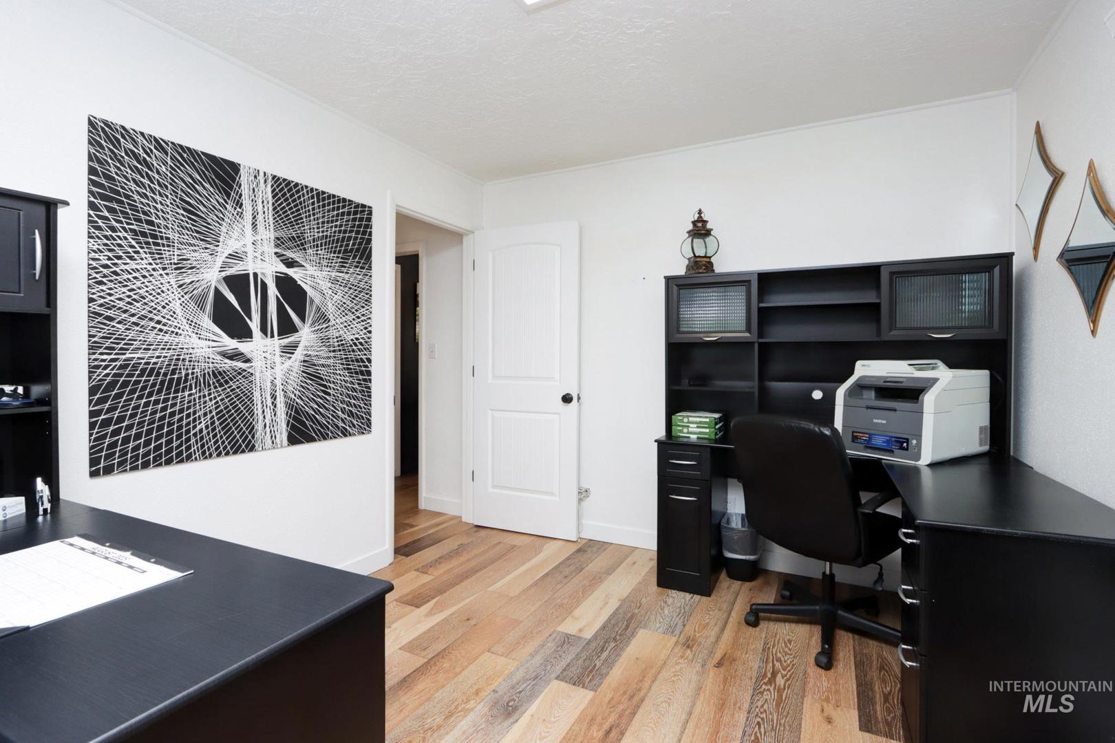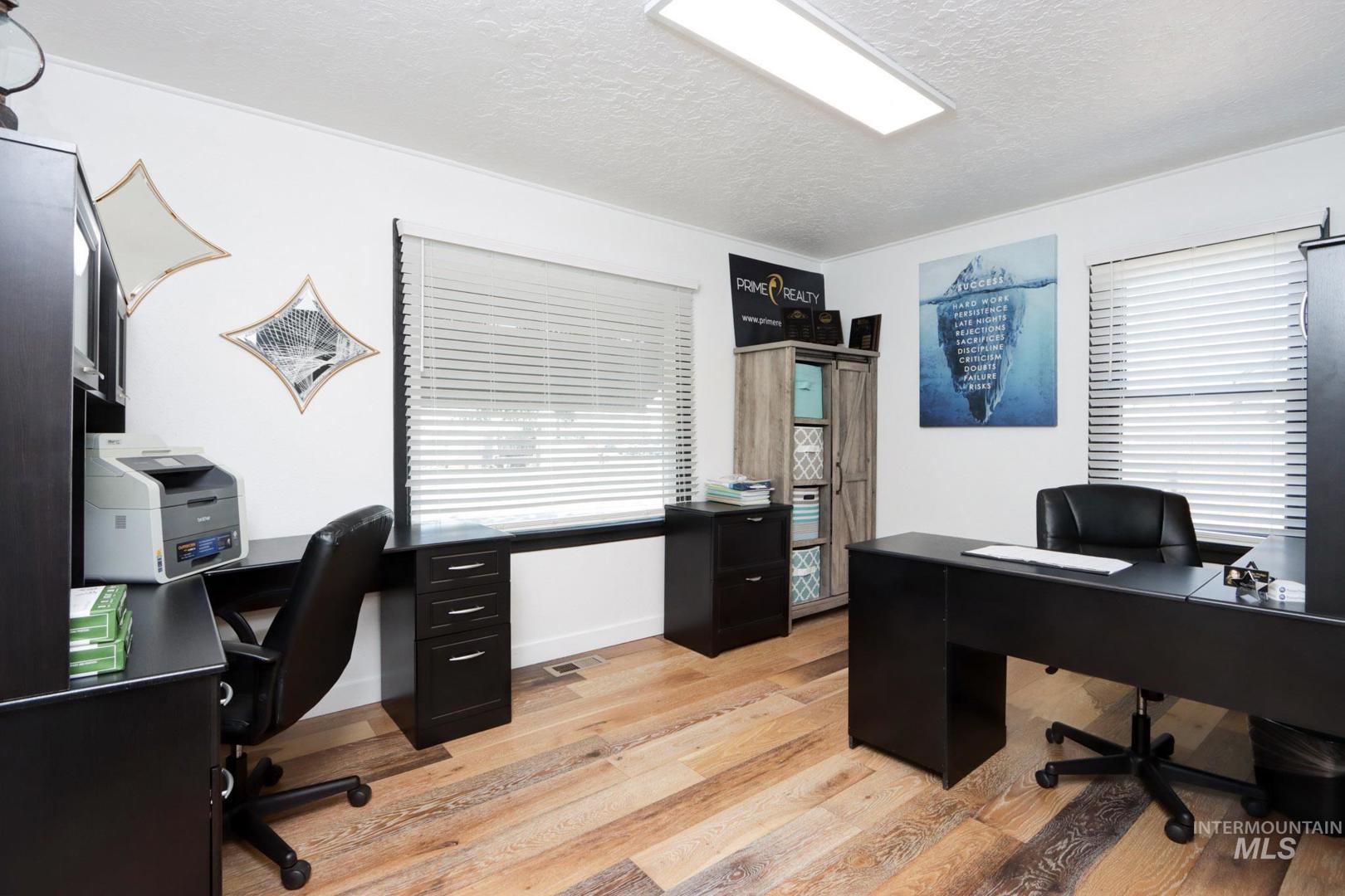Great office/business building in a high-traffic location that is easy to find and centrally located in the Boise Bench area with easy freeway access. This charming, fully remodeled 1100 square foot building features four offices, central meeting area, kitchenette/break area and restroom. Private fenced patio area outside the building. The office has street frontage on Curtis Road and the building sits on a large lot with ample parking including seven spaces with two driveways. The lot also includes a new 8-foot by 12-foot storage shed from Stor-Mor Sheds. Do not disturb tenants.