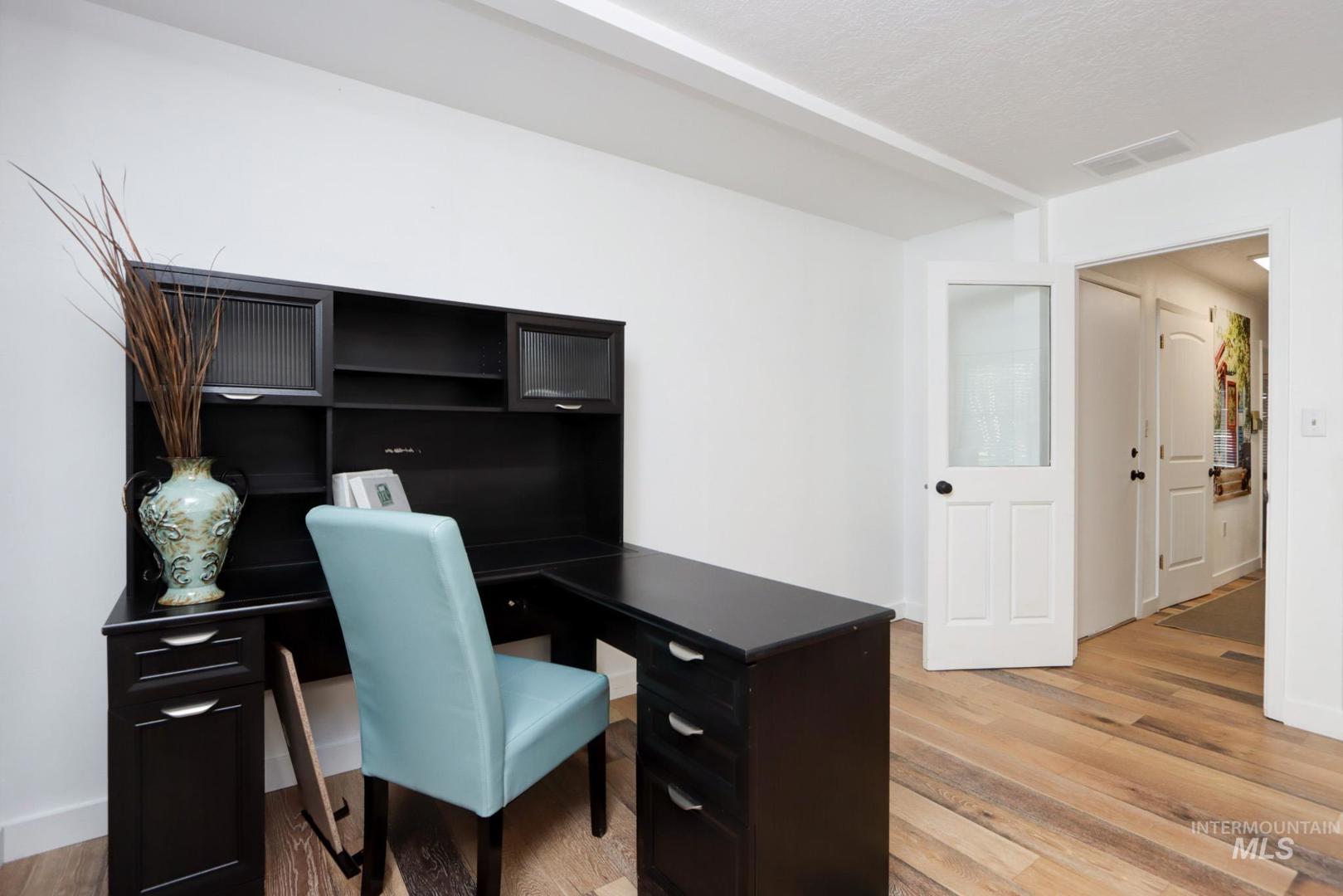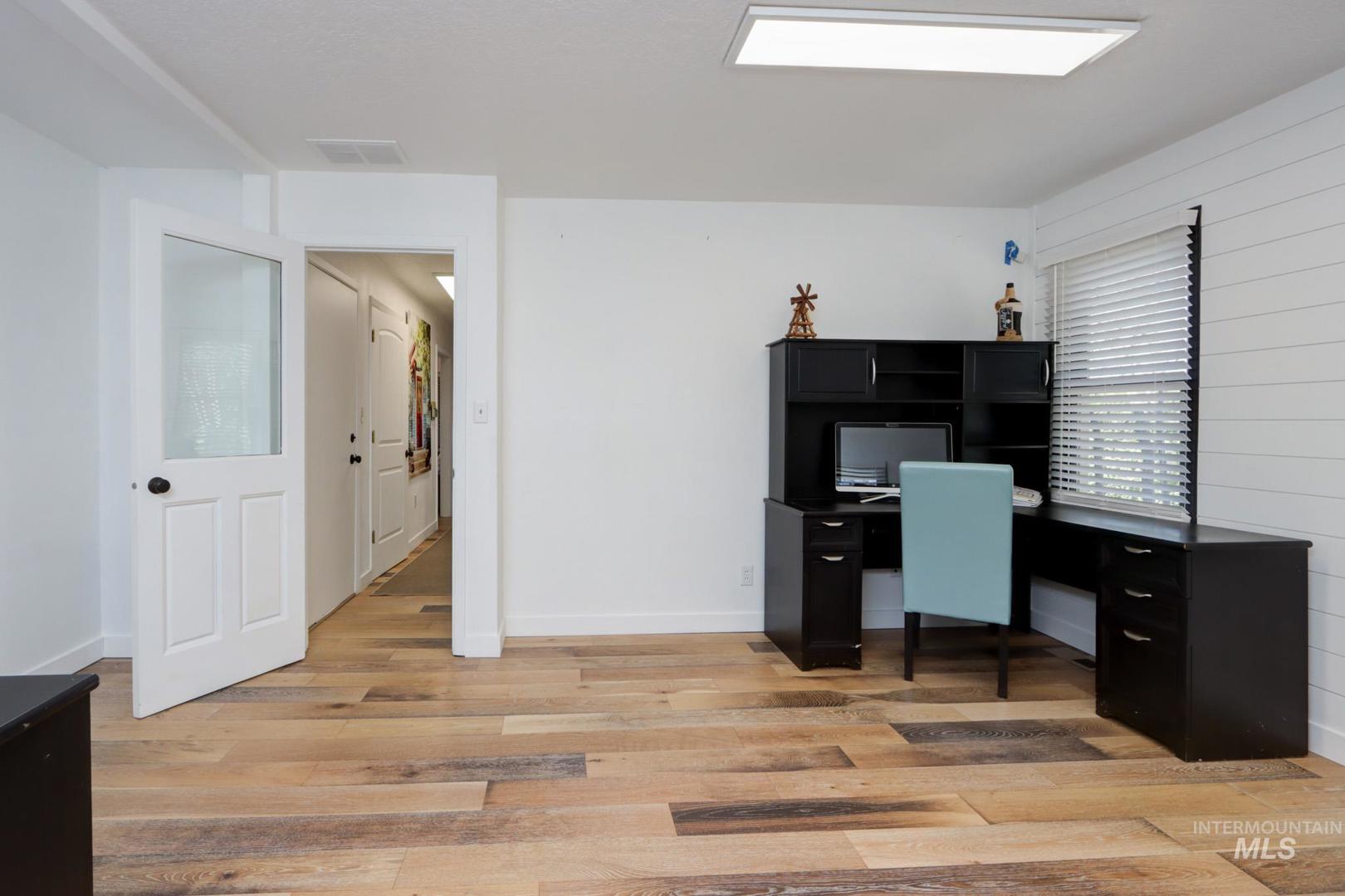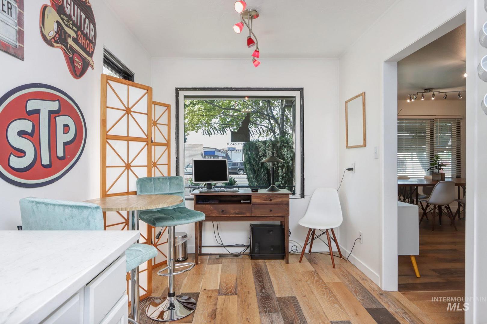 Great office/business building in a high-traffic location that is easy to find and centrally located in the Boise Bench area with easy freeway access. This charming, fully remodeled 1100 square foot building features four offices, central meeting area, kitchenette/break area and restroom. Private fenced patio area outside the building. The office has street frontage on Curtis Road and the building sits on a large lot with ample parking including seven spaces with two driveways. The lot also includes a new 8-foot by 12-foot storage shed from Stor-Mor Sheds. Do not disturb tenants.