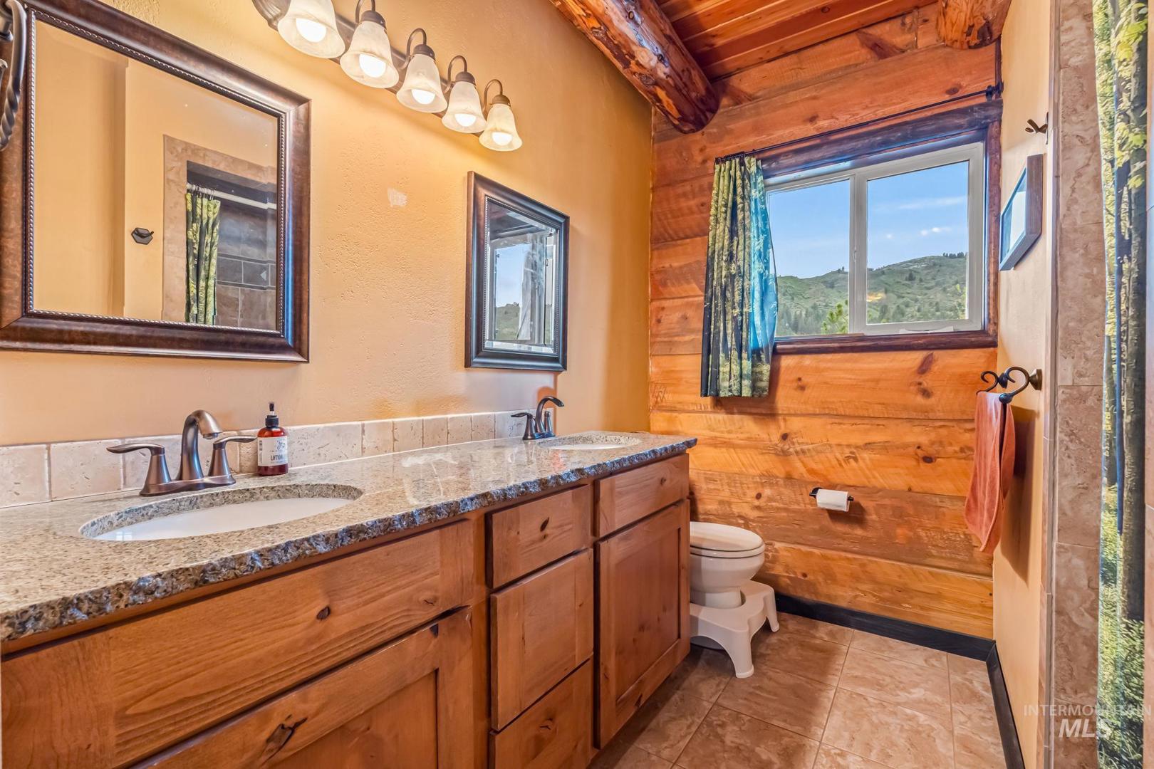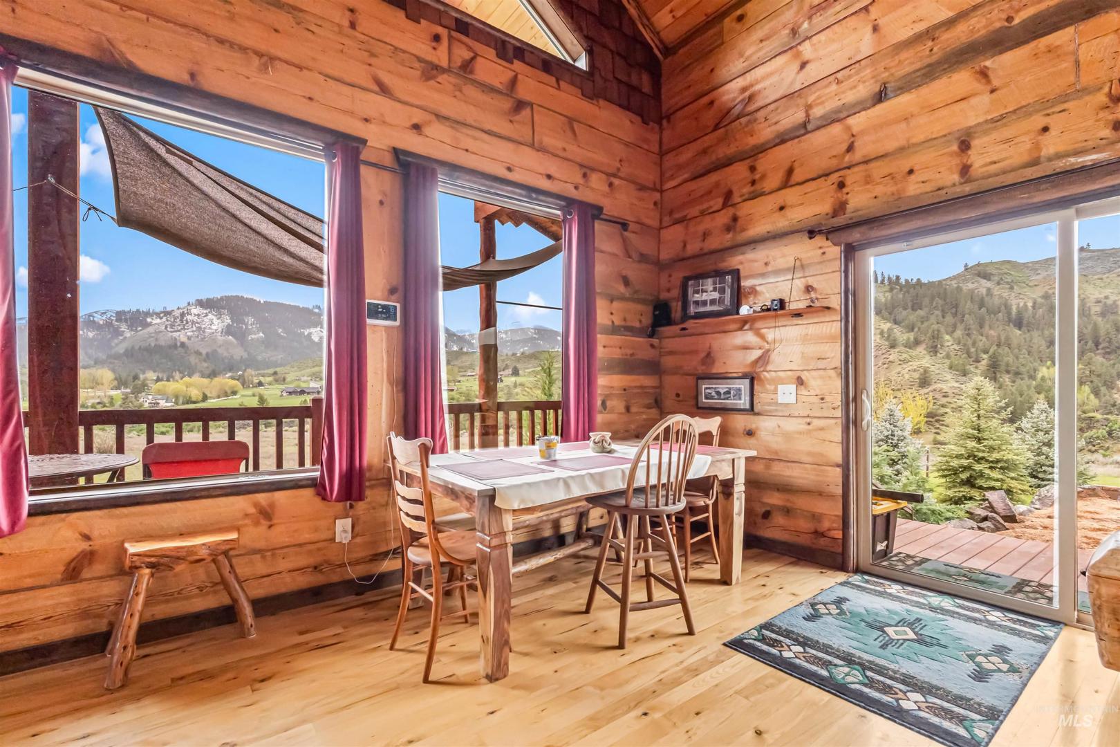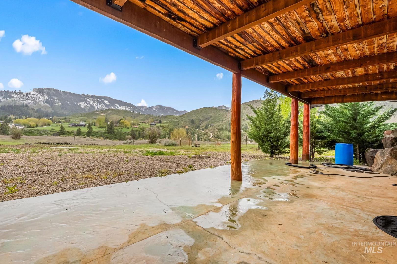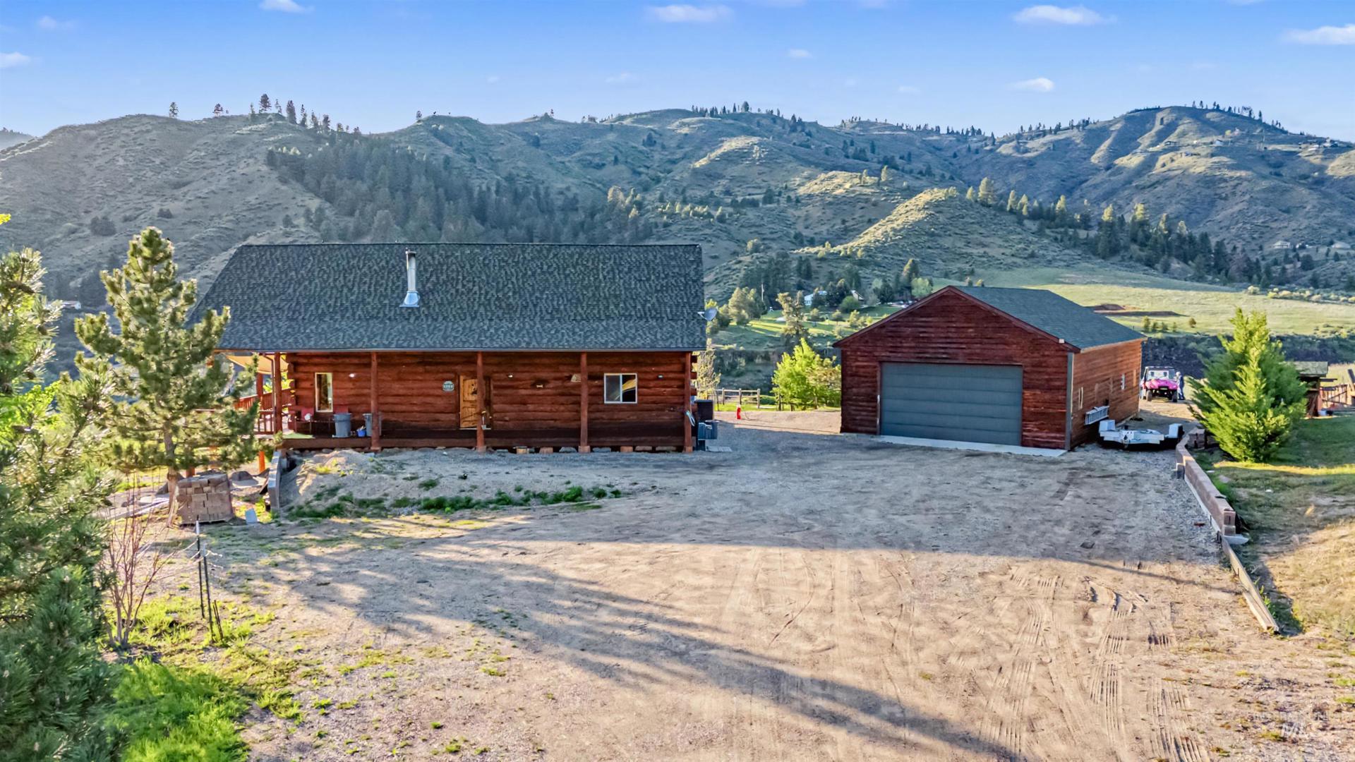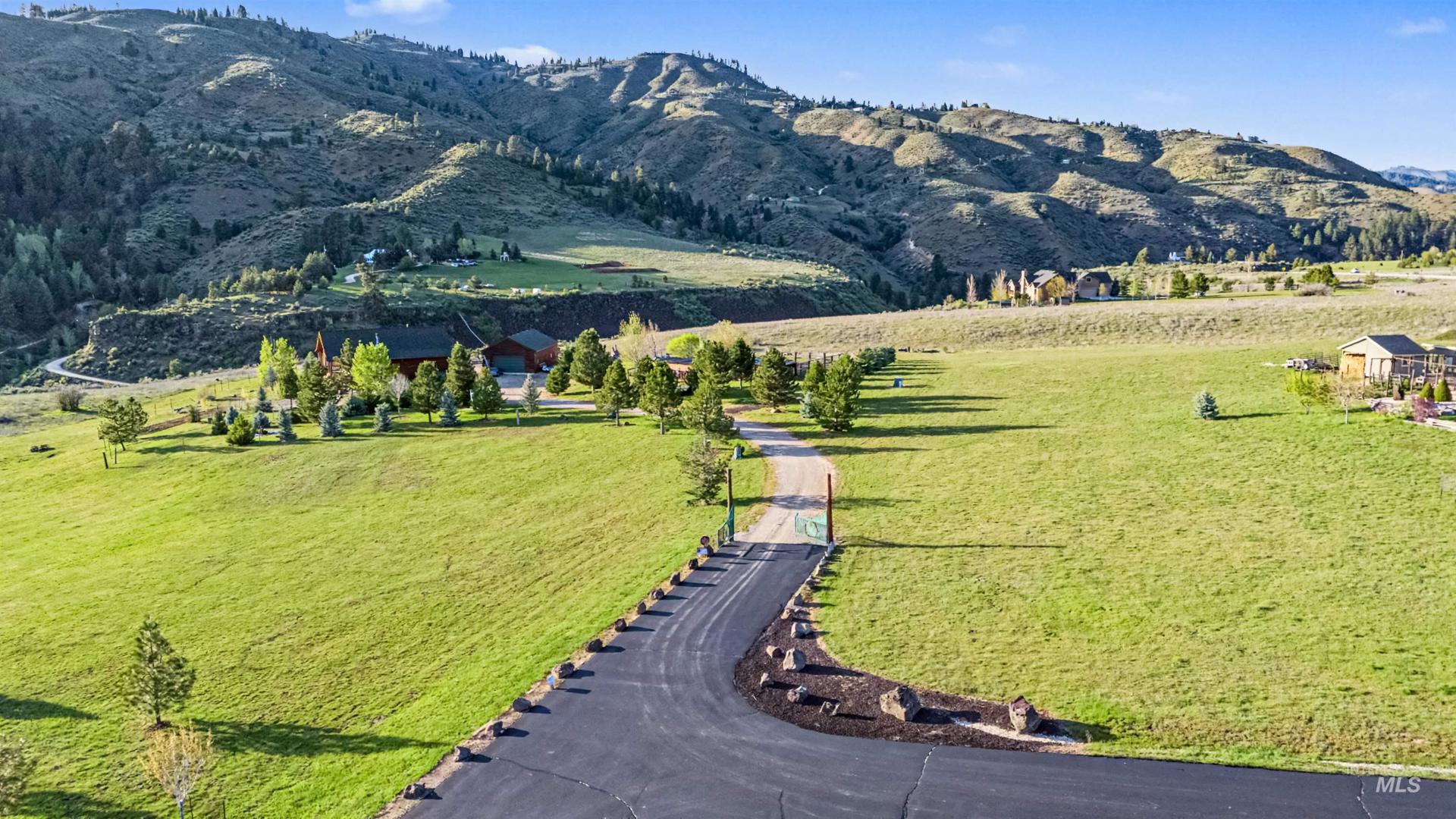 Escape to the country living with 360 views all around on this property and at the edge of the property is a view of the river below. Rustic Custom log home with wood burning stove in great room and upstairs. Large Windows to soak in the views from. Kitchen has granite counters with island and rock covering front of island for that little extra mountain feel. Walk out basement with lots of views from and covered patio area. Large wrap around covered porch. This property is so private and secluded for privacy. Large 1500 sqft 5 car garage or shop area. Large garden ready to plant this spring. Private road with maintenance agreement. Double gates in entrance. Down the road from lucky peak park and a 15 min drive to boise where all the amenities are available. Go north to the private hot springs and Idaho City.