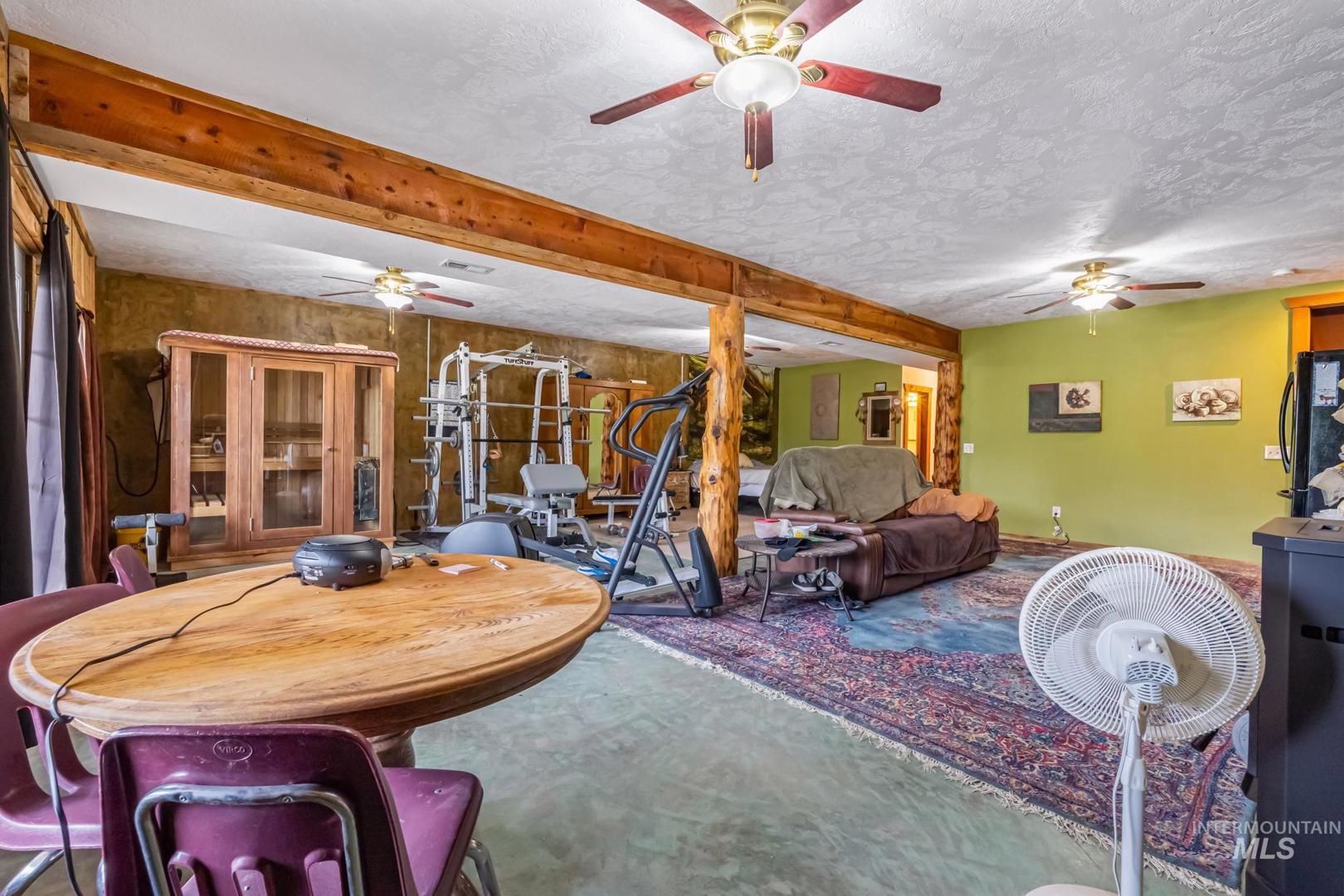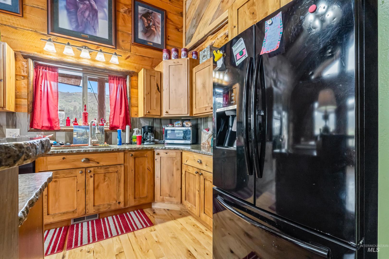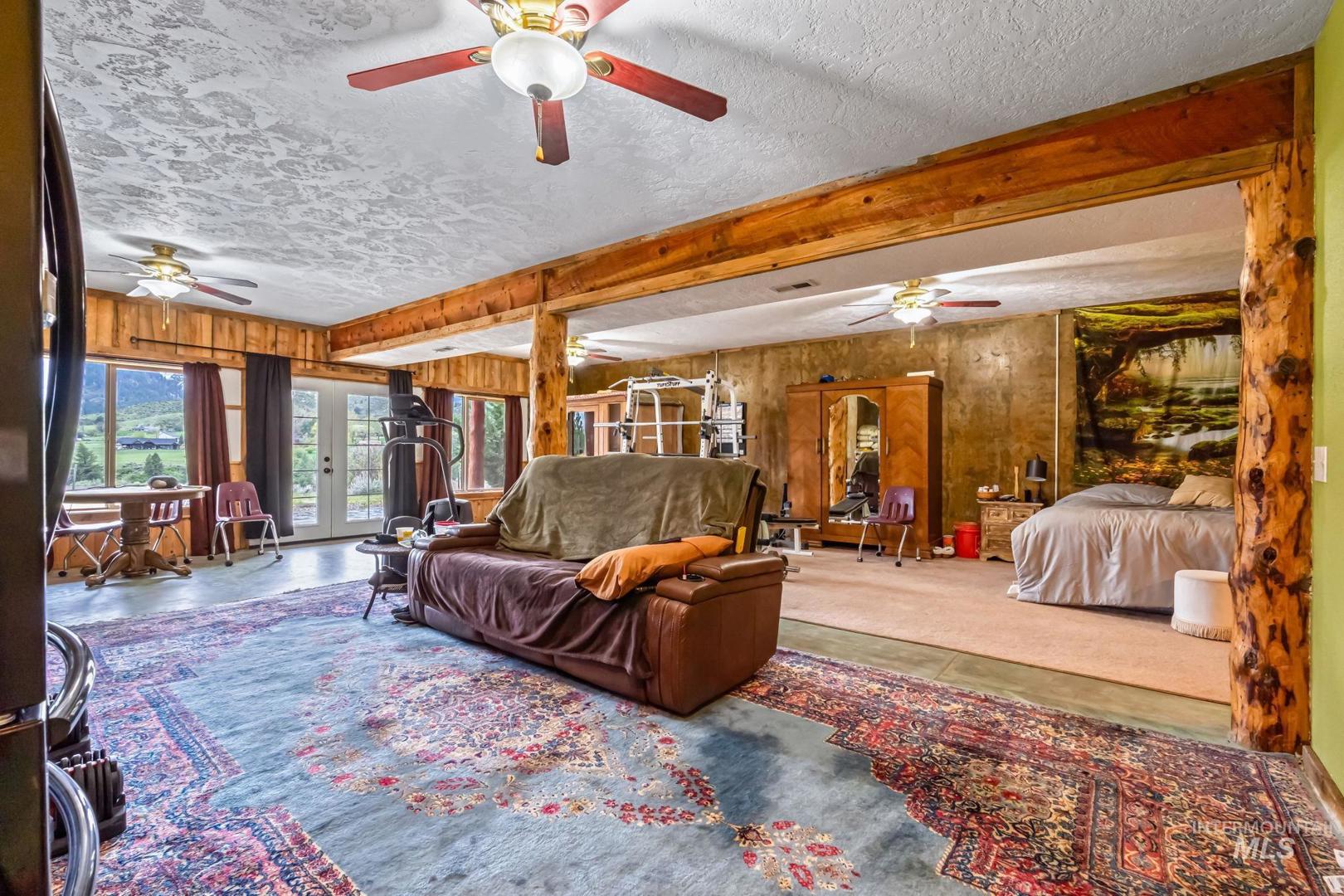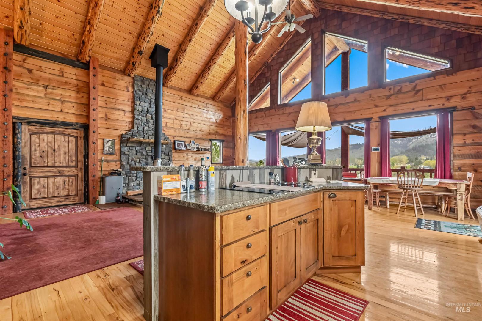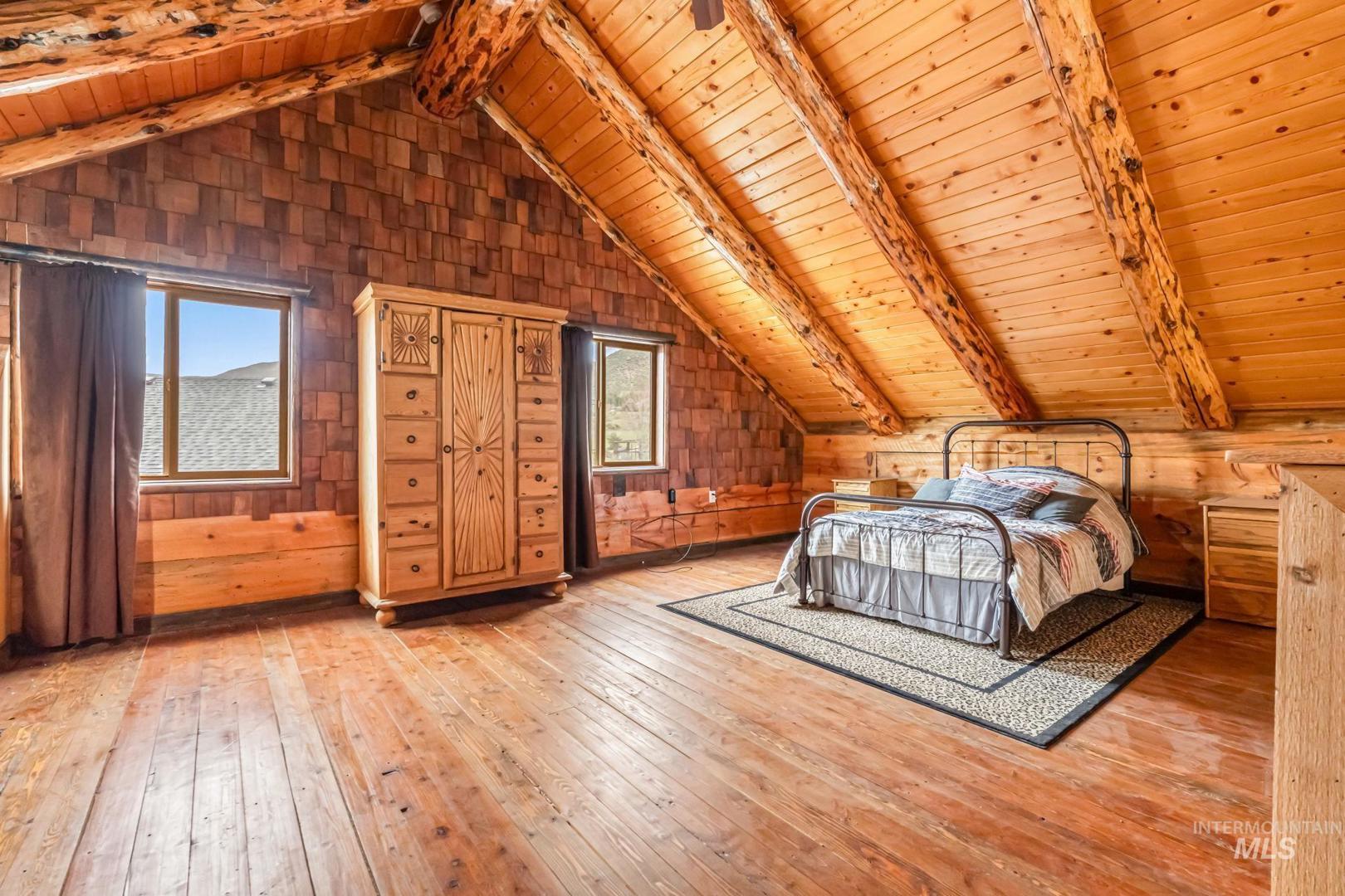 Escape to the country living with 360 views all around on this property and at the edge of the property is a view of the river below. Rustic Custom log home with wood burning stove in great room and upstairs. Large Windows to soak in the views from. Kitchen has granite counters with island and rock covering front of island for that little extra mountain feel. Walk out basement with lots of views from and covered patio area. Large wrap around covered porch. This property is so private and secluded for privacy. Large 1500 sqft 5 car garage or shop area. Large garden ready to plant this spring. Private road with maintenance agreement. Double gates in entrance. Down the road from lucky peak park and a 15 min drive to boise where all the amenities are available. Go north to the private hot springs and Idaho City.