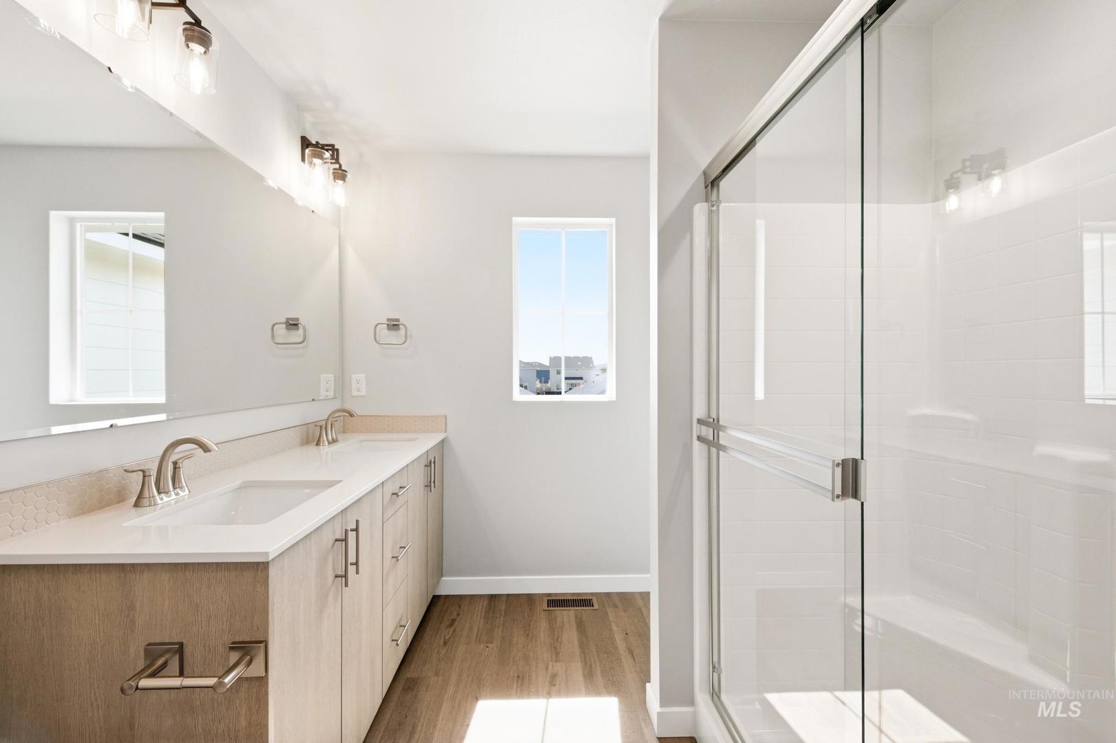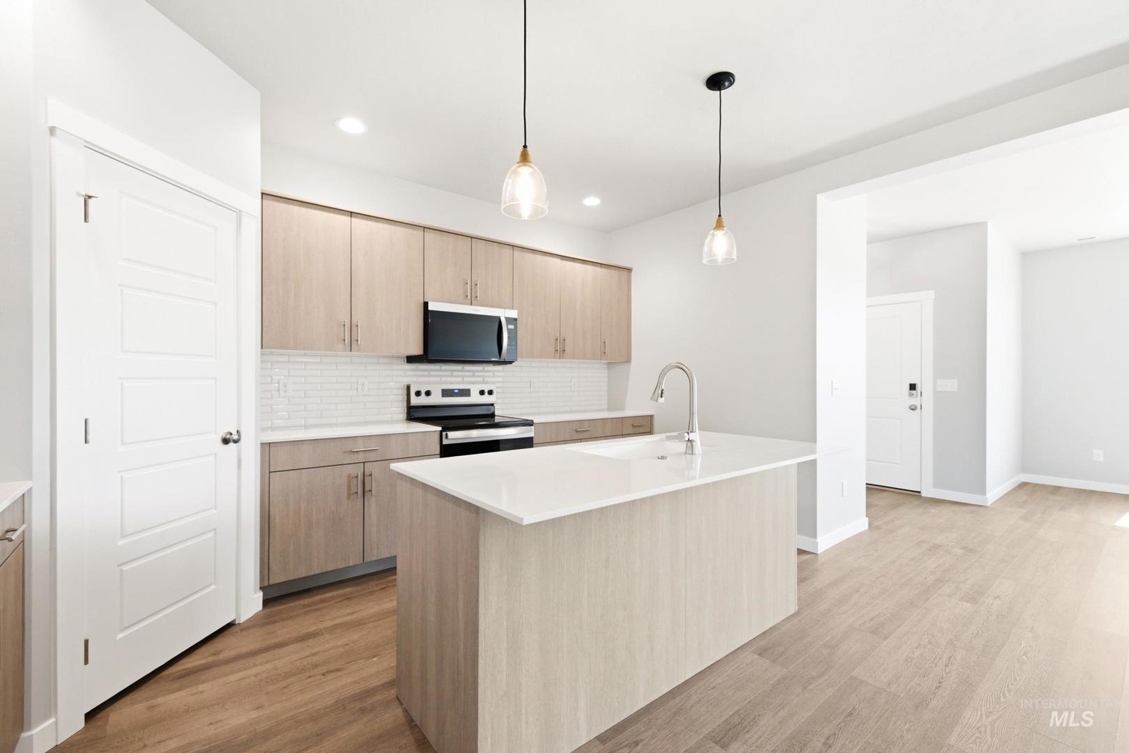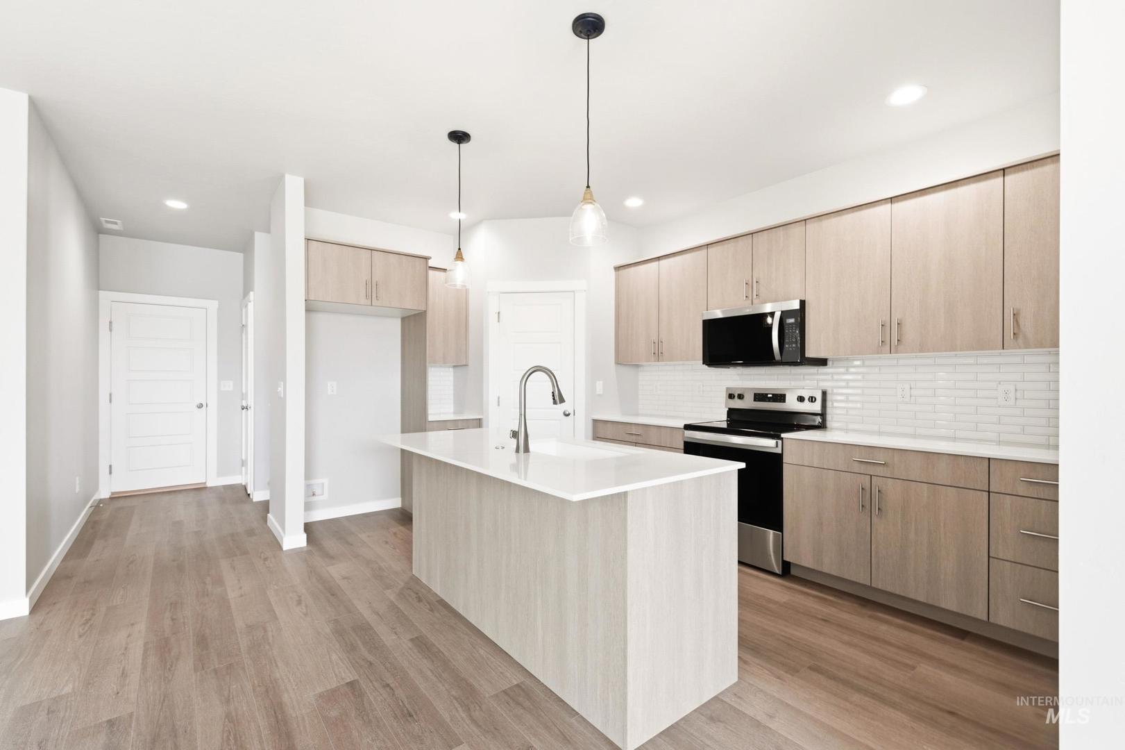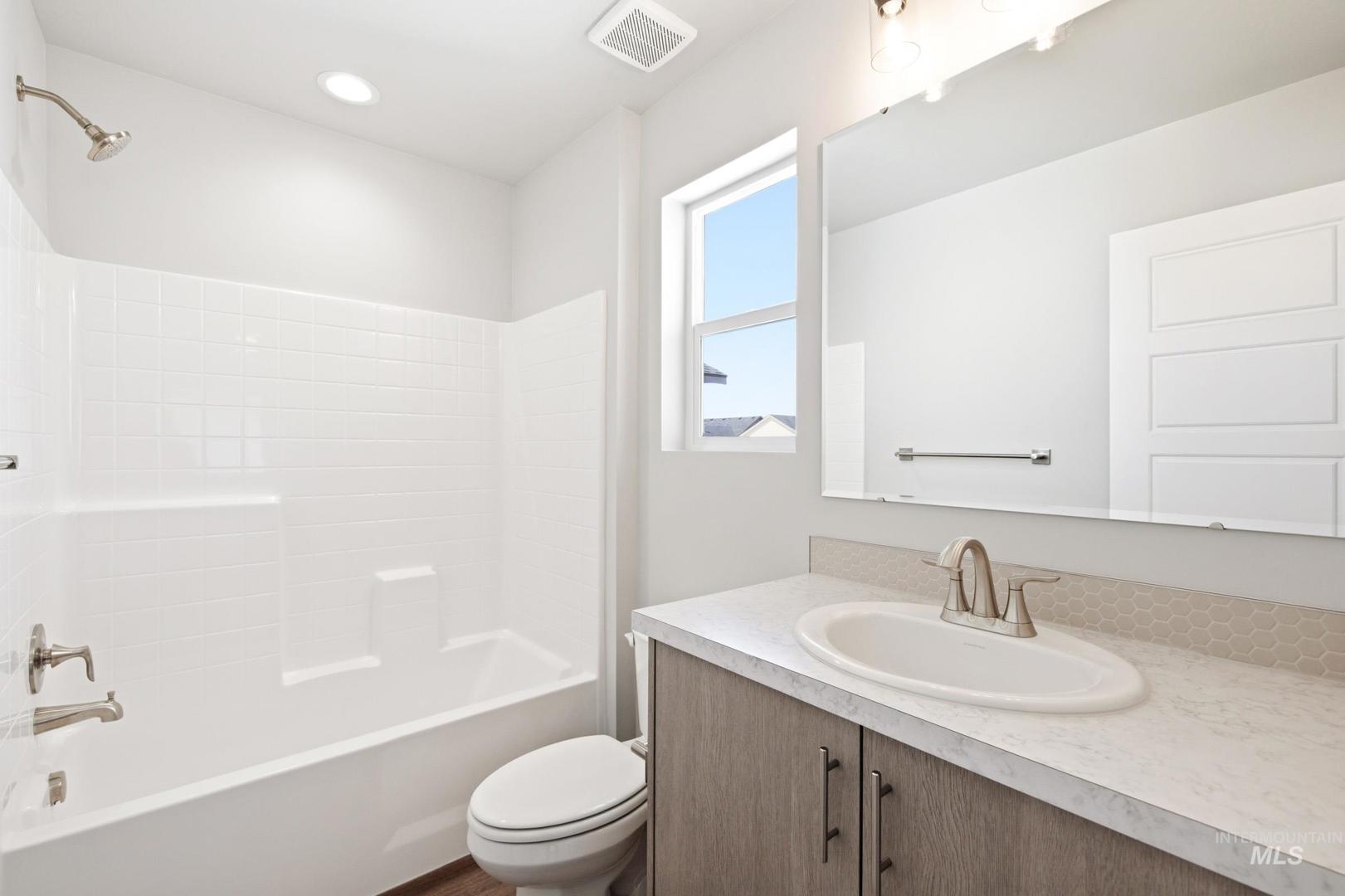 Get $15K YOUR WAY! Ask a Sales Specialist for details. Feel enriched in your brand new home located in Meridian, Idaho! The Caribou 1817 delivers a modern, open layout that feels grand and inviting while maintaining an efficient use of space. The kitchen comes with stainless steel appliances and stylish solid surface countertops, adding both functionality and aesthetics to the kitchen. Easy access to the patio enhances indoor-outdoor enjoyment, and a dedicated tech space on the main level offers a quiet spot for focus. Upstairs, the primary suite provides a serene retreat with an en suite bath featuring a dual vanity and a spacious shower, along with an expansive closet. Two additional bedrooms add flexibility for hosting or creating a personalized workspace. With thoughtful storage and a layout that flows effortlessly, the Caribou 1817 offers a refined blend of comfort and convenience. Photos are of the actual home!