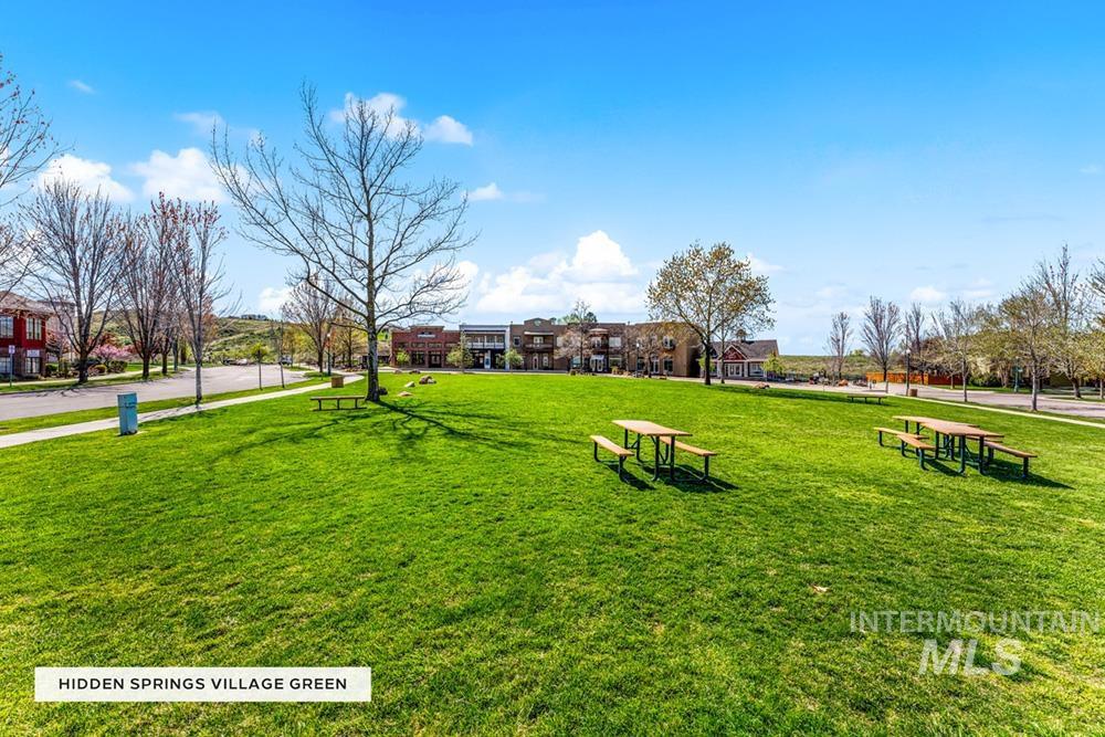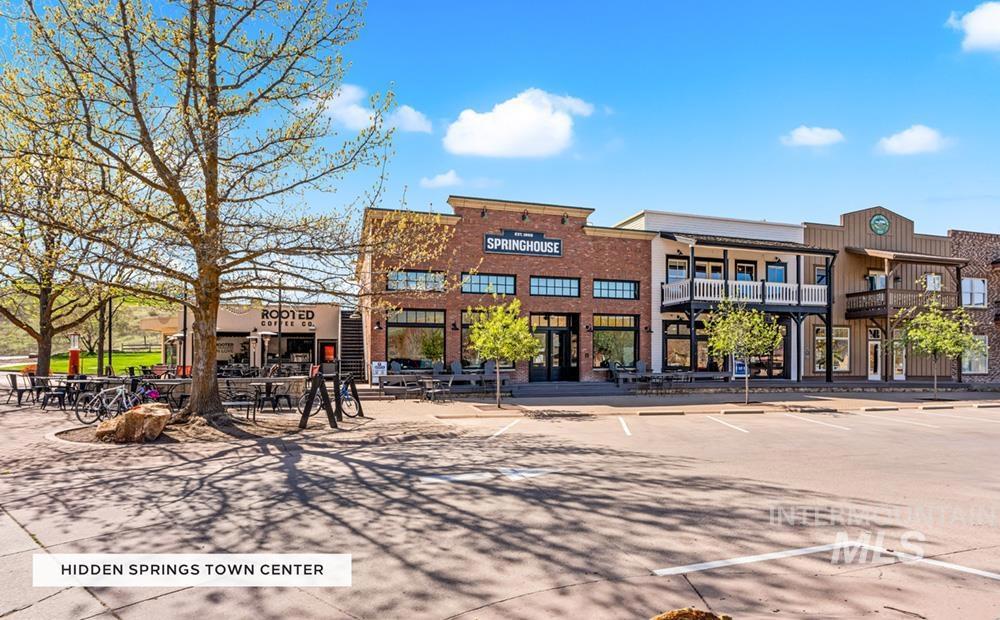 A luxurious, low-maintenance residence in the sought-after Row House Collection in the heart of Hidden Springs. Ideally situated across from the Village Green and a stone`s throw from the town center, this home offers direct access to trails, parks, neighborhood events, and local dining—all set against the backdrop of rolling foothills and open skies. Designed for single-level living, the main level features a seamless flow between the living, dining, and kitchen areas, along with a primary suite, additional bedrooms and baths, mudroom, laundry, and a covered patio. The lower level, which can be separately accessed through the front entrance on Hidden Springs Dr., provides flexible living options—ideal for multi-generational living, a guest or caretaker suite, home office, or Airbnb. It includes a den, bedroom, and full bath, adding valuable versatility to the home. This rarely available floor plan is one of the defining features of the coveted Row House Collection. A large storage room provides ample space for holiday decor & outdoor gear. Enjoy access to community pools, a clubhouse, fitness center, the Ridge to Rivers trail system, and a network of pocket parks that connect the neighborhood. Conveniently located near a highly ranked elementary school, coffee shop, and local dining.