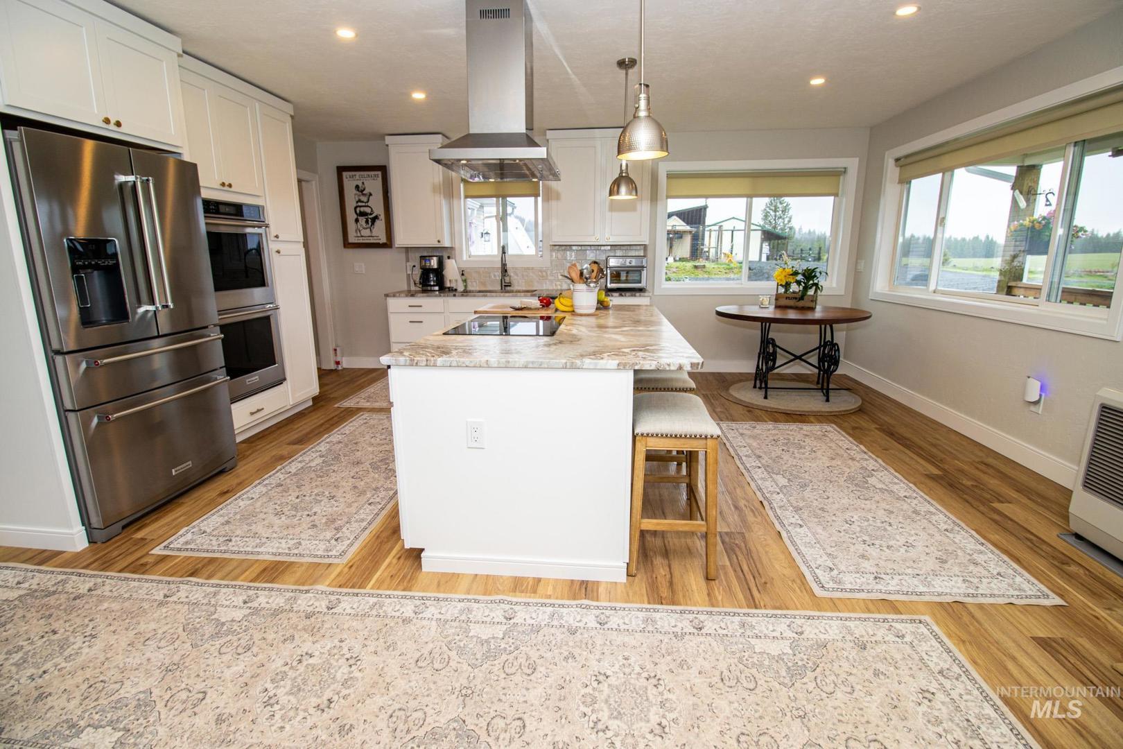 Located in one of Clearwater County’s most desirable area, this beautifully updated country property offers privacy, usable acreage, scenery and wildlife. Situated on 40+ fully fenced acres, consisting of pasture and agricultural land perfect for raising livestock, gardening or a vacation retreat with the Dworshak Reservoir a quick five-minute drive away. This 3 bedroom, 3 bath home offers approximately 2,592 sq ft of updated living space. Recent improvements include a fully remodeled kitchen, remodeled bathrooms, upgraded lighting, new LVP flooring and fresh paint throughout, daylight basement, mudroom and a large two car attached garage. Outdoor features include: barn, shop, chicken coop, woodshed, and covered storage. The shop offers 220 power, wood stove heat, RV hookup, and a 12-ft electric overhead door. Property includes a pond, seasonal creek, garden areas, fruit trees including apple, pear, plum, and cherry. Enjoy the abundant wildlife, mountain views, nearby state land, and easy access to boating, fishing, ATV/UTV riding, and year-round recreation. See associated docs for full improvements and included items