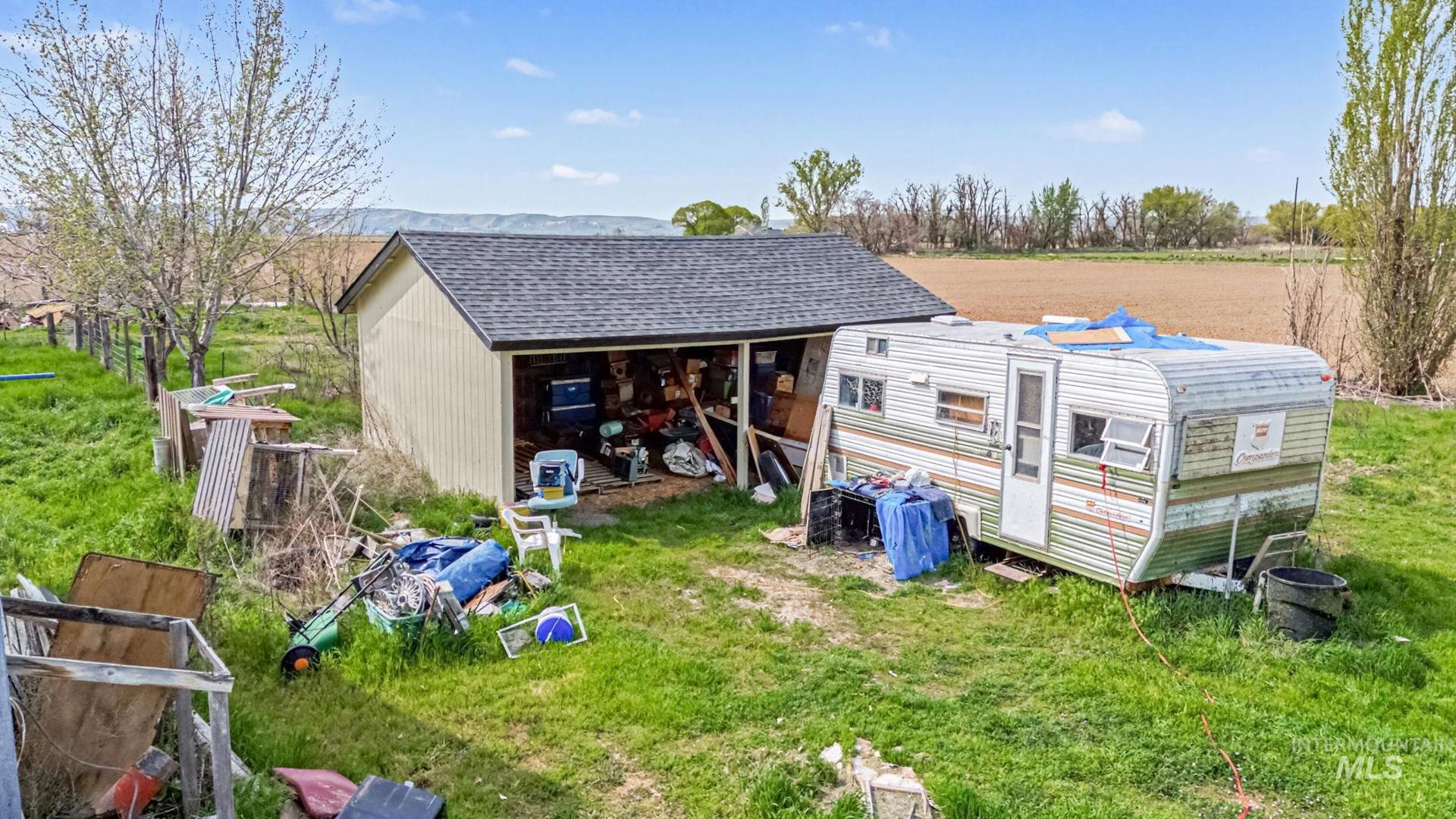 Opportunity awaits on this incredible 20-acre property located on the desirable Emmett Bench, offering breathtaking mountain views and wide-open space. Featuring a 4-bedroom 3-bath home with a 2-car attached garage, this property is perfect for those looking to create their dream estate. Built in 1935, the home is ready for your vision, whether you choose to restore its character with a full remodel or start fresh and build new. The possibilities here are truly limitless. The property is well-equipped for country living and agricultural use, with approximately 15 acres currently farmed in feed corn. Multiple out buildings provide ample space for vehicles, equipment, storage, feed barn, including a detached 4-car carport (with one bay designed for RV parking and complete with electrical hookups), an additional detached 2-car carport, and a storage shed featuring a walk-in freezer. Located in a prime setting, this property offers privacy, views, and functionality, very close to town. NO HOA!